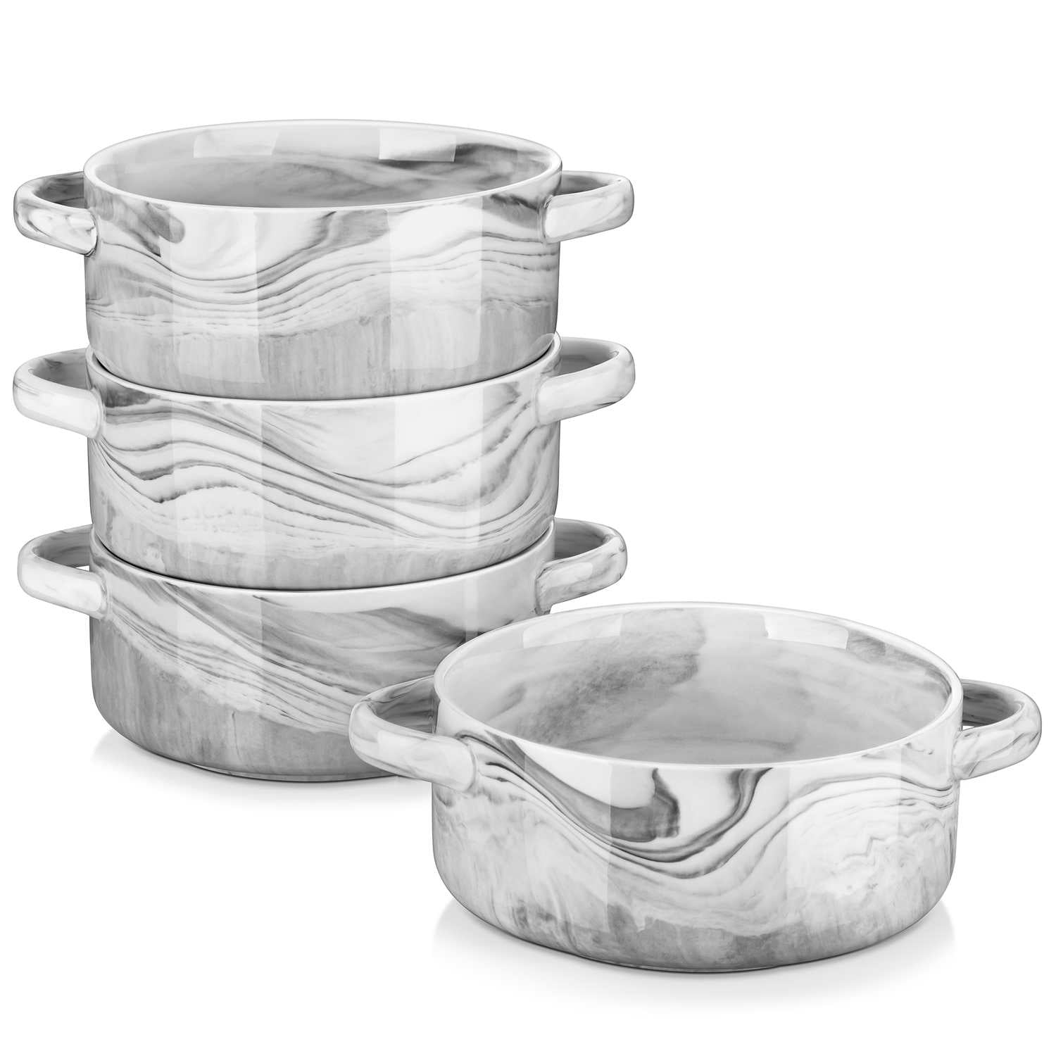 Mldyrzyh Marble Grey Soup Bowls With Handles Set of 4
