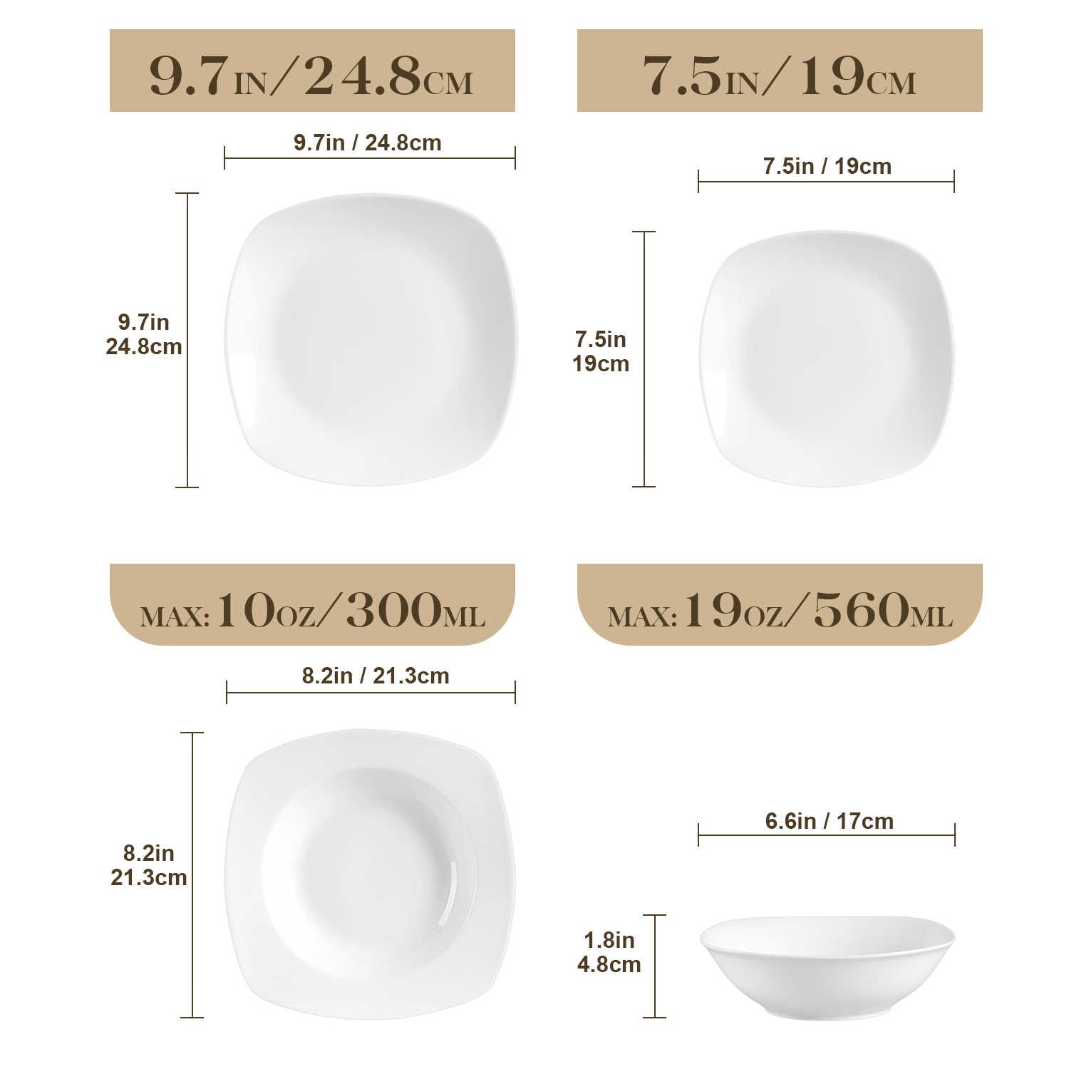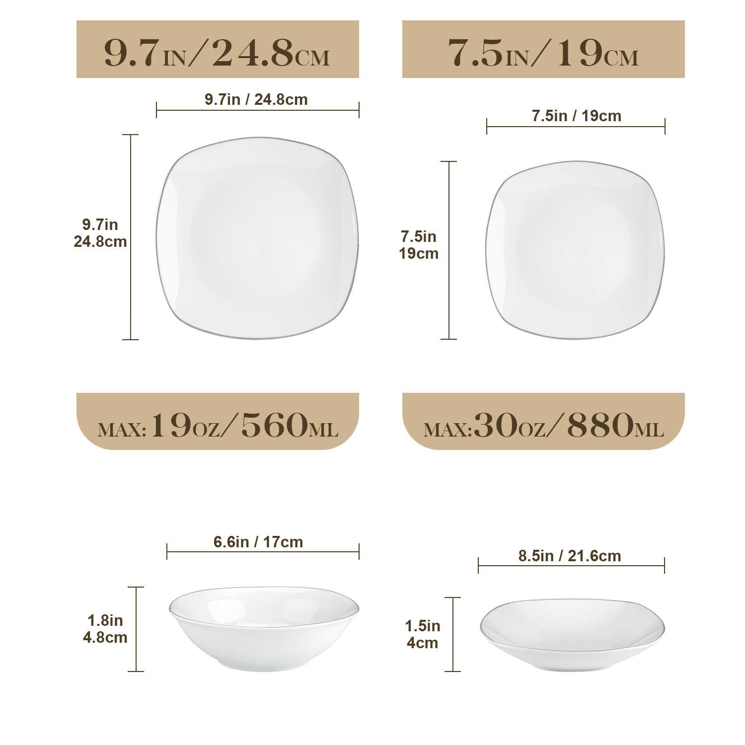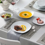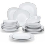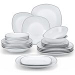 • PLEASE NOTE: The white set features soup plates with edges, while the black and silver trimmed sets have edgeless soup plates. Check corresponding size charts for details.