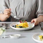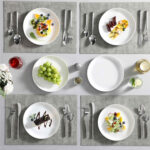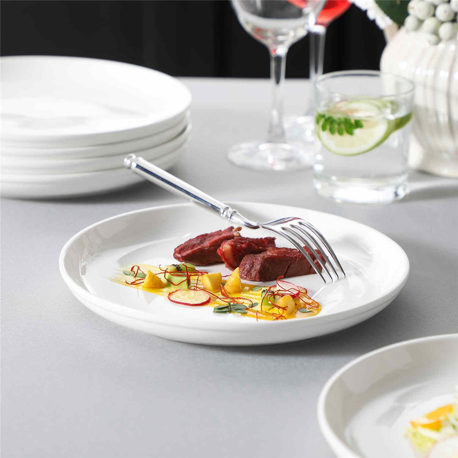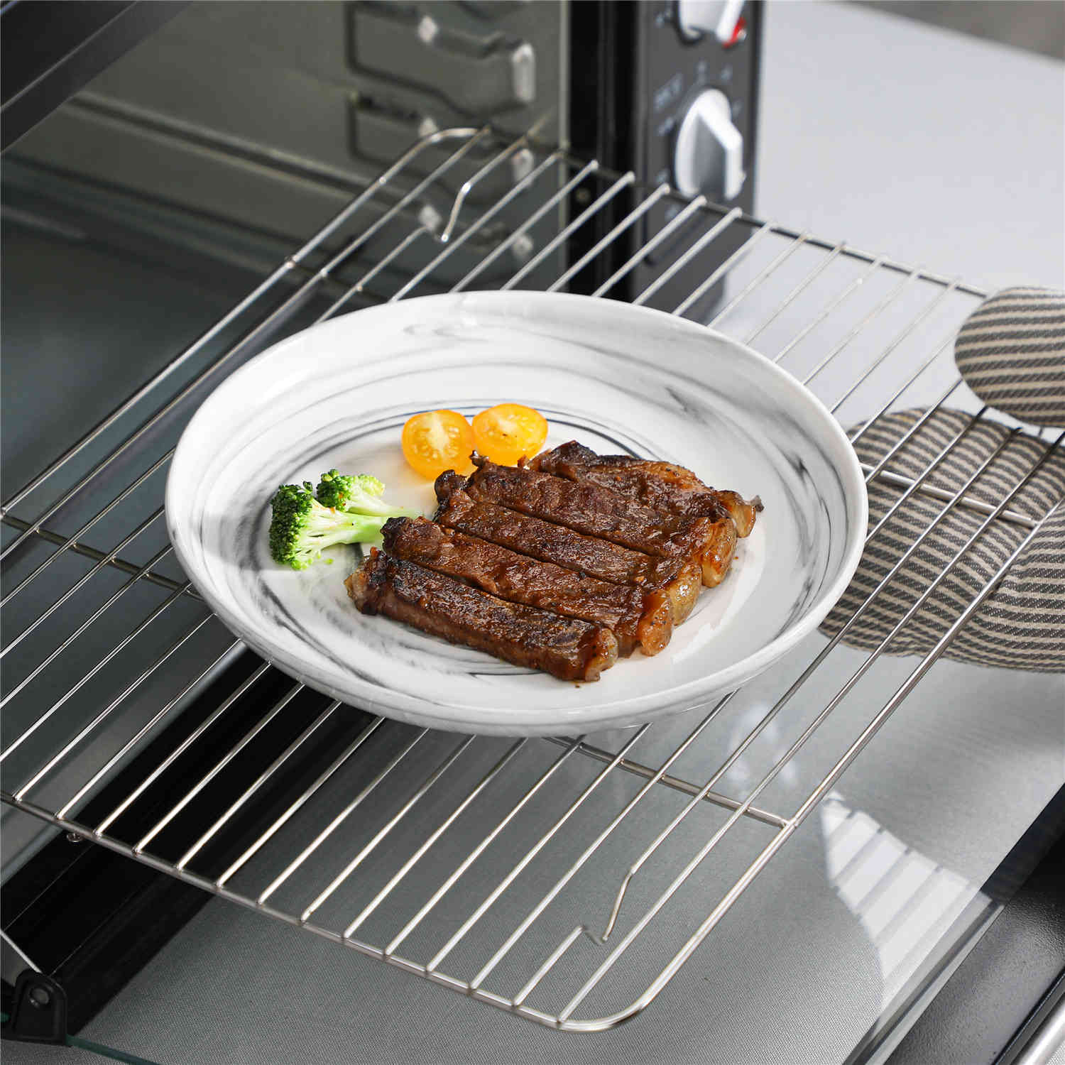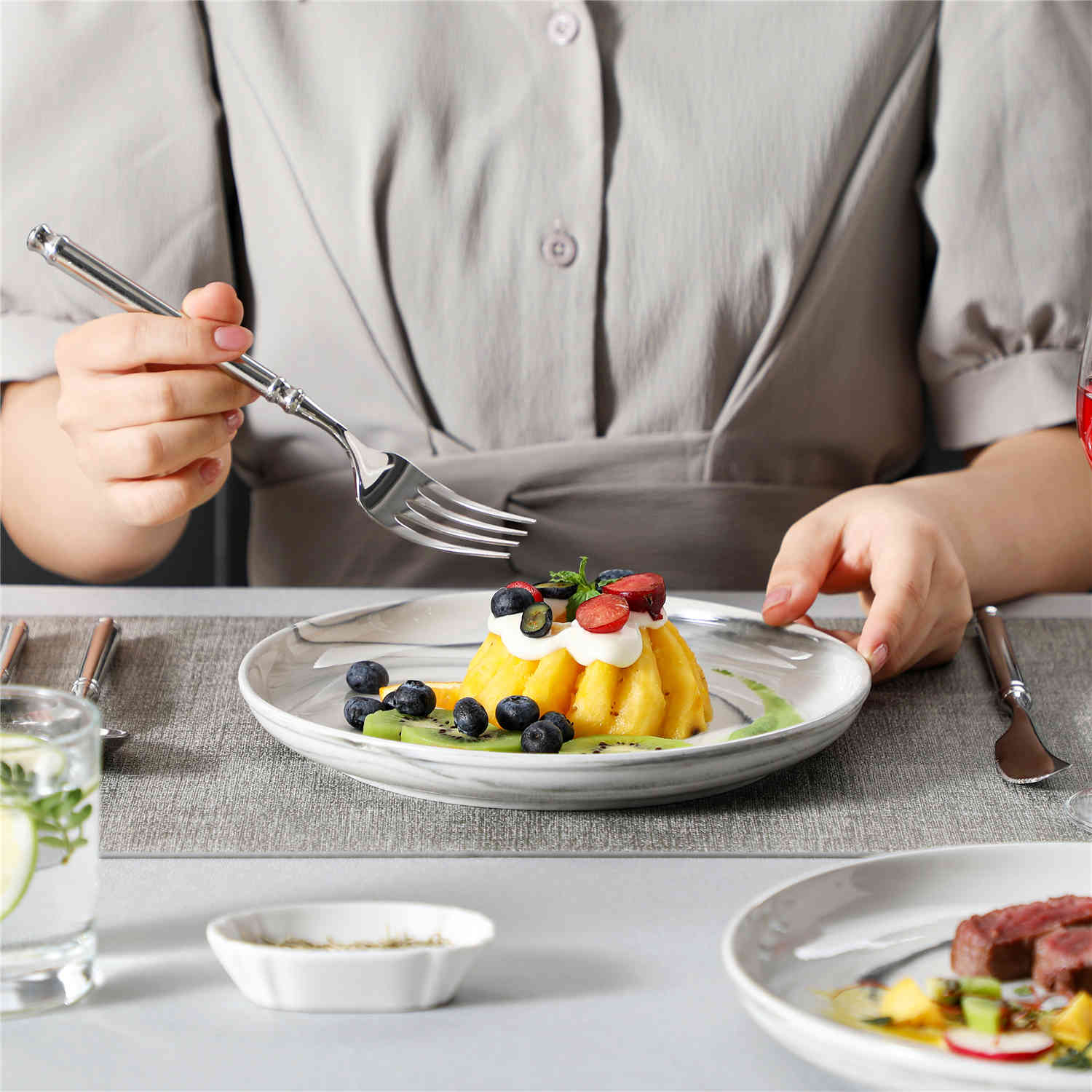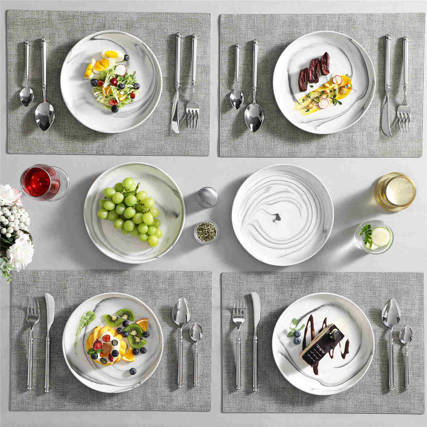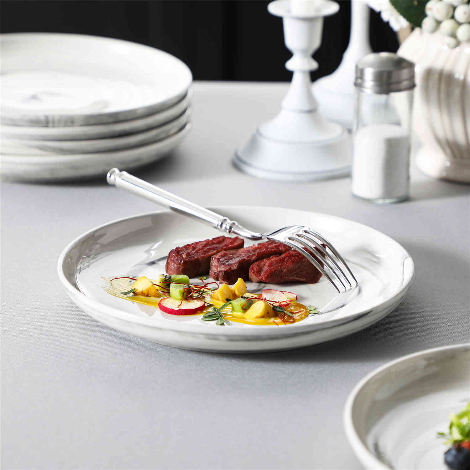 - Fine porcelain dessert plates, set of 6, marble grey/ivory white