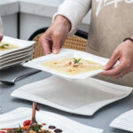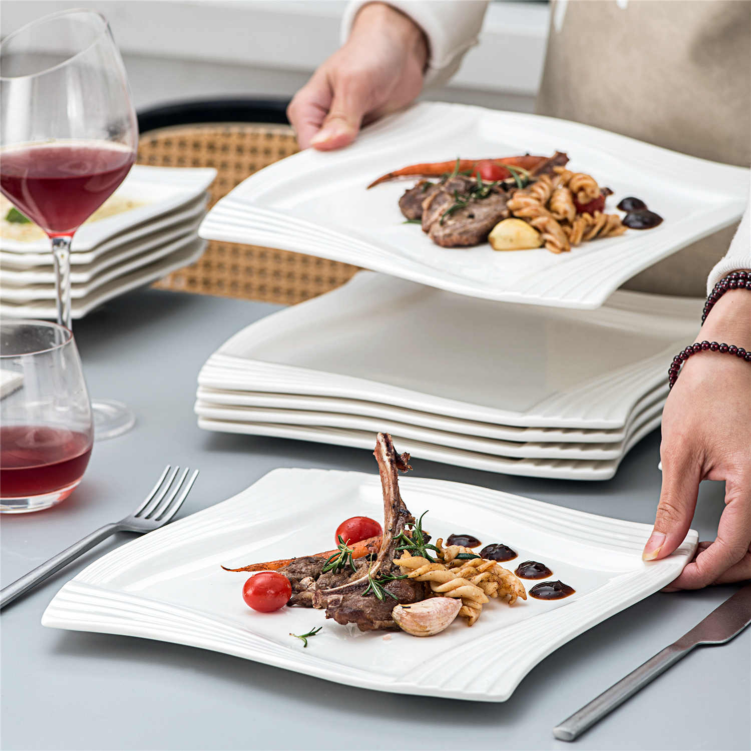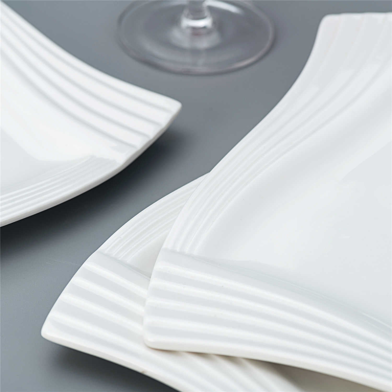 - Fine porcelain wave texture square dinnerware set, service for 6, ivory white