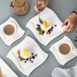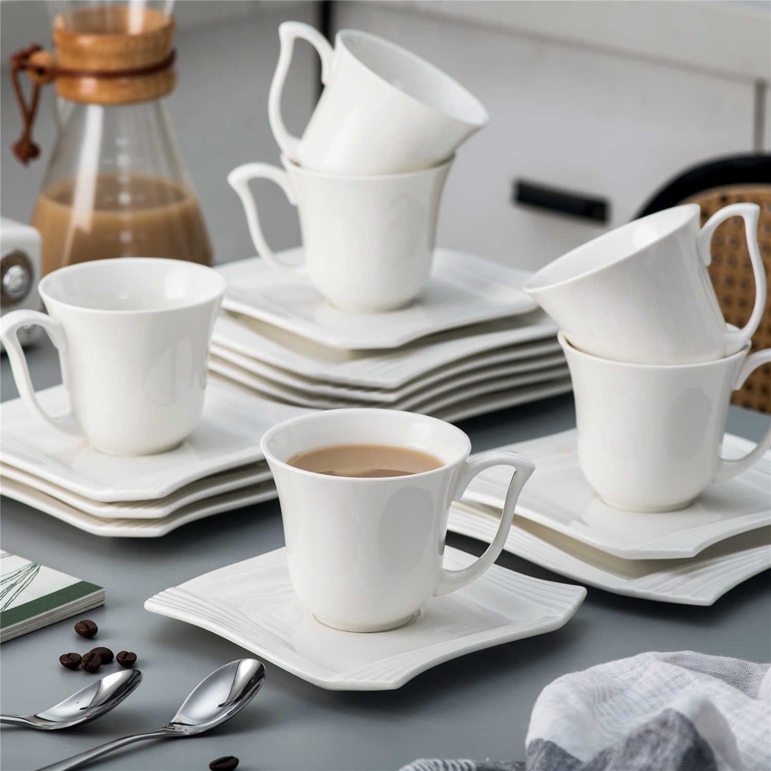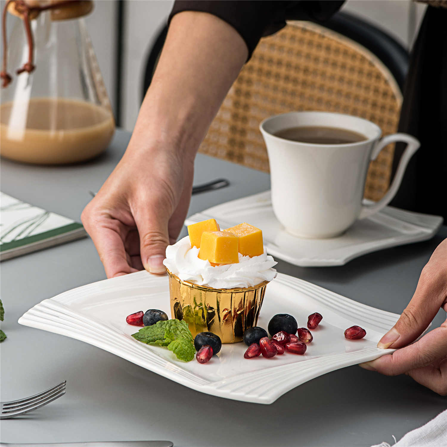 - Fine porcelain wave texture square dessert coffee set, service for 6, ivory white