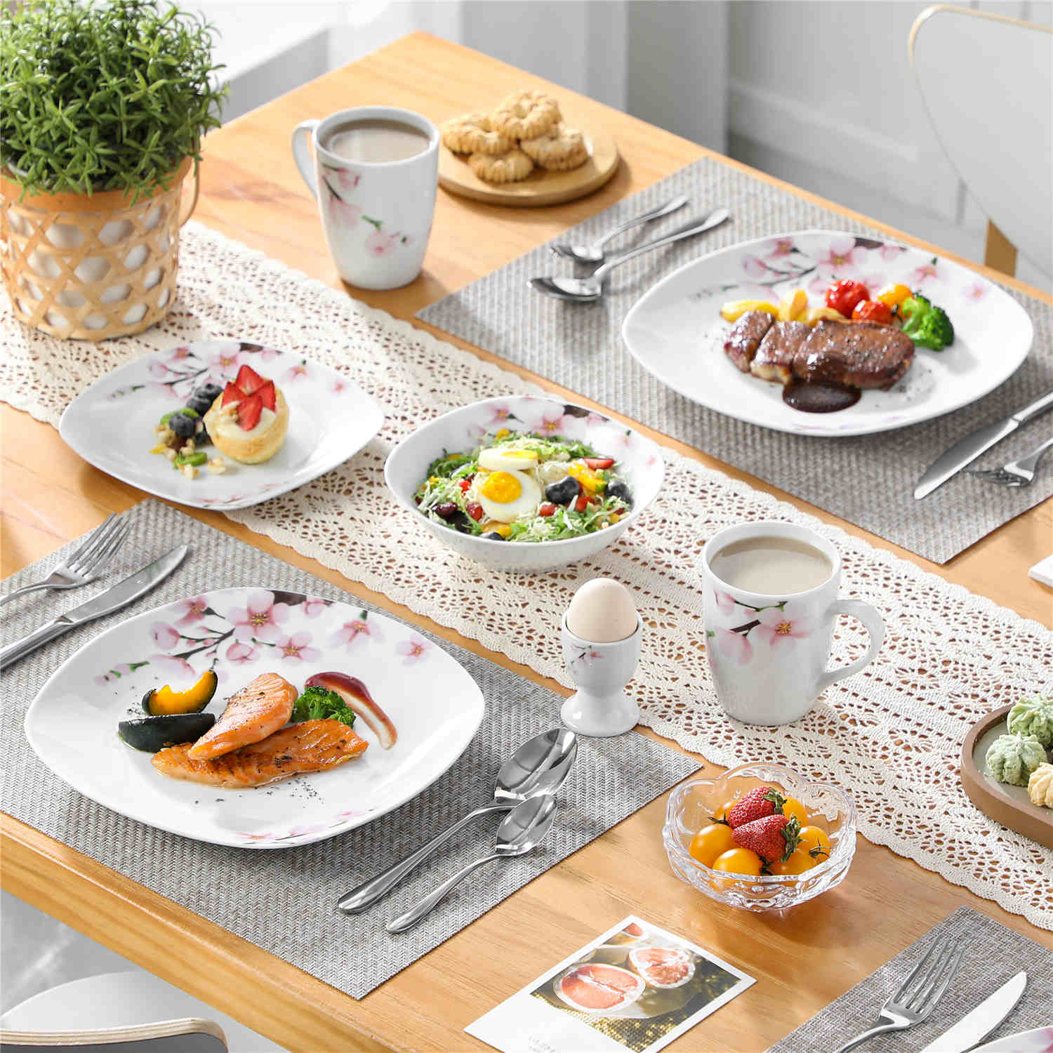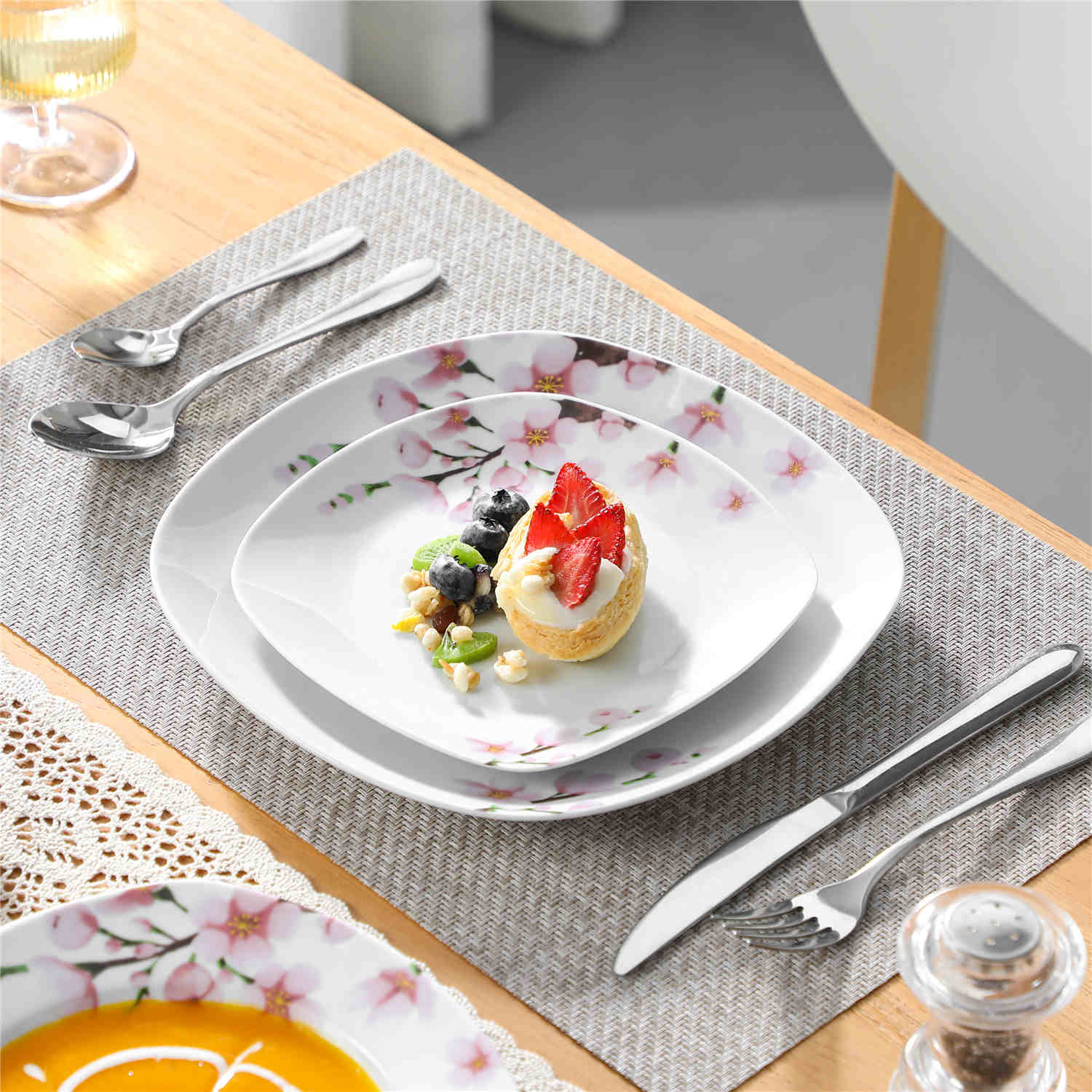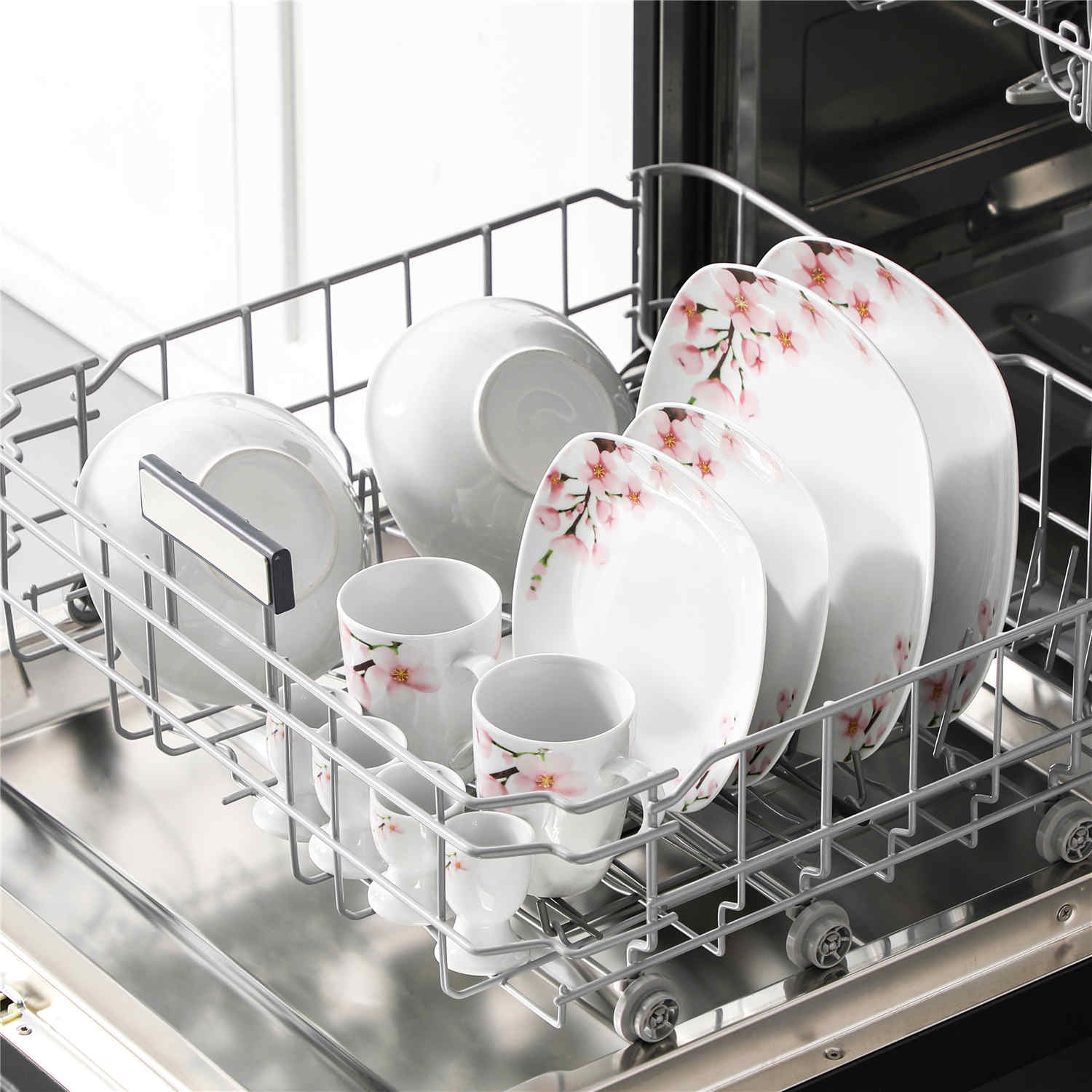 Crafted from pristine off-white porcelain adorned with delicate cherry blossom decals, this dinnerware set embodies a vibrant spring aesthetic. The reinforced porcelain ensures durability and scratch-resistance, while being microwave and dishwasher safe for effortless maintenance. Designed for easy stacking and space-saving efficiency, this set elevates your dining experience with its charming floral motif and practical sophistication.