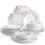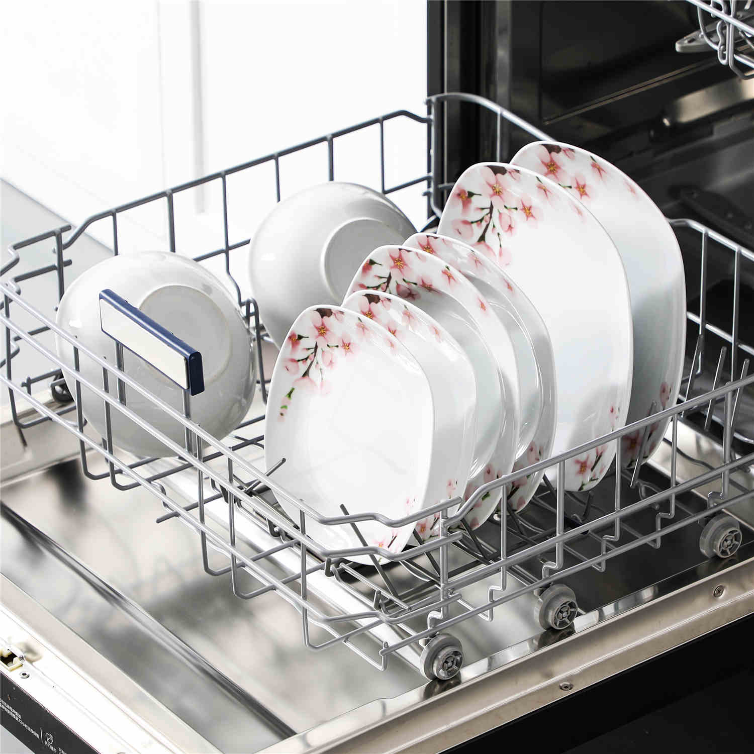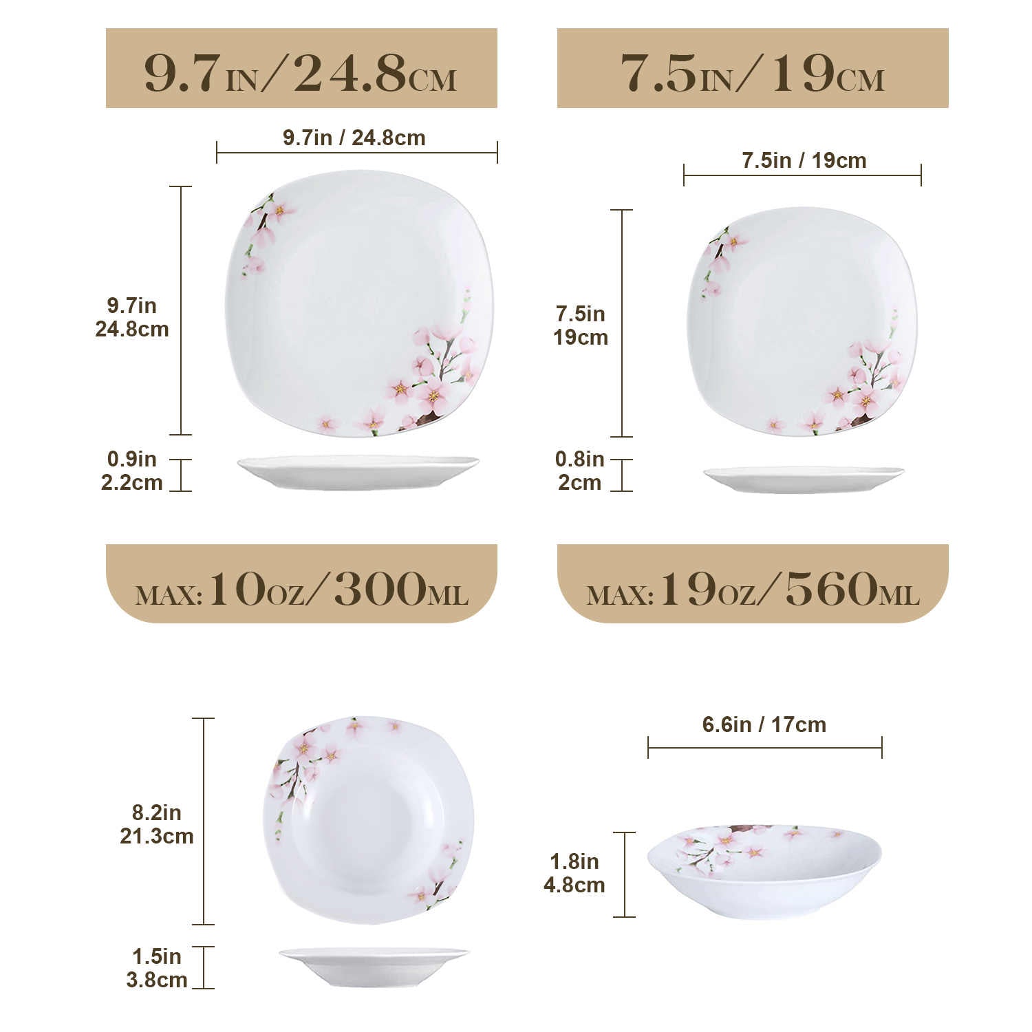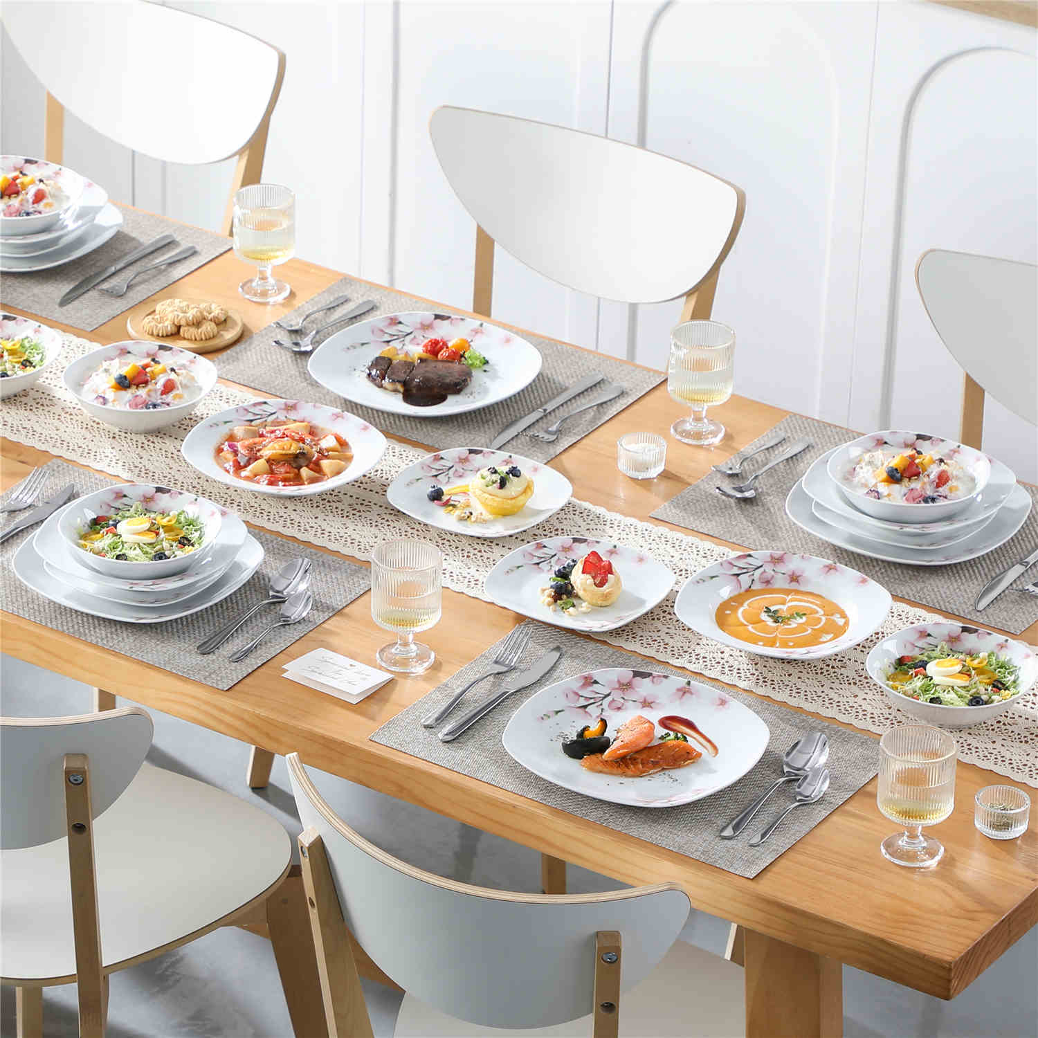 - Fine porcelain square dinnerware set, service for 6, pink floral pattern