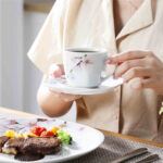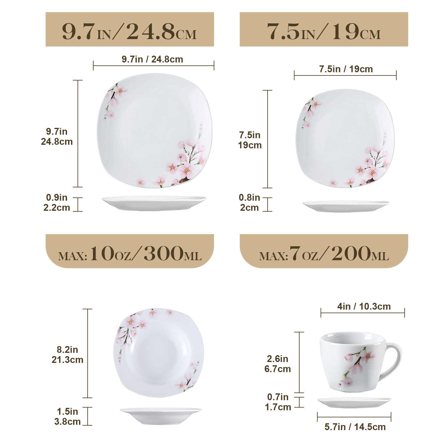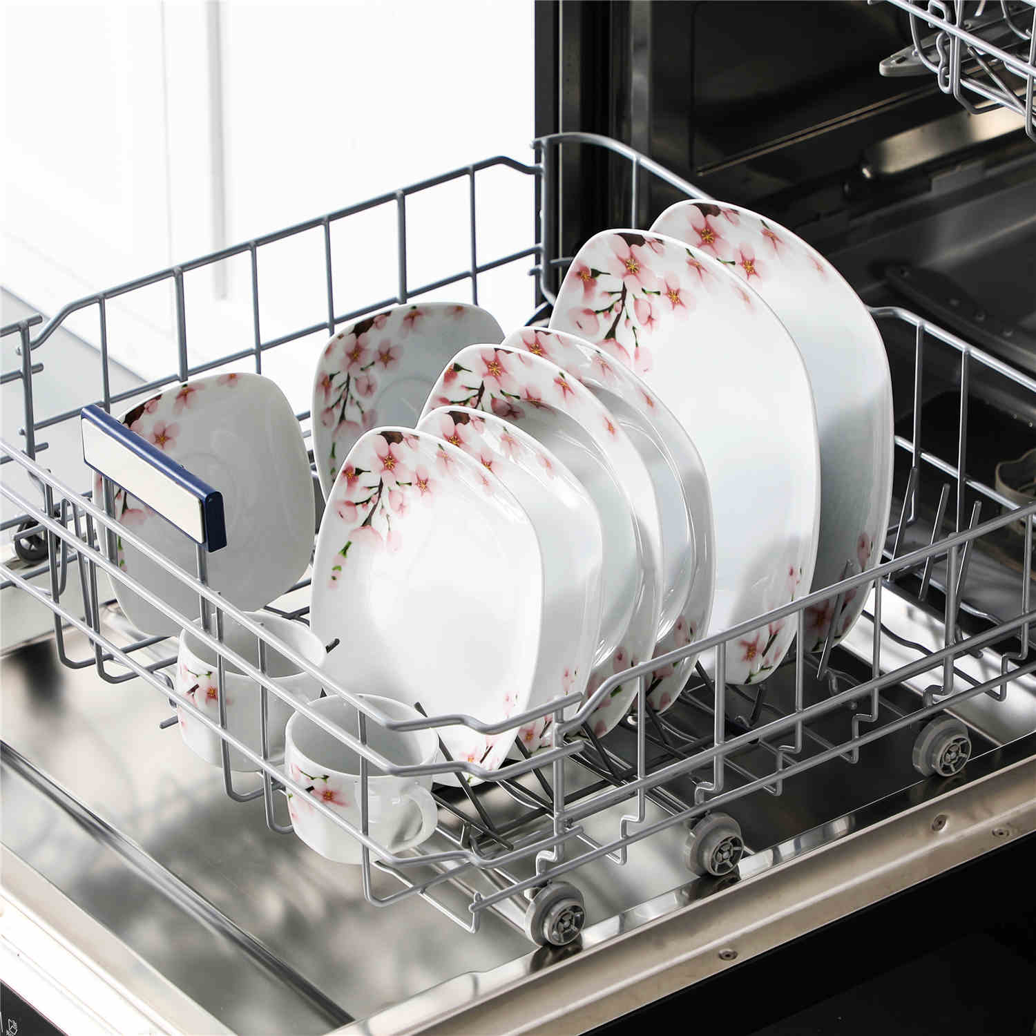 - Fine porcelain square dinnerware set, service for 6, pink floral pattern