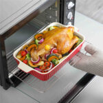 Bold and festive, this red porcelain baking set is made to stand out—perfect for holiday feasts, family gatherings, or any dish that deserves a little drama. The vivid red exterior contrasts beautifully with the creamy interior, making your meals look as delicious as they taste. From bubbling baked pasta to roast chicken and hearty vegetables, these four stackable trays (14.7″ to 9.4″) bring both style and versatility to your kitchen. The fluted edges and wavy handles add character, while the scratch- and chip-resistant finish ensures lasting use in the oven, microwave, or dishwasher.