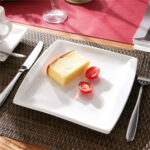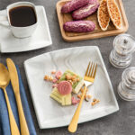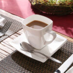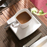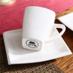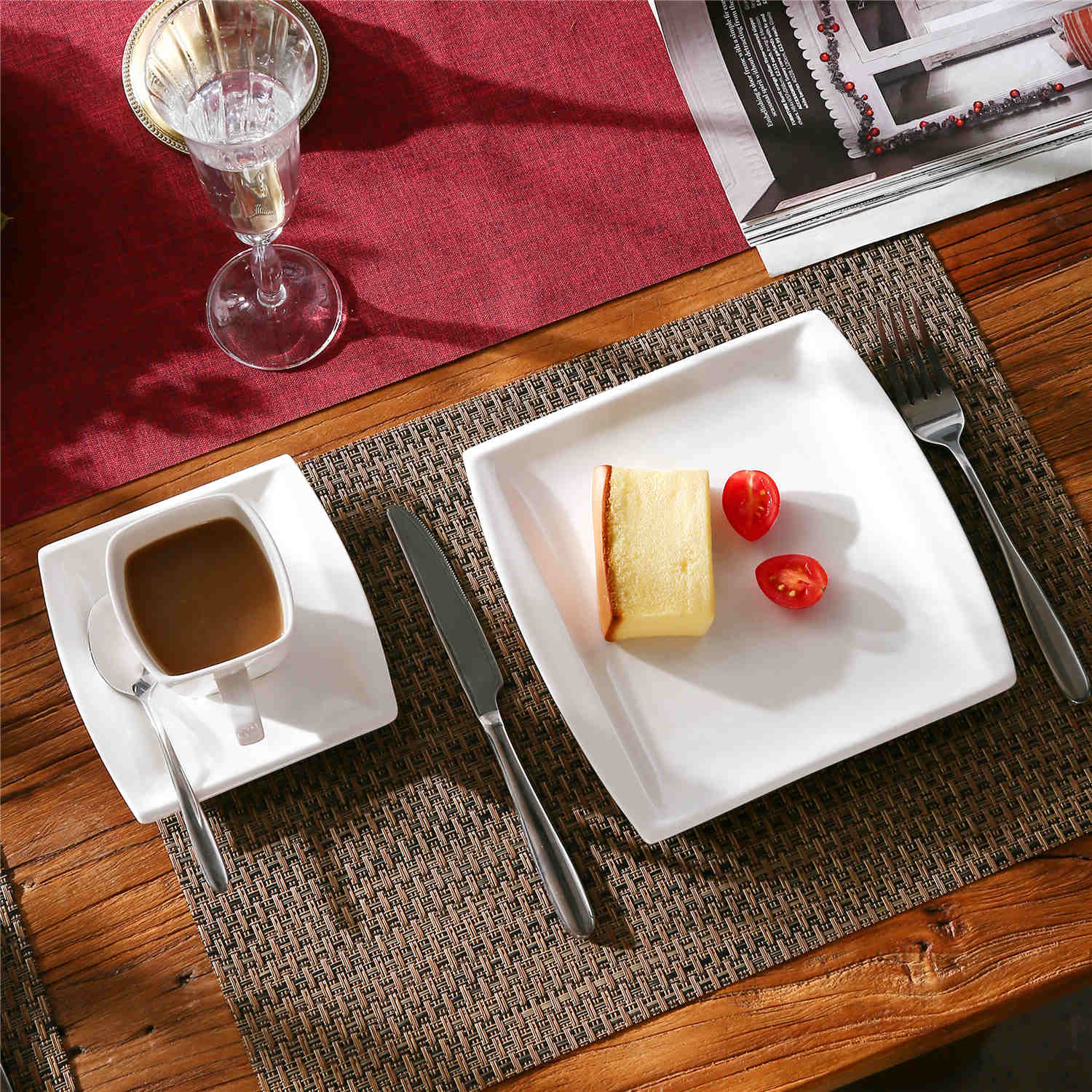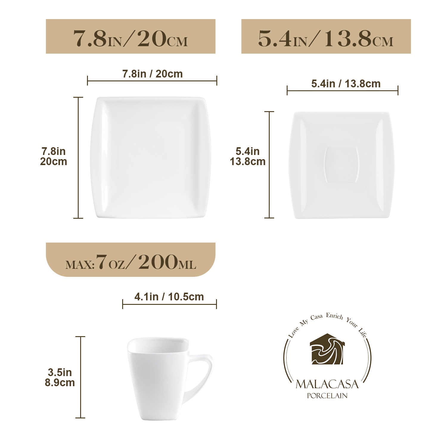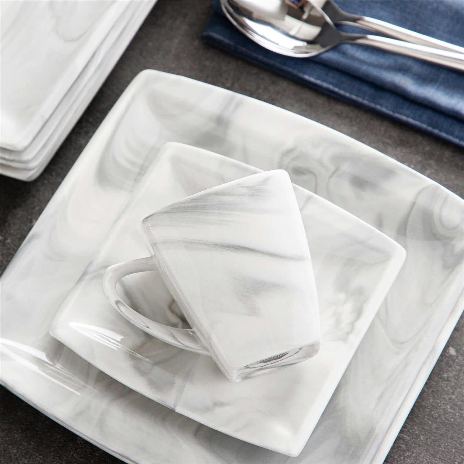 - Fine porcelain square dessert coffee set, service for 6, ivory white/marble grey