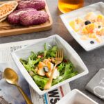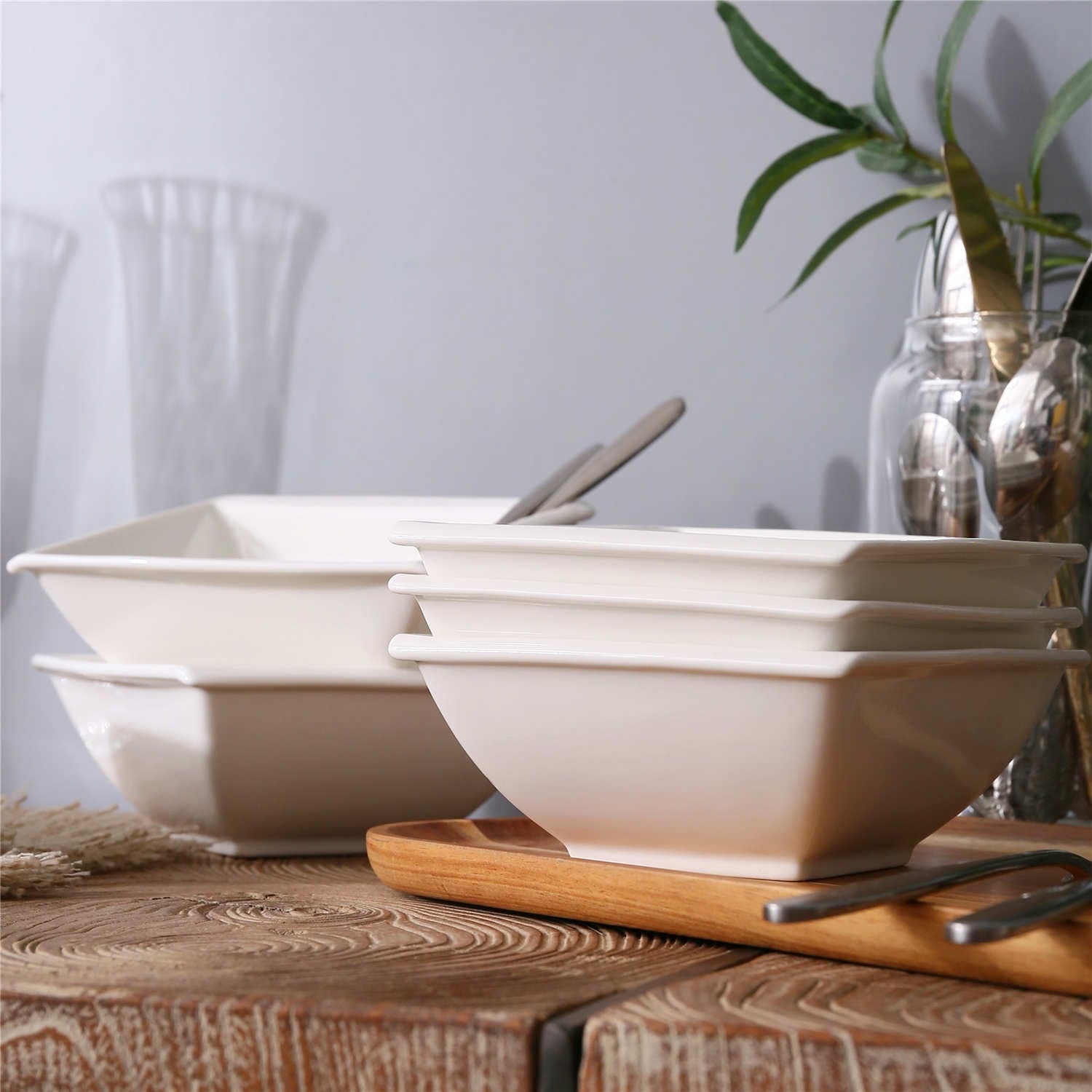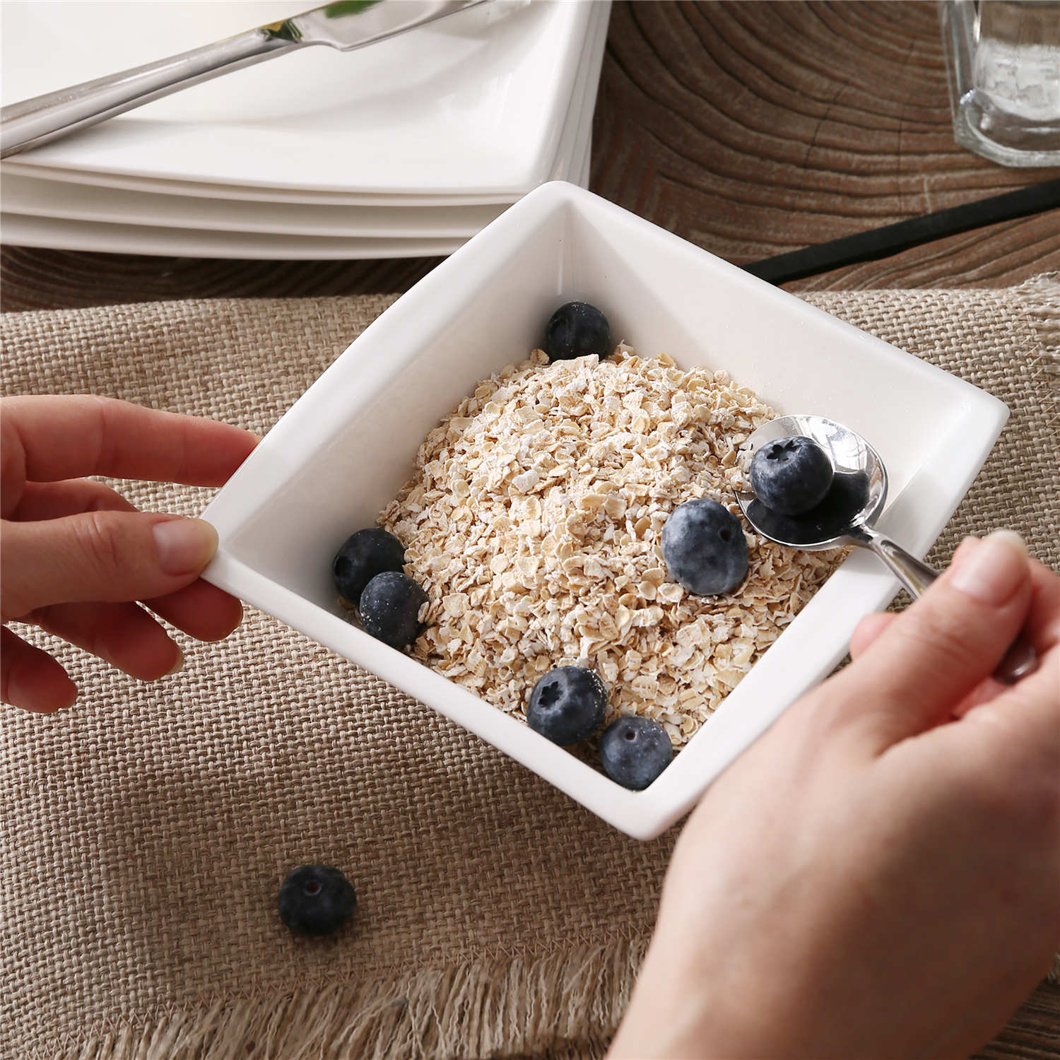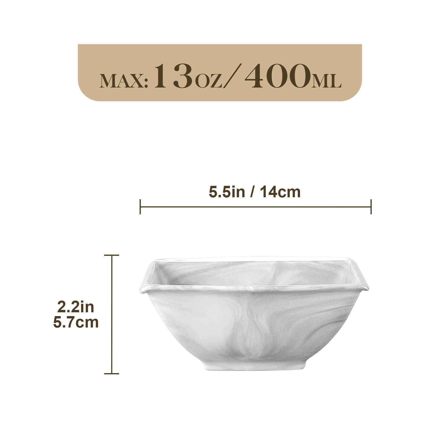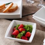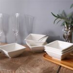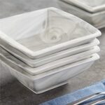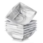 - Porcelain square cereal bowls, set of 6, ivory white/marble grey
