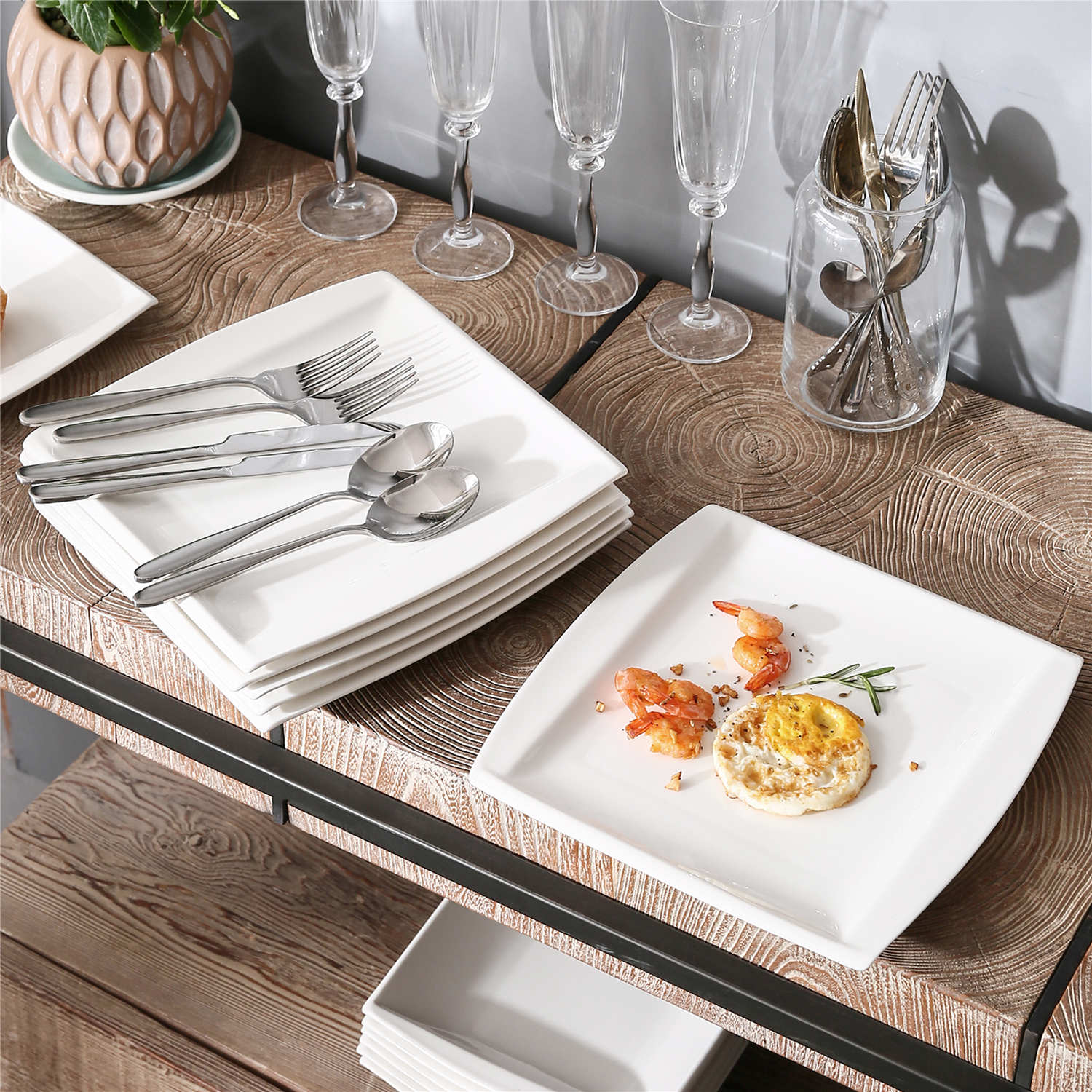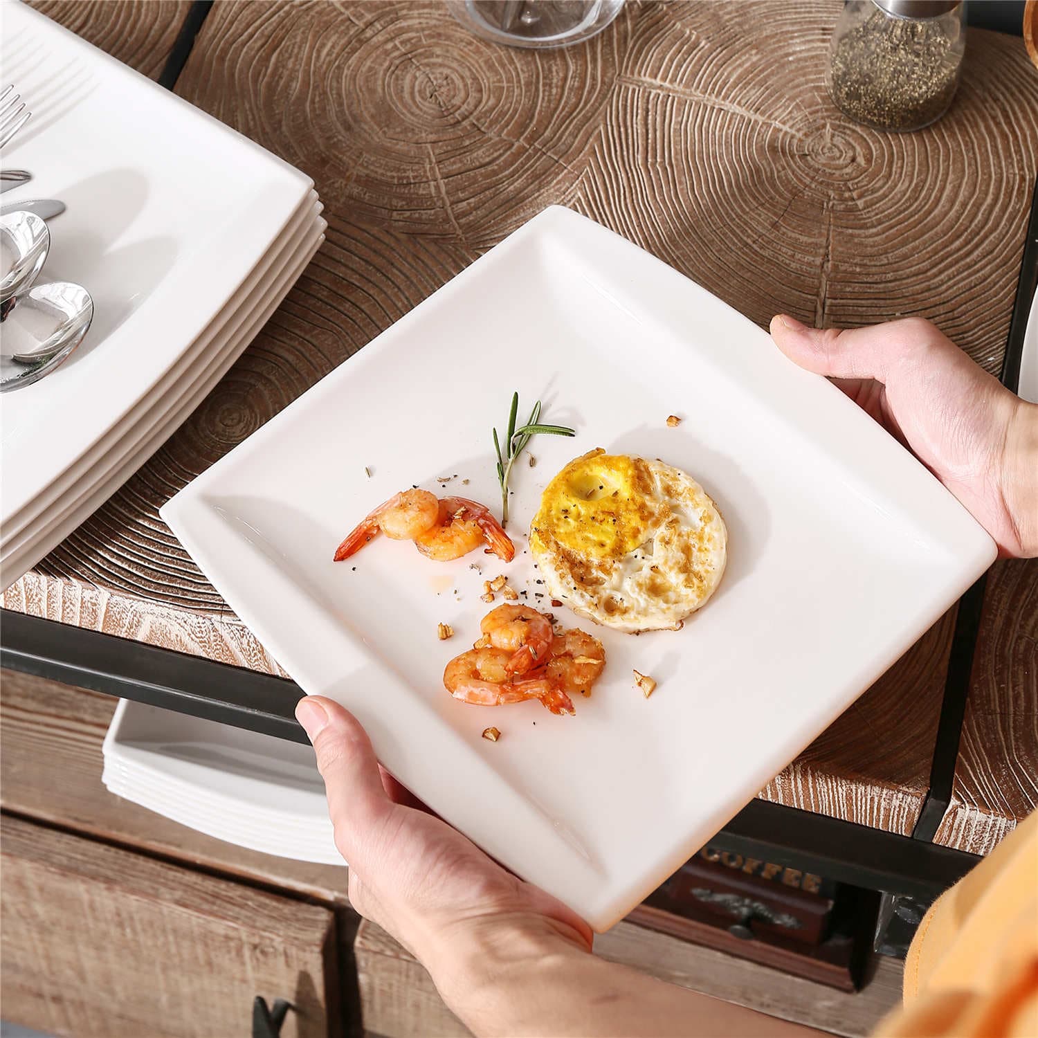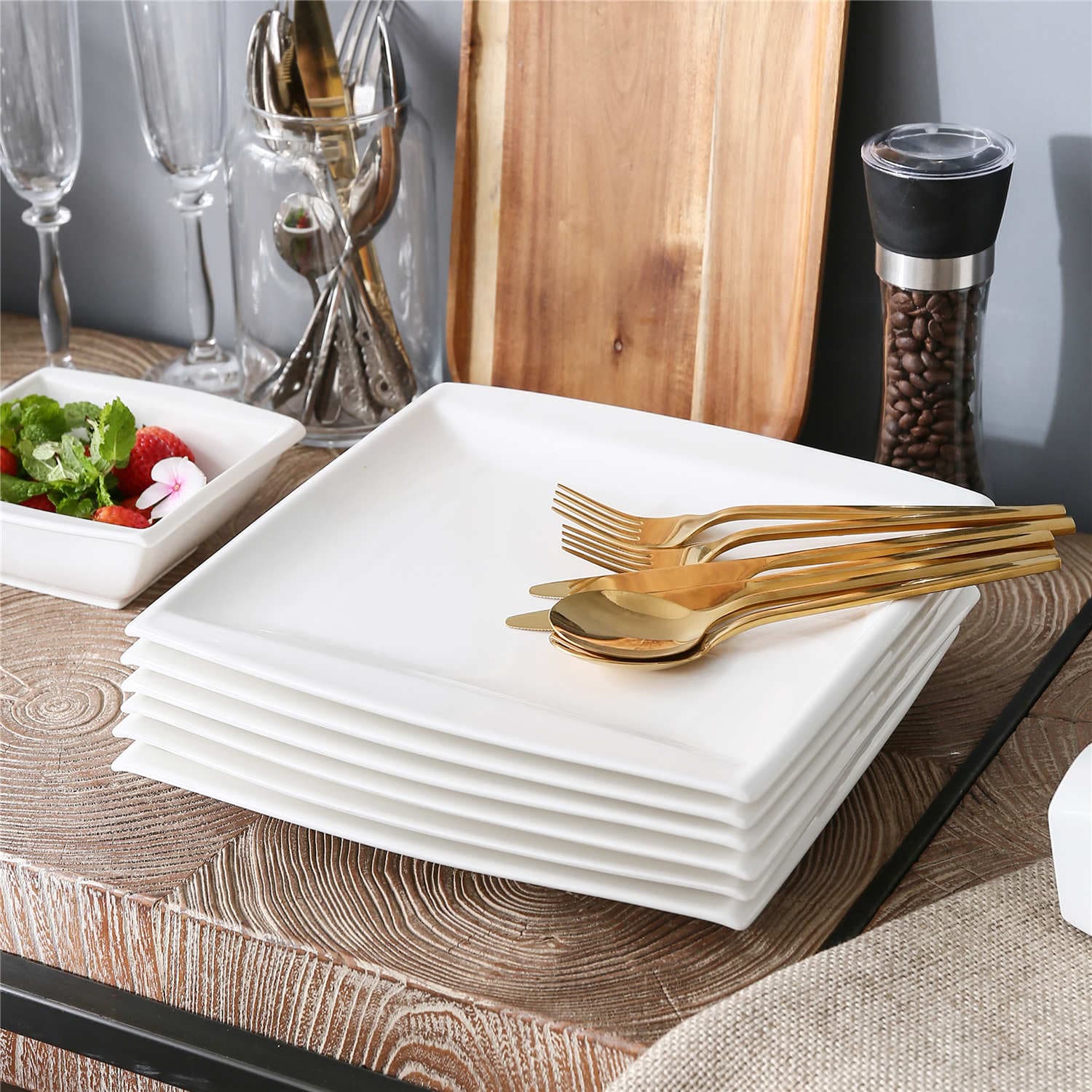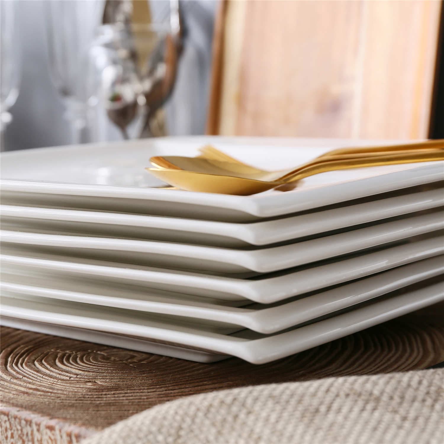 • Fine porcelain square dinner plates, set of 6, ivory white