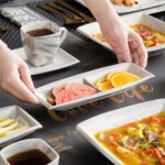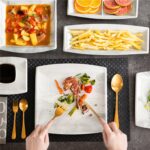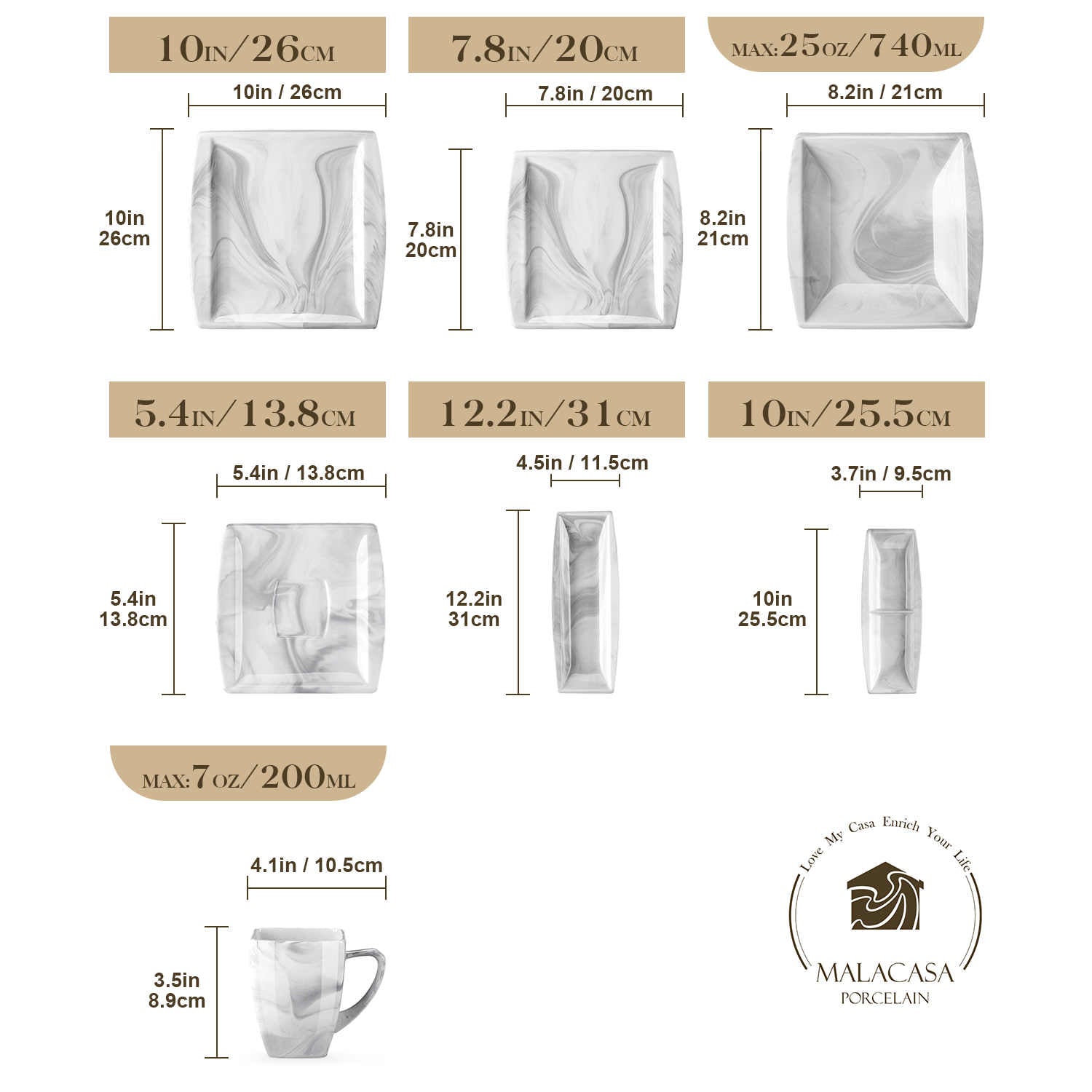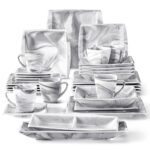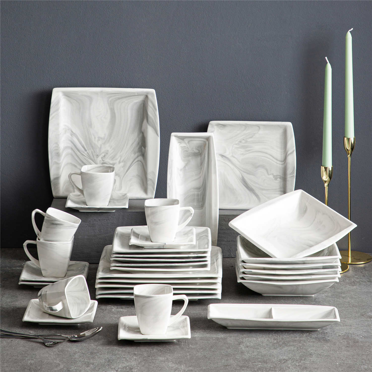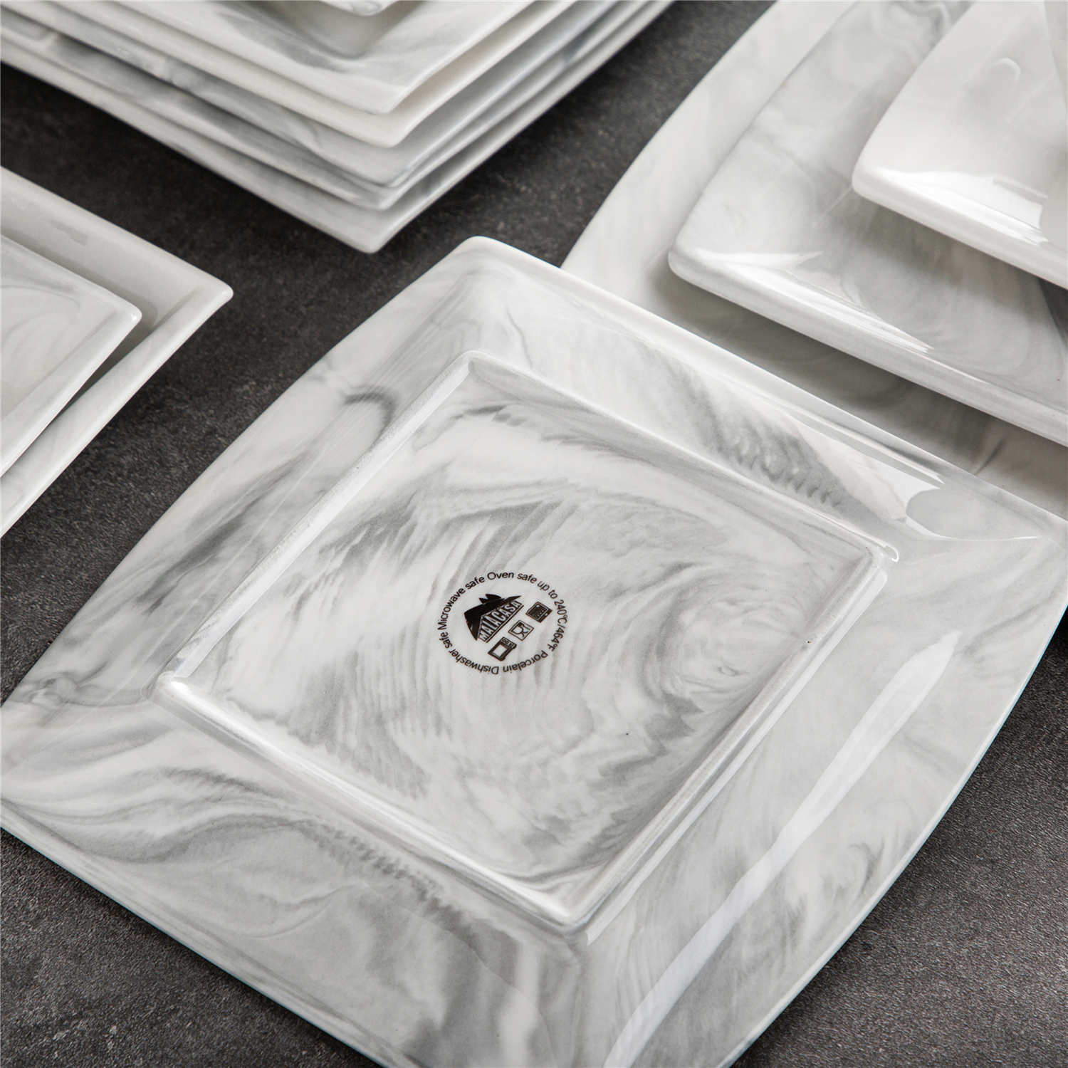 - Fine porcelain square dinnerware set, service for 6, marble grey