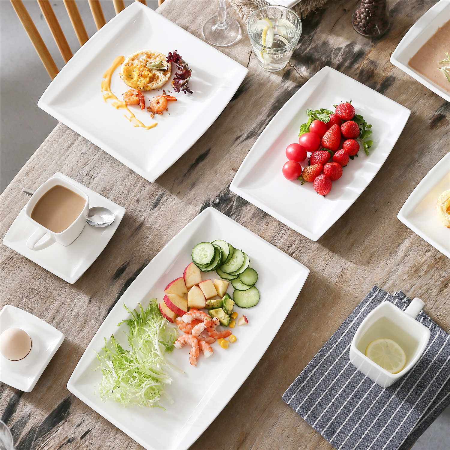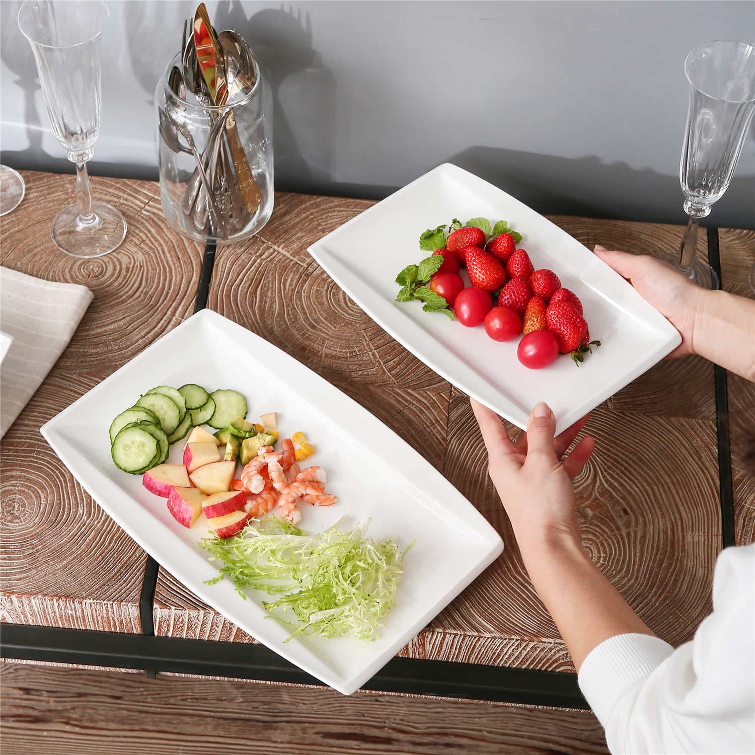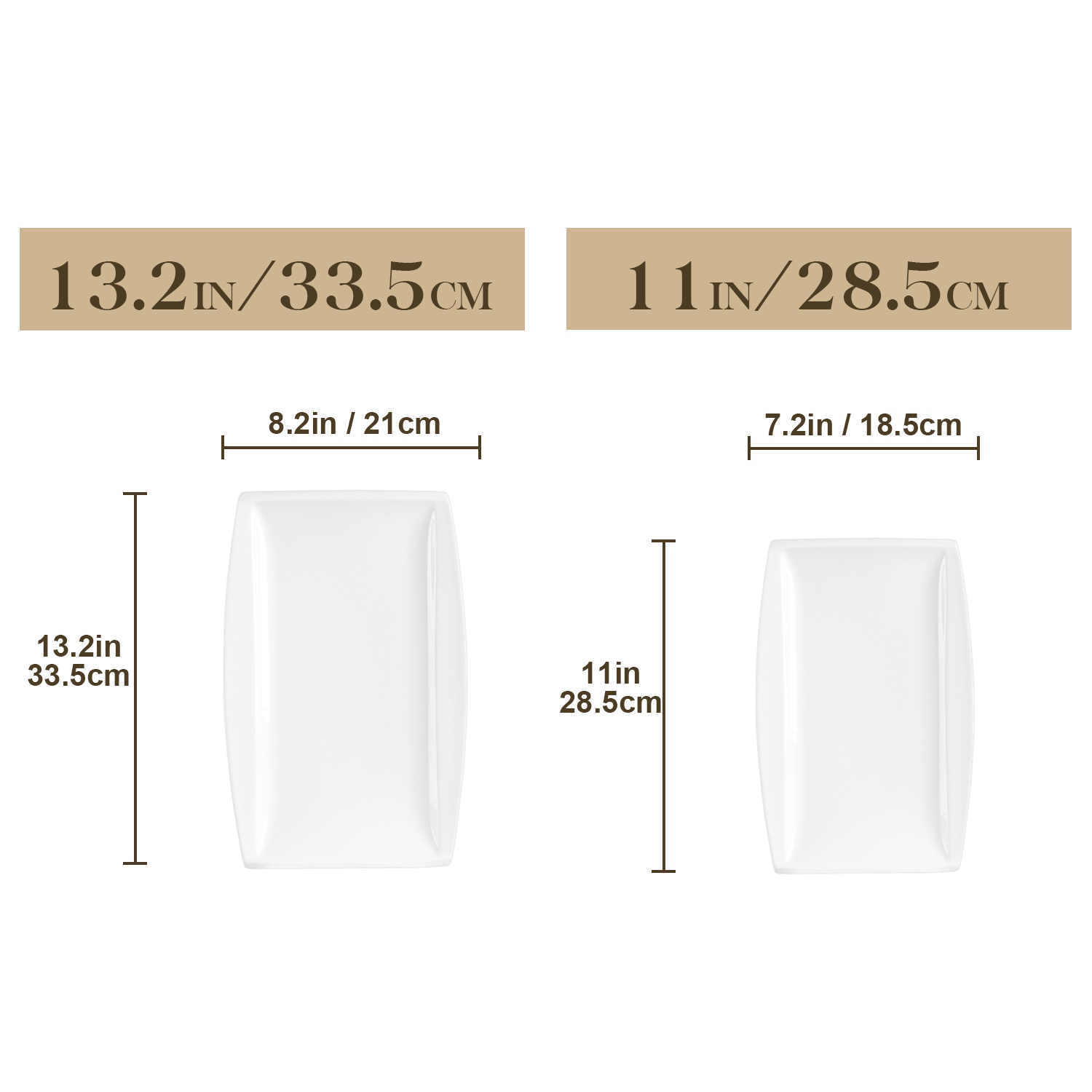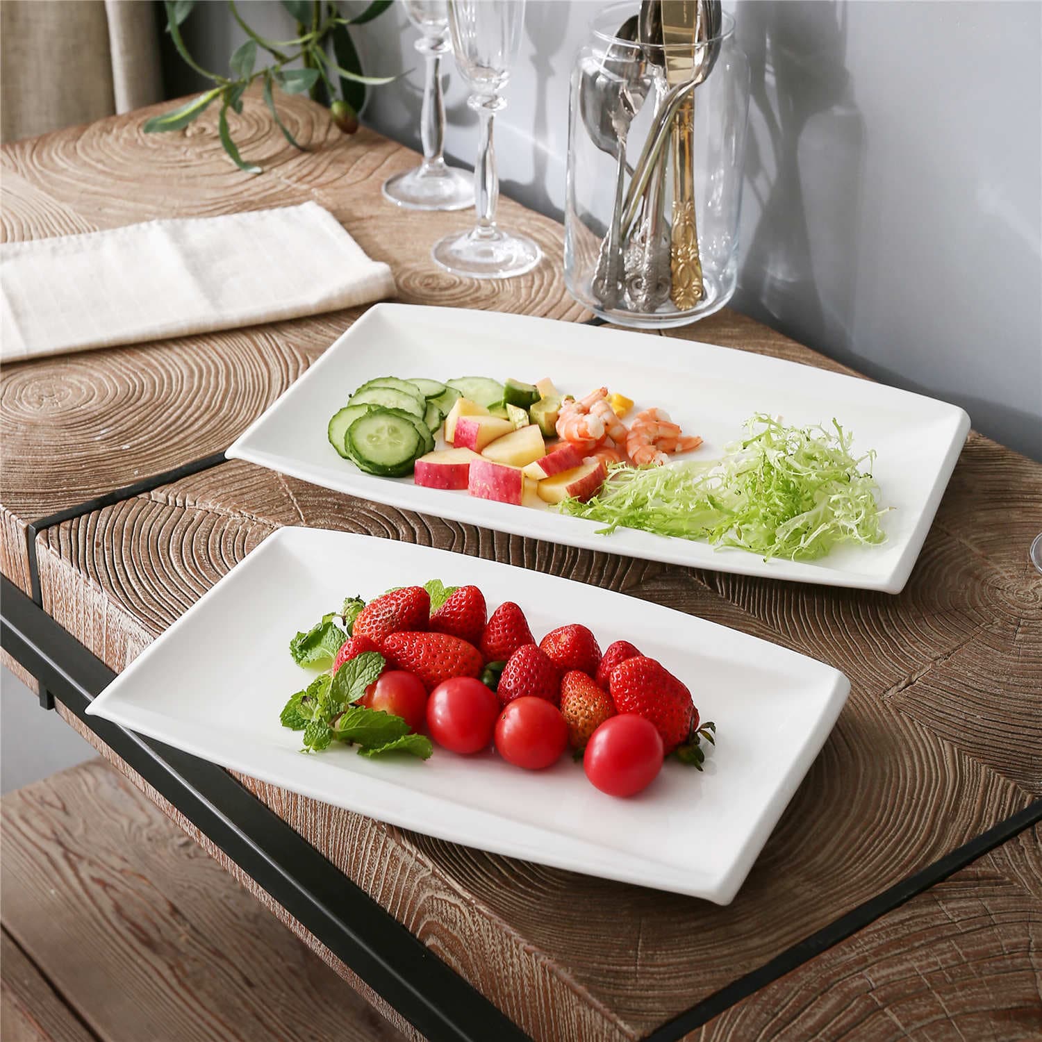- Fine porcelain rectangular plates, set of 2, ivory white