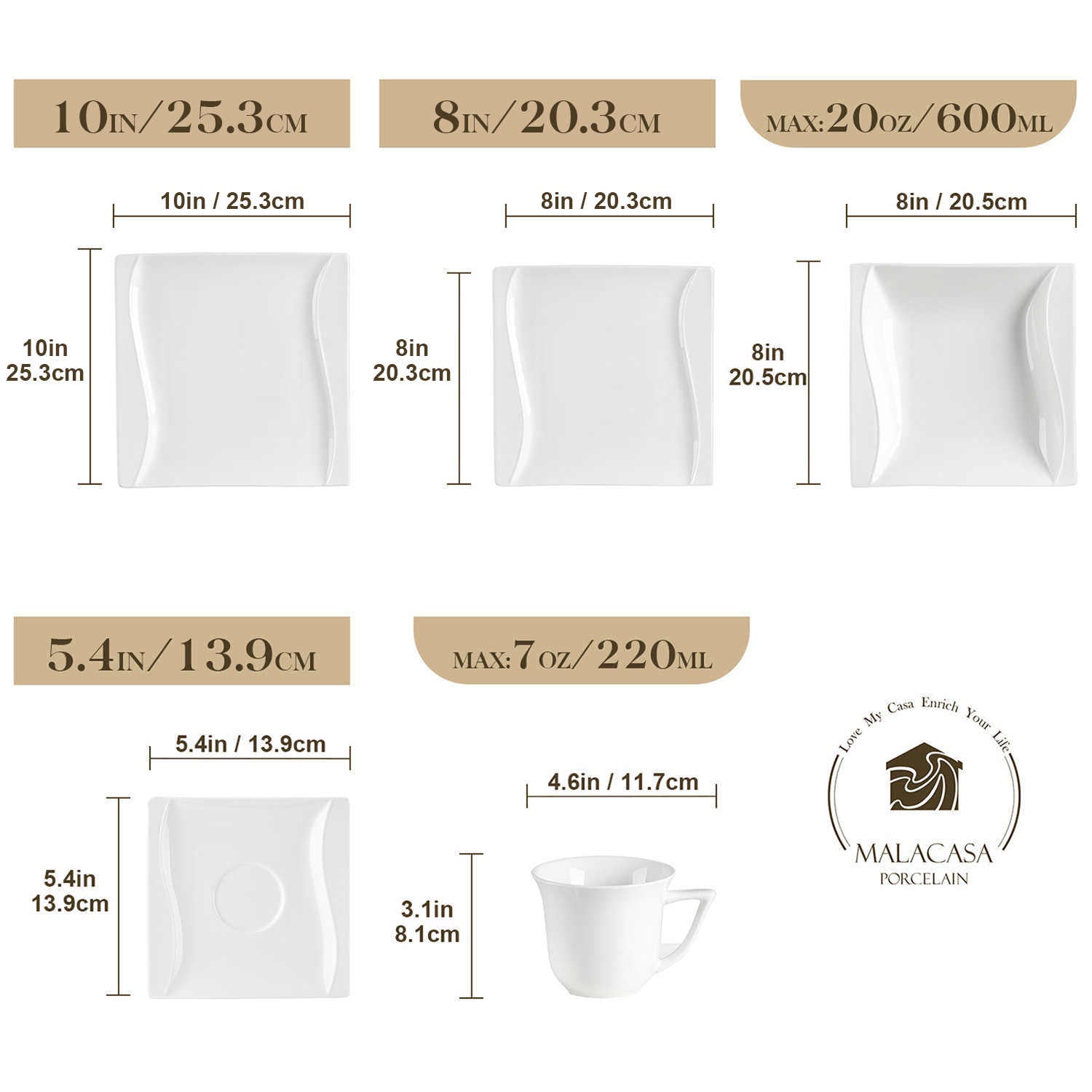 • Fine porcelain square dinnerware set, service for 6, ivory white