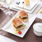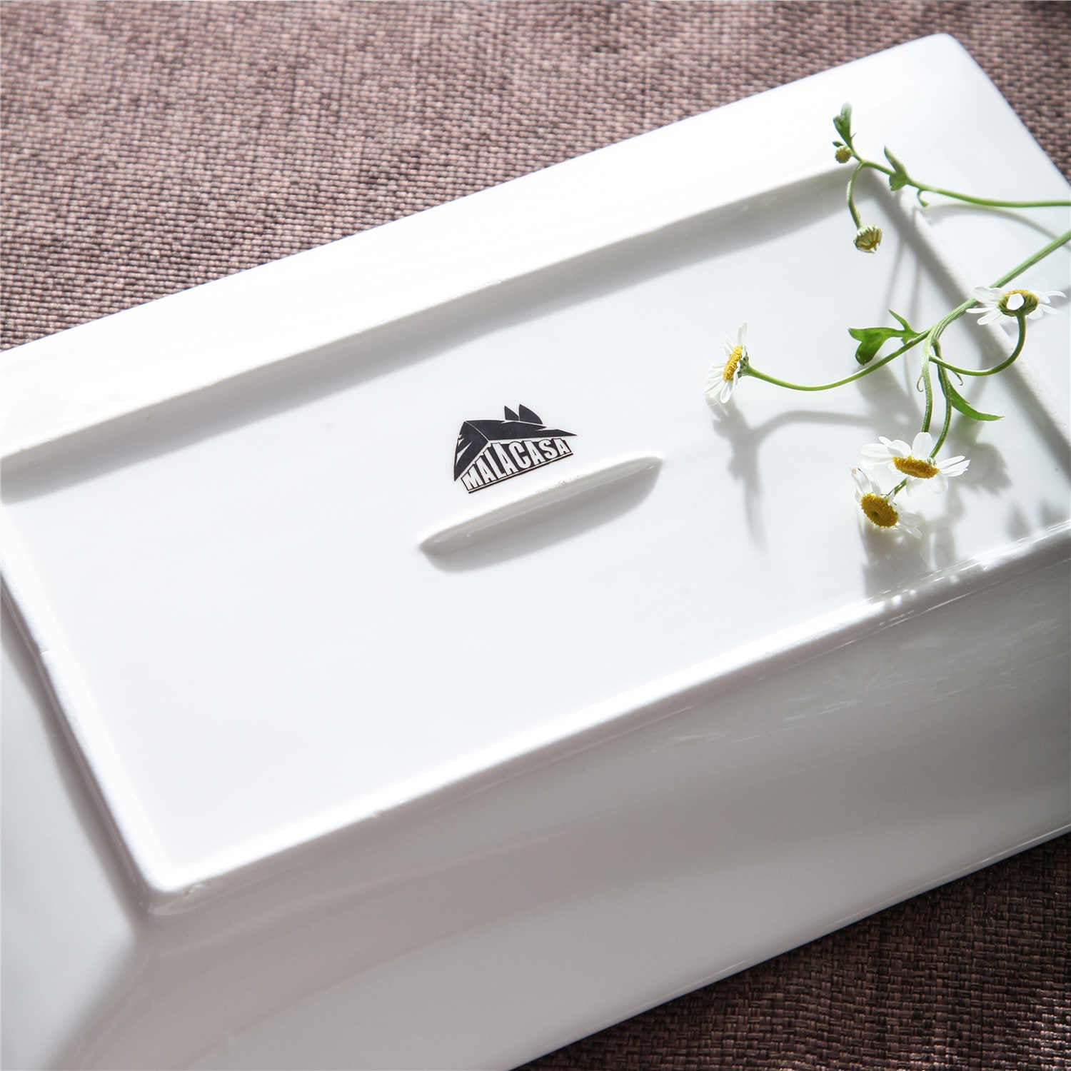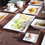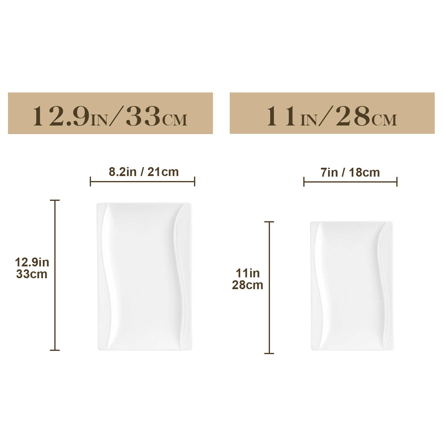 • Fine porcelain rectangular plates, set of 2, ivory white