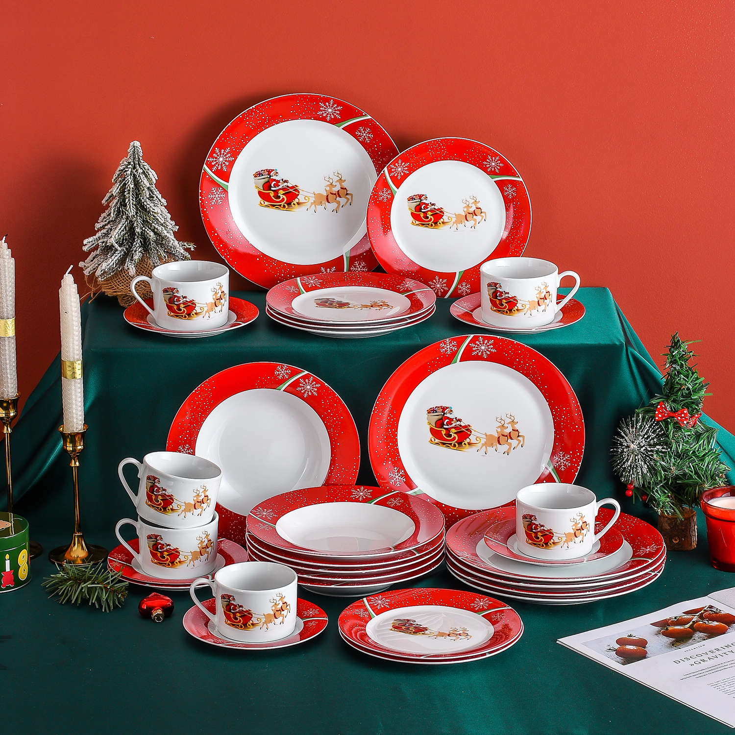 Home Porcelain Mldyrzyh Christmasdeer 30 Piece Dinnerware Set