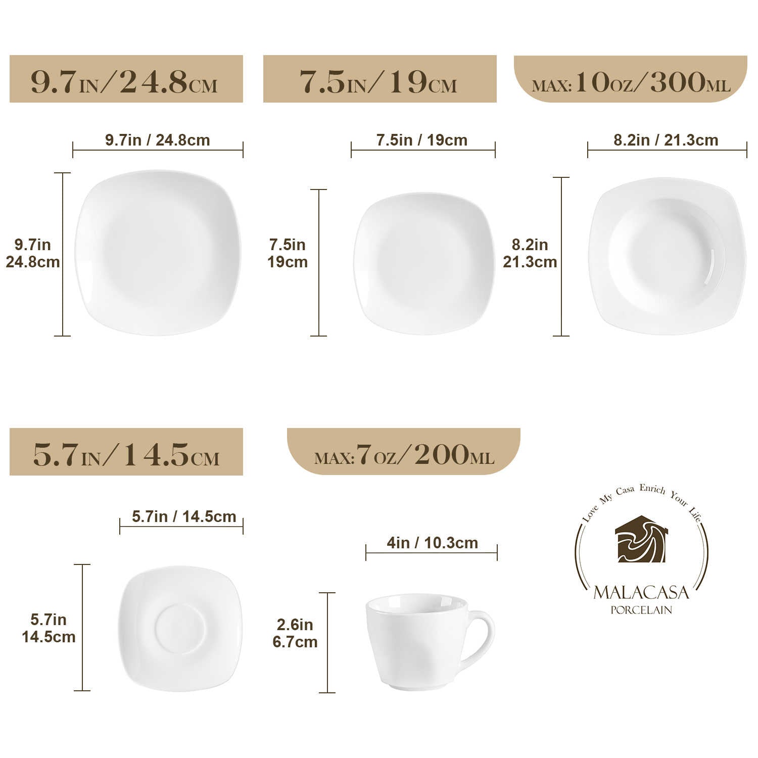 • Fine porcelain square dinnerware set, service for 6, neutral white