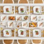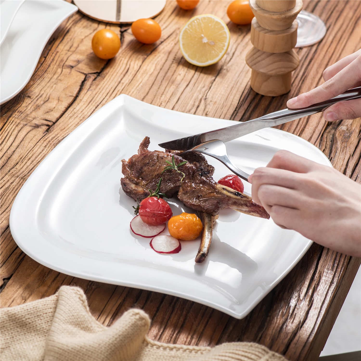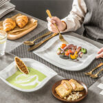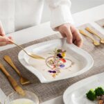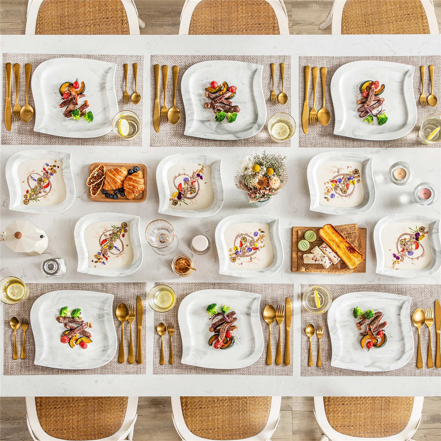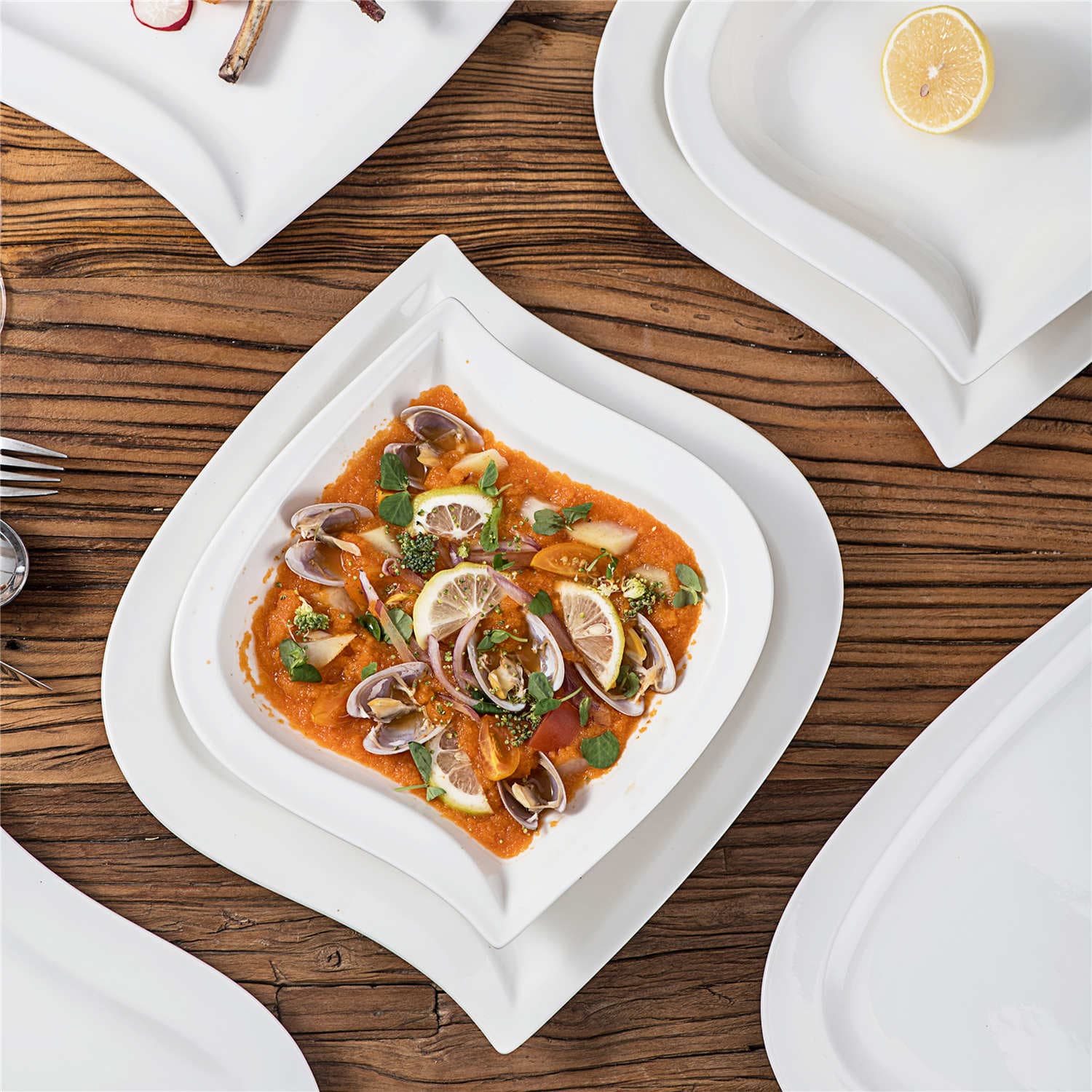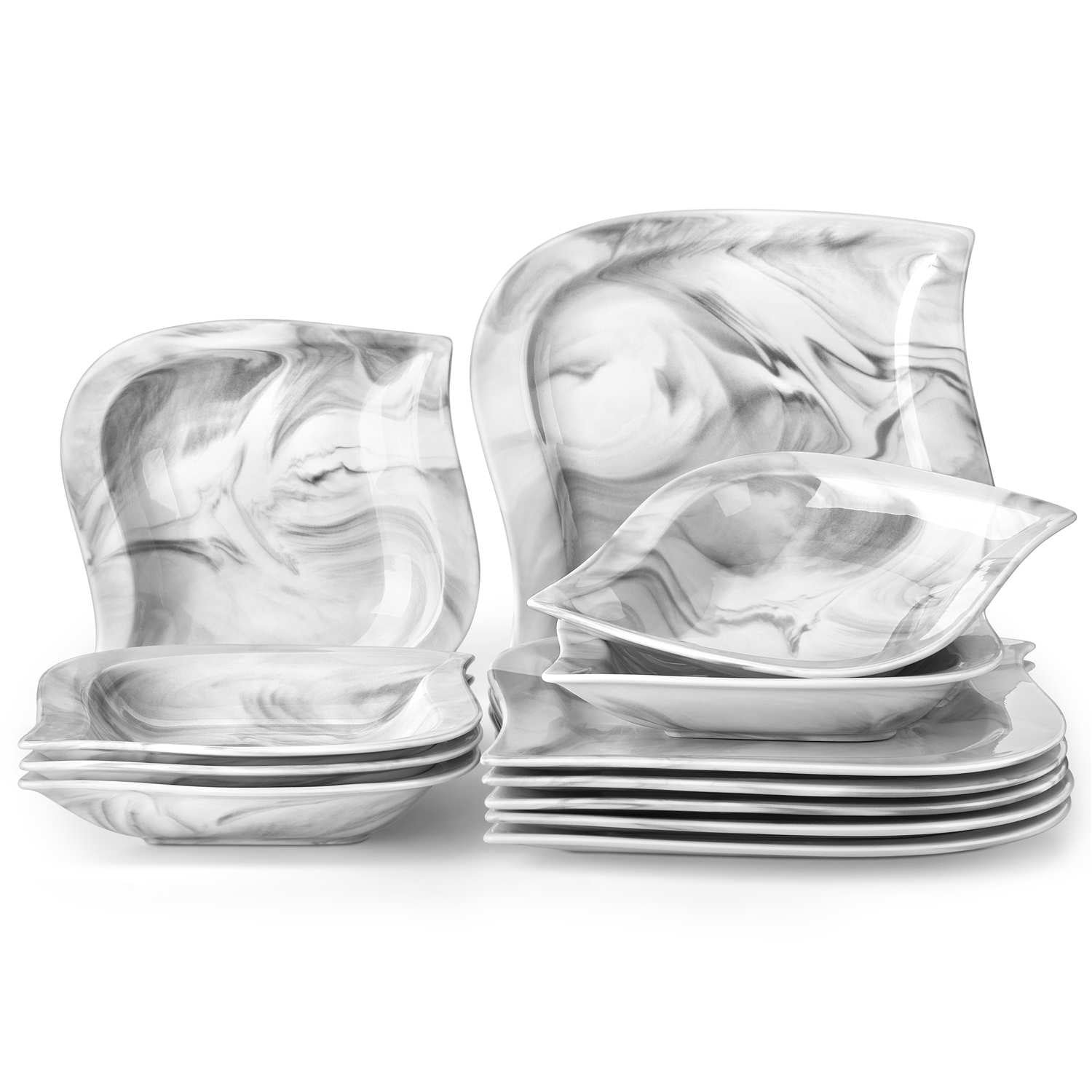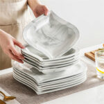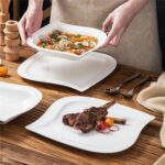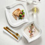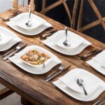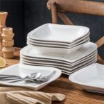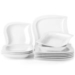 - Fine porcelain leaf-shaped square dinnerware set, service for 6, ivory white
