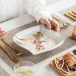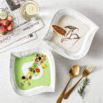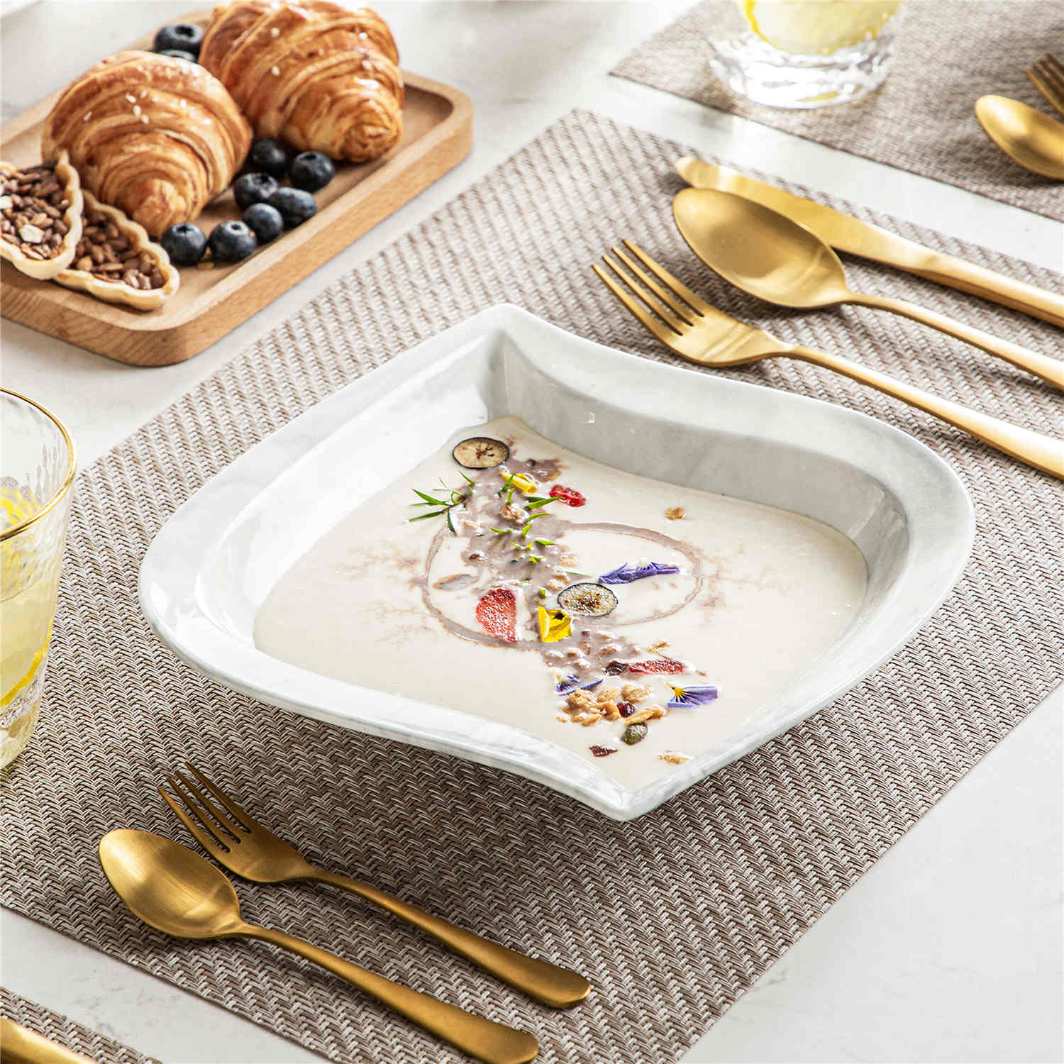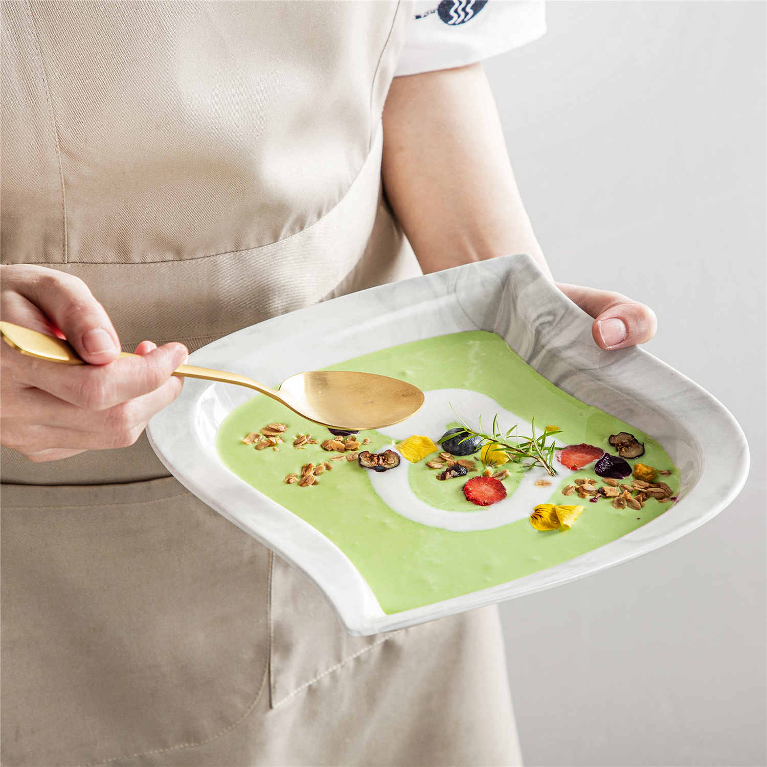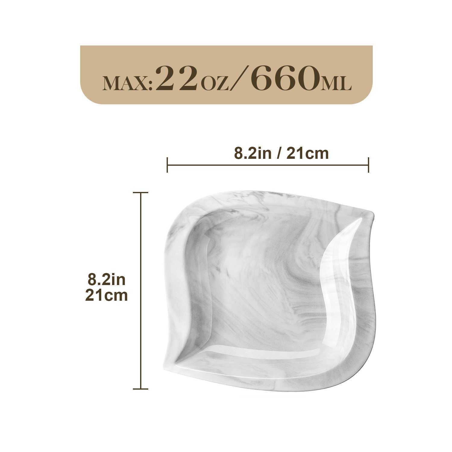 • Fine porcelain leaf-shaped square soup plates, set of 6, marble grey