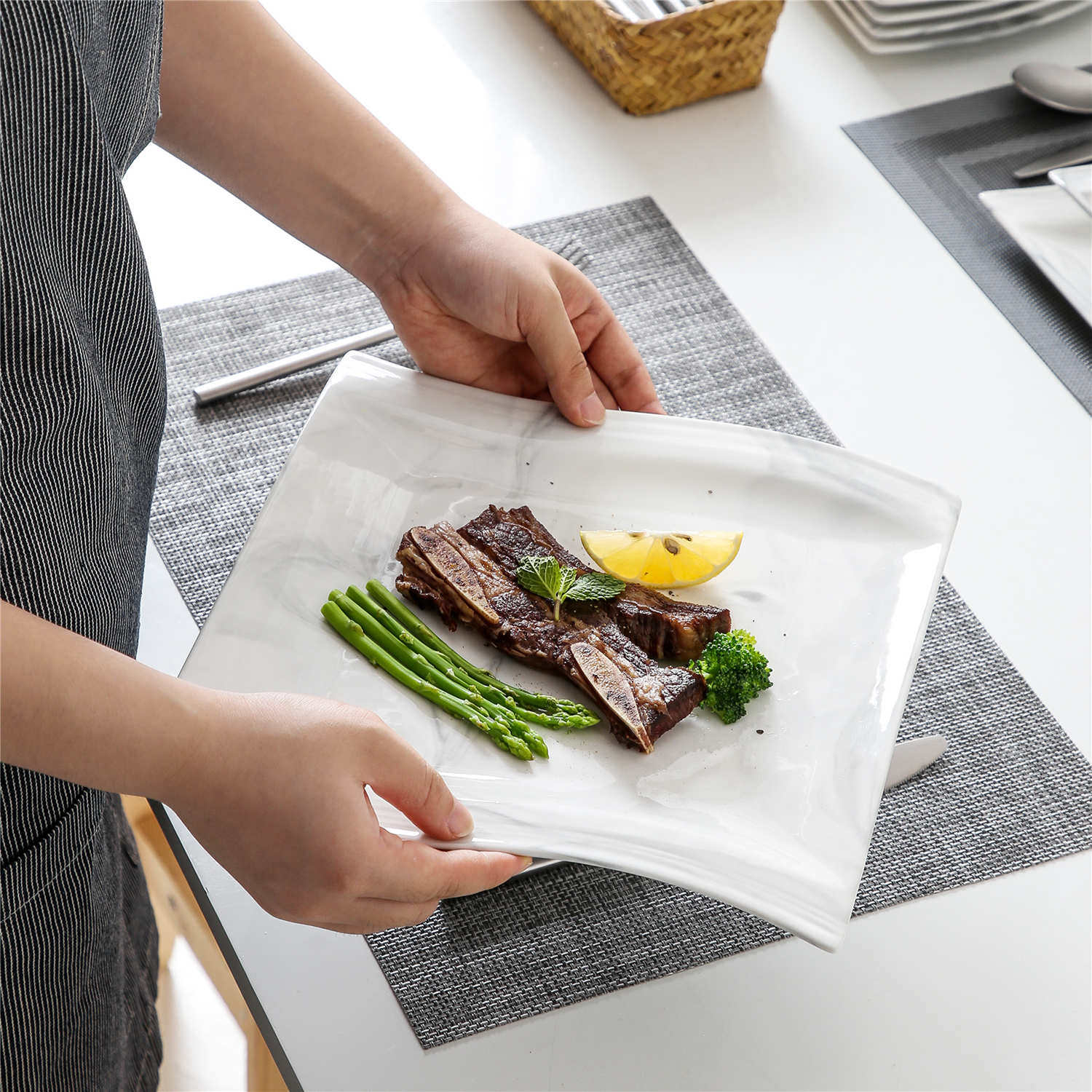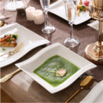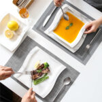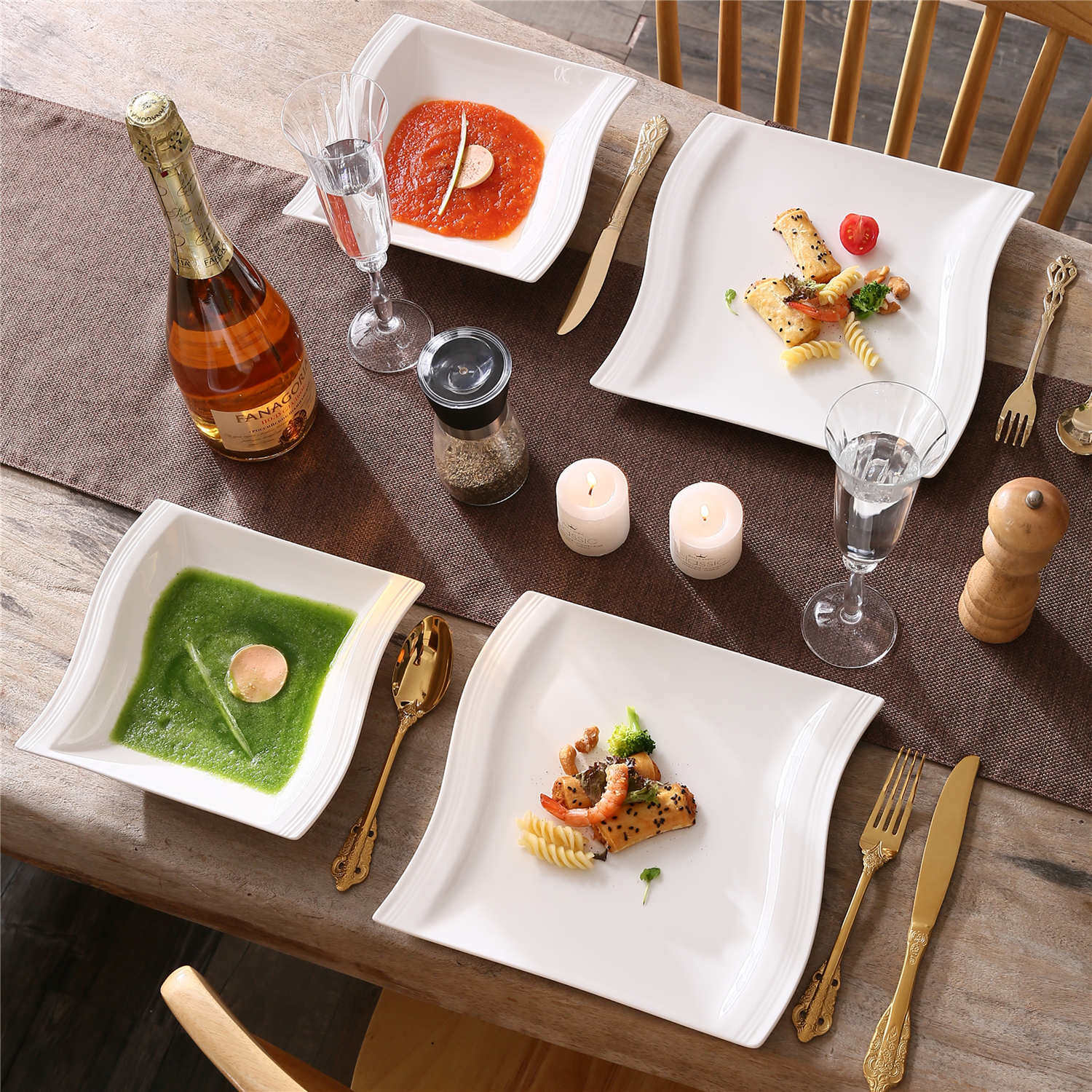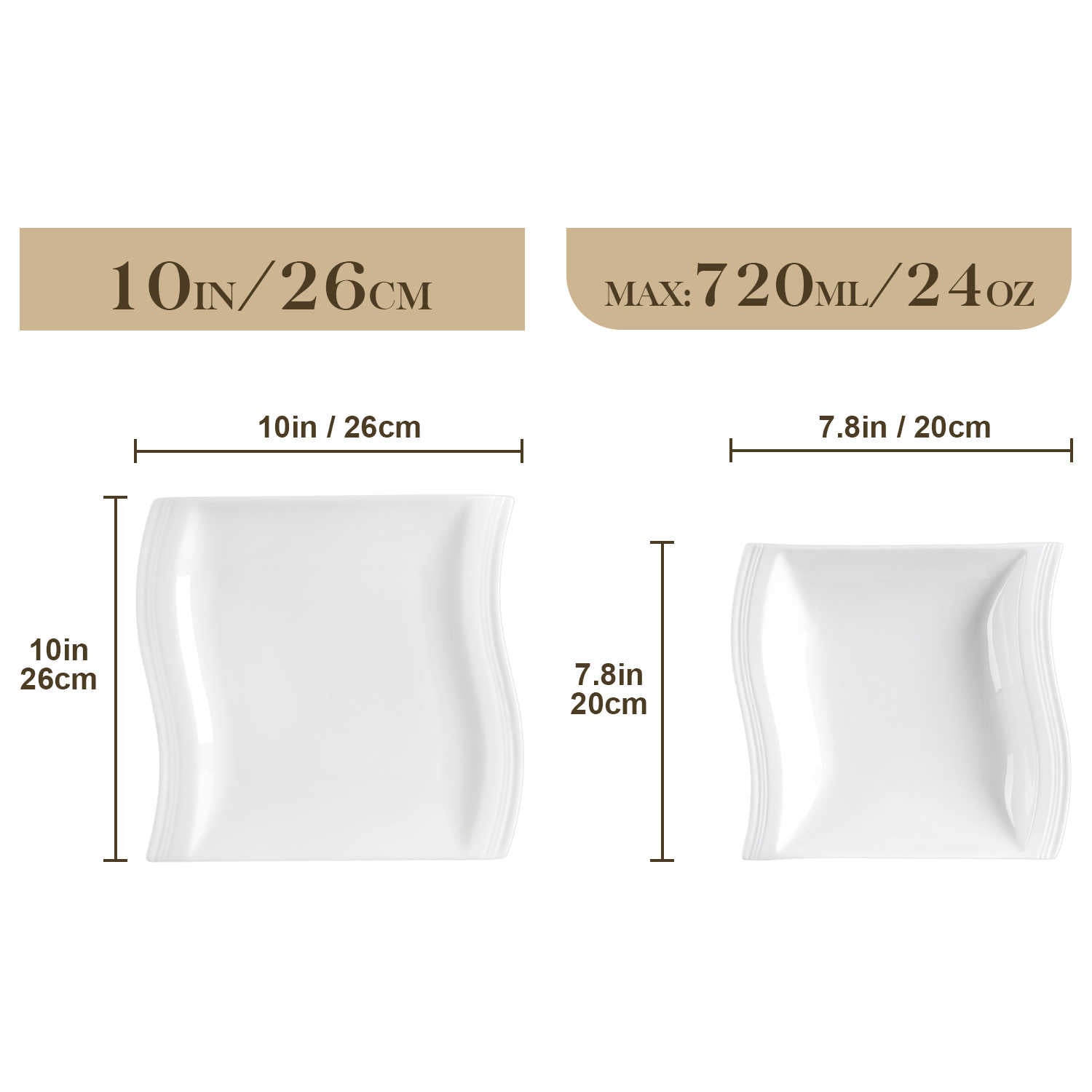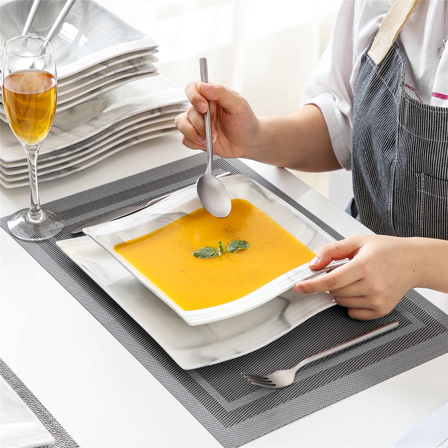 This 12-piece set is ideal for everyday dining or small gatherings, featuring 6 dinner plates and 6 soup plates with elegant wave-edge detailing and geometric accents. Available in ivory white or marble grey, it brings a modern flair to any table. Crafted from durable porcelain, it’s microwave and dishwasher safe, offering both style and convenience for any meal.