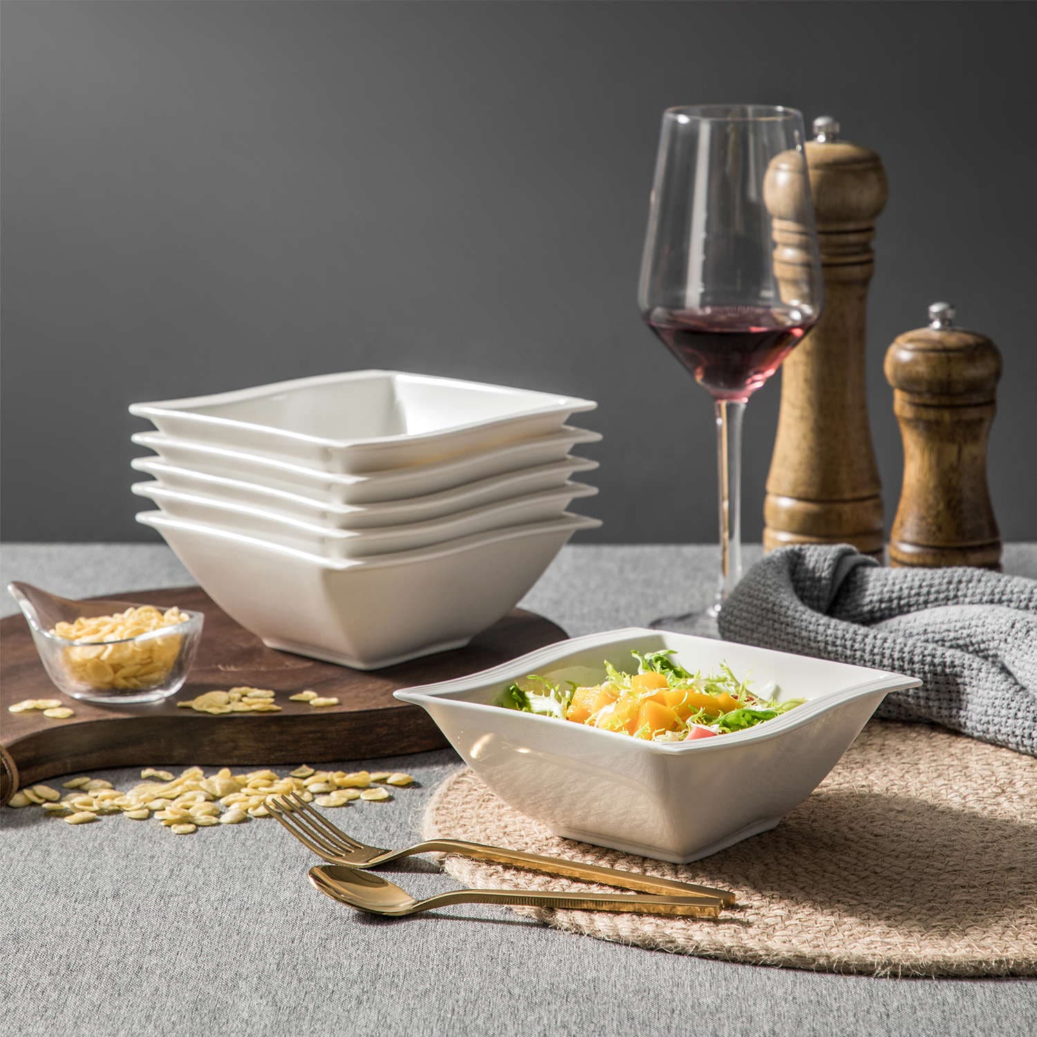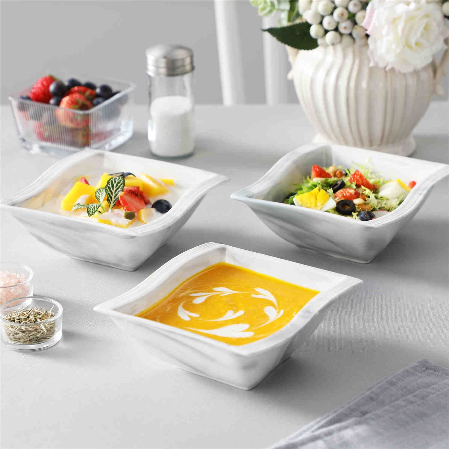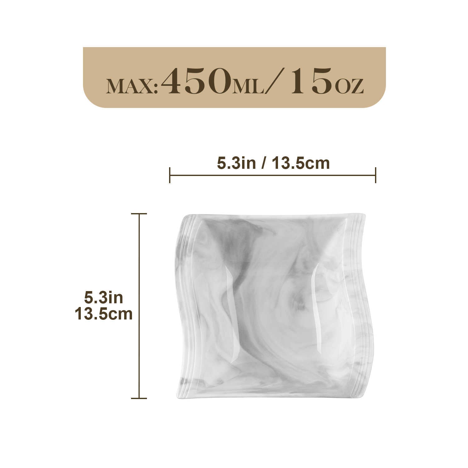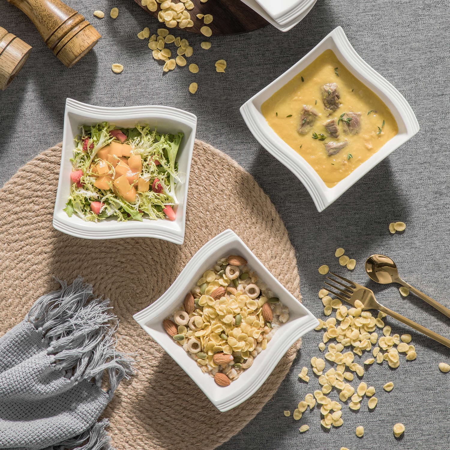 • Porcelain wavy-shaped square cereal bowls, set of 6, ivory white/marble grey