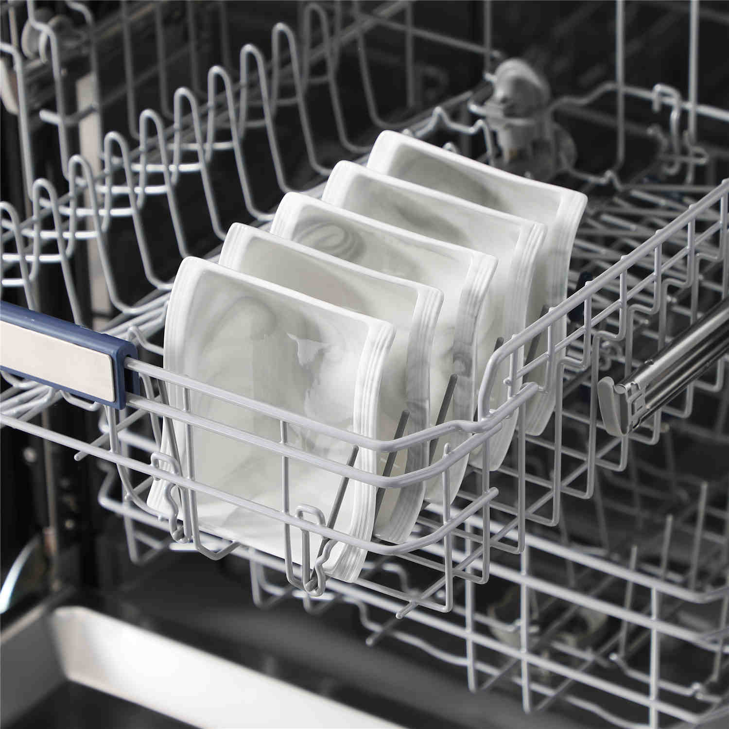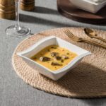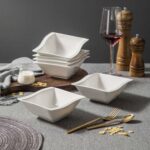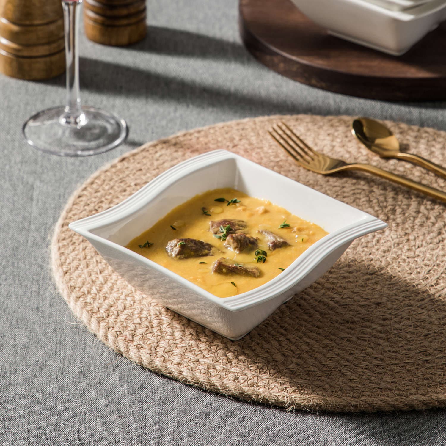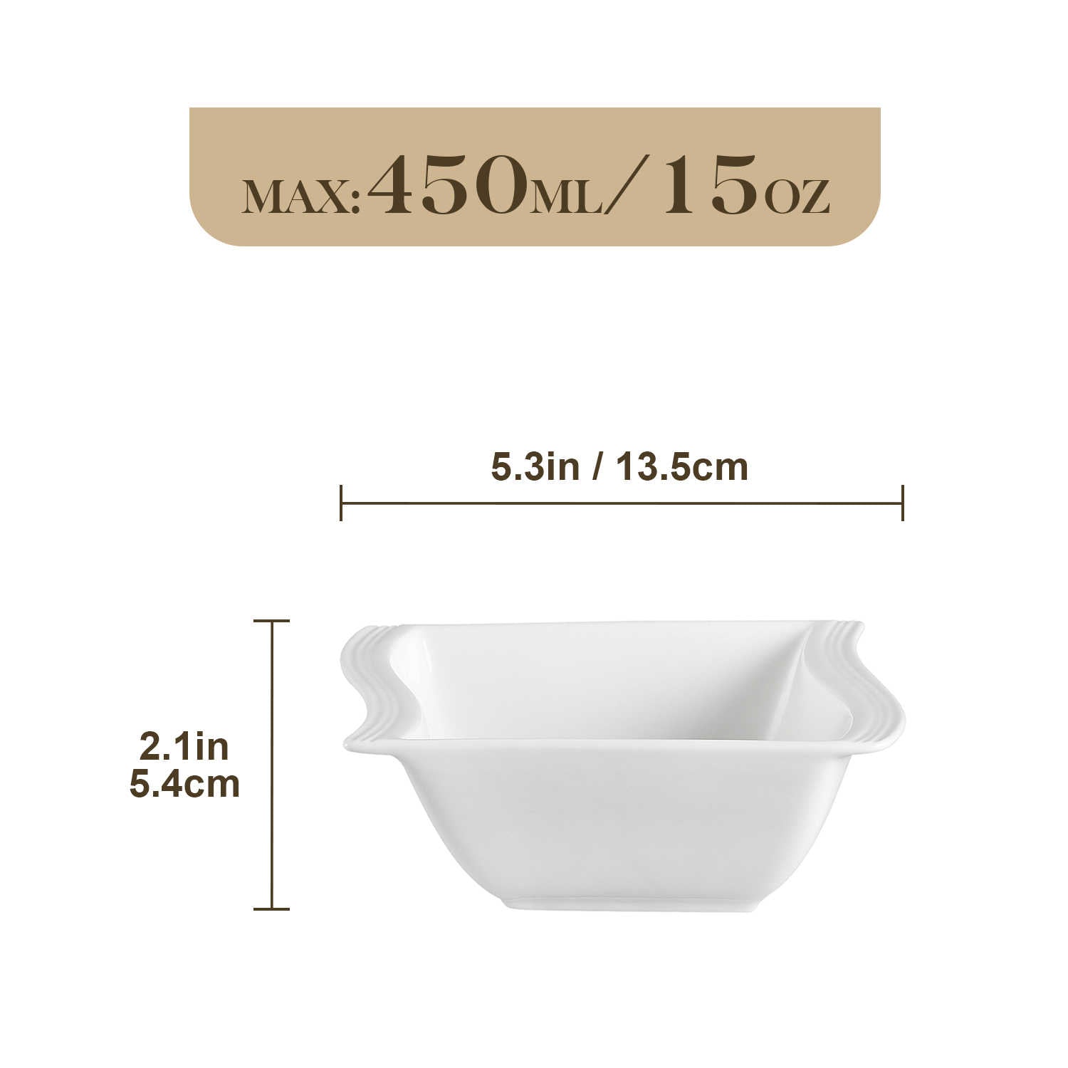 • Porcelain wavy-shaped square cereal bowls, set of 6, ivory white/marble grey