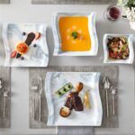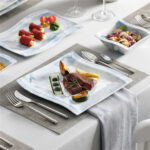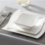 The Flora 26-Piece Set blends elegance and functionality, crafted from premium porcelain in ivory white or marble-inspired grey, blue, and pink. Its square wavy shape and geometric design create a sleek, modern aesthetic. Serving six, the set includes dinner plates, salad plates, soup plates, cereal bowls, and two versatile serving dishes. Durable and stackable for easy storage, it’s microwave, oven, and dishwasher safe. Inspired by blooming flowers, Flora brings a fresh, contemporary touch to everyday meals or special occasions.