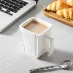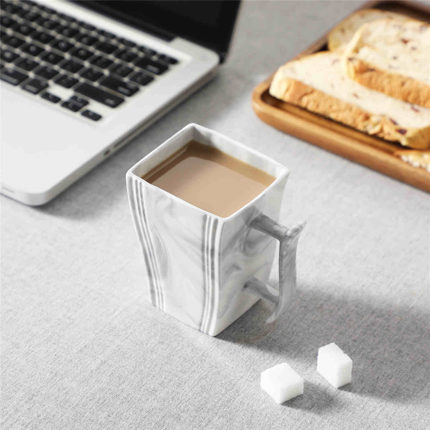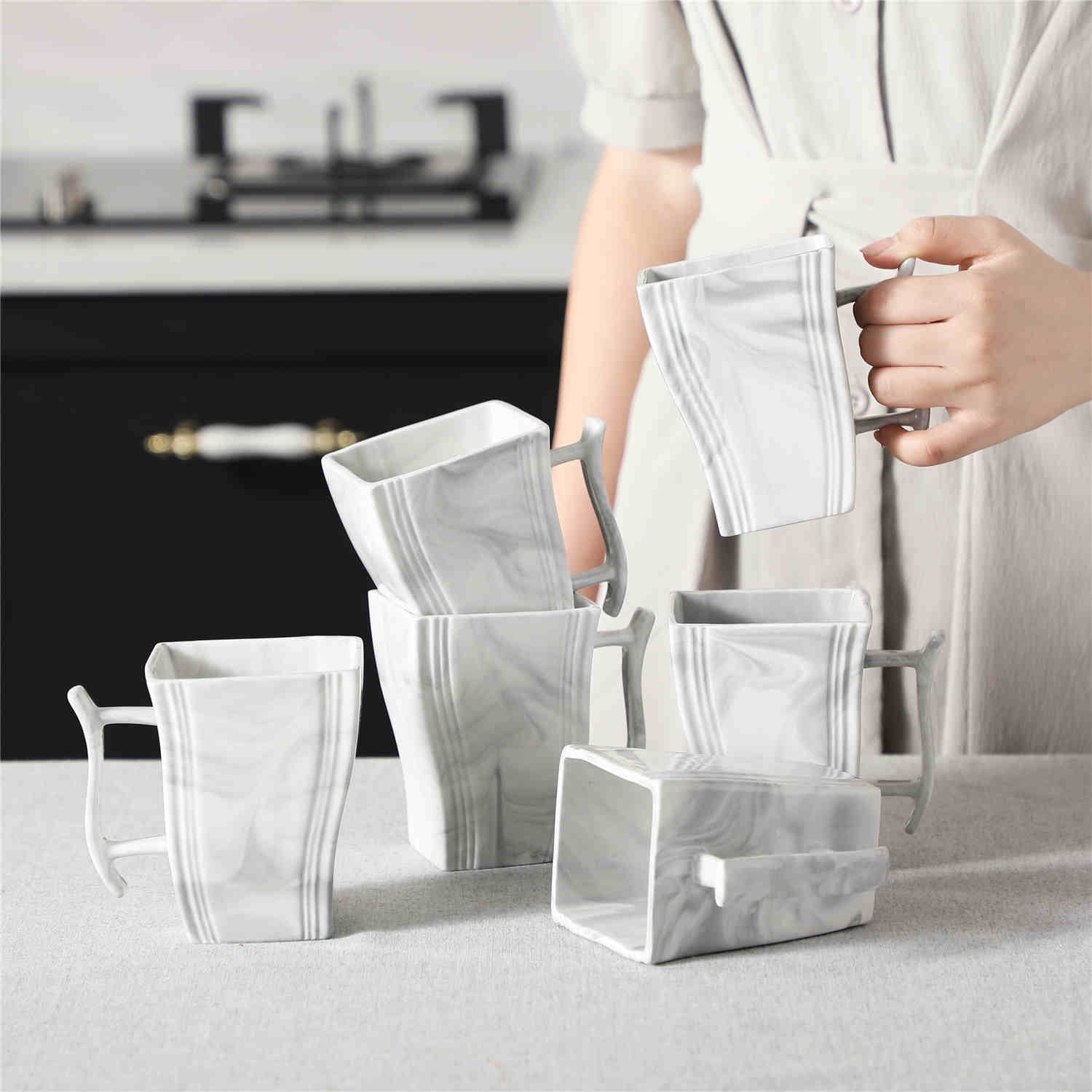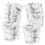 - Fine porcelain wavy-shaped mugs, set of 6, ivory white/marble grey