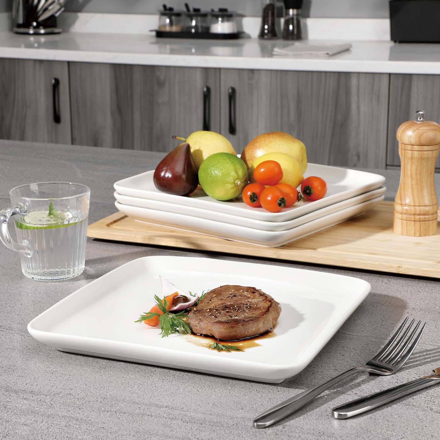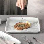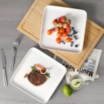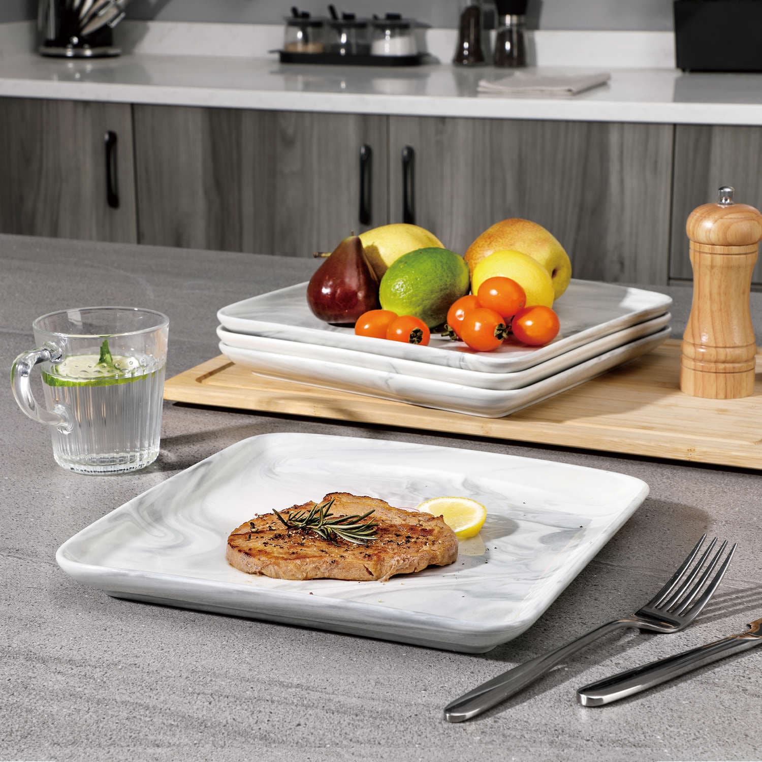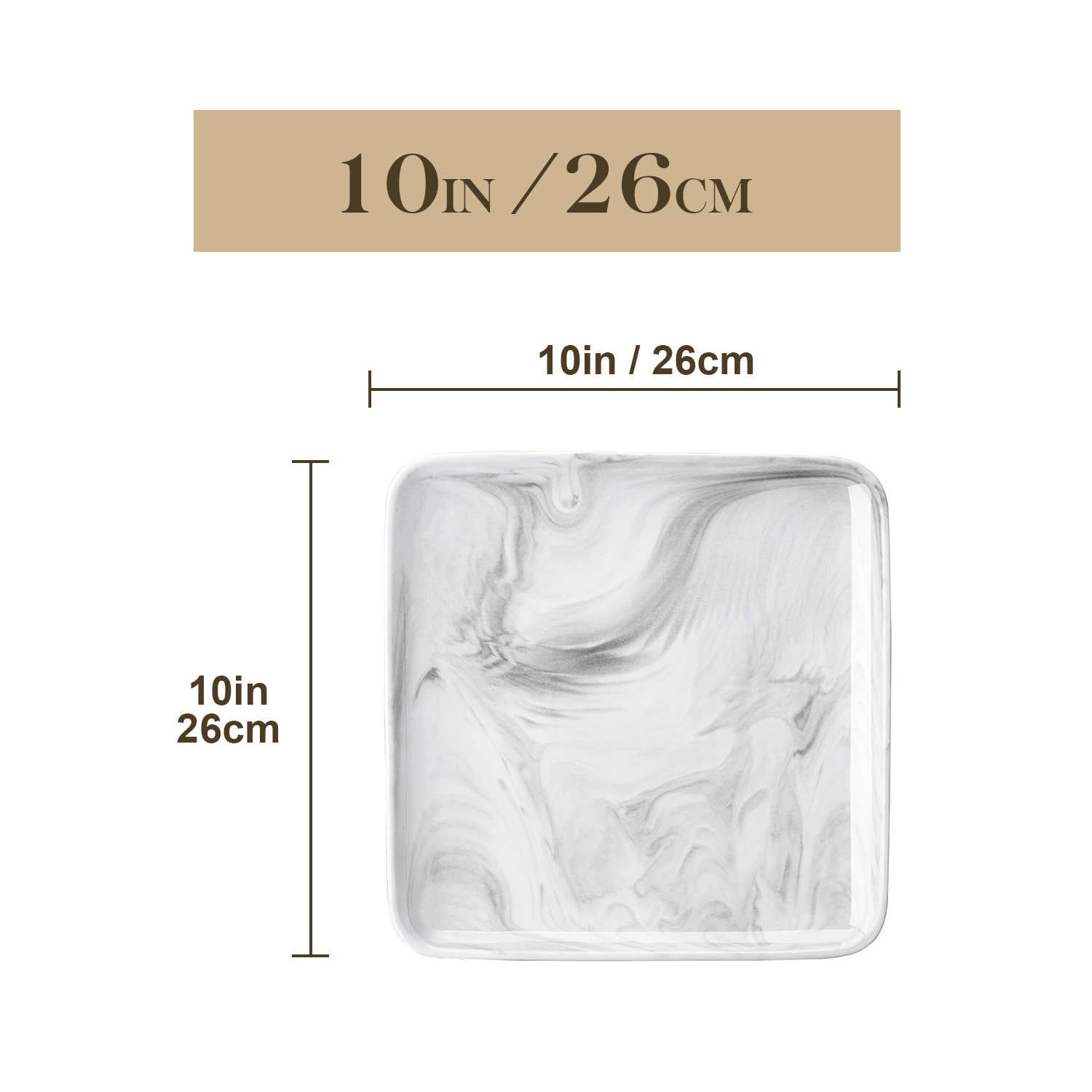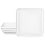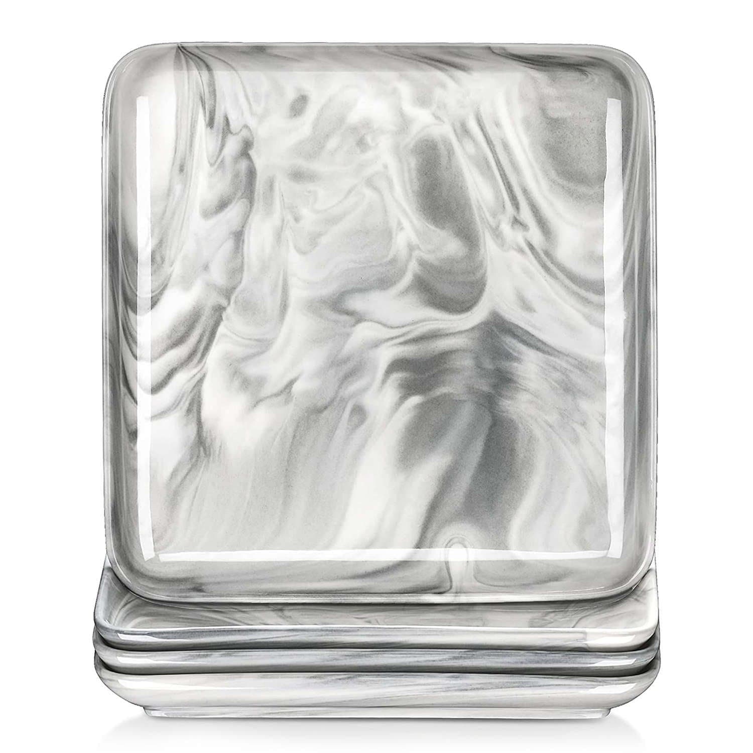 - Fine porcelain square dinner plates, set of 4, ivory white/marble grey
