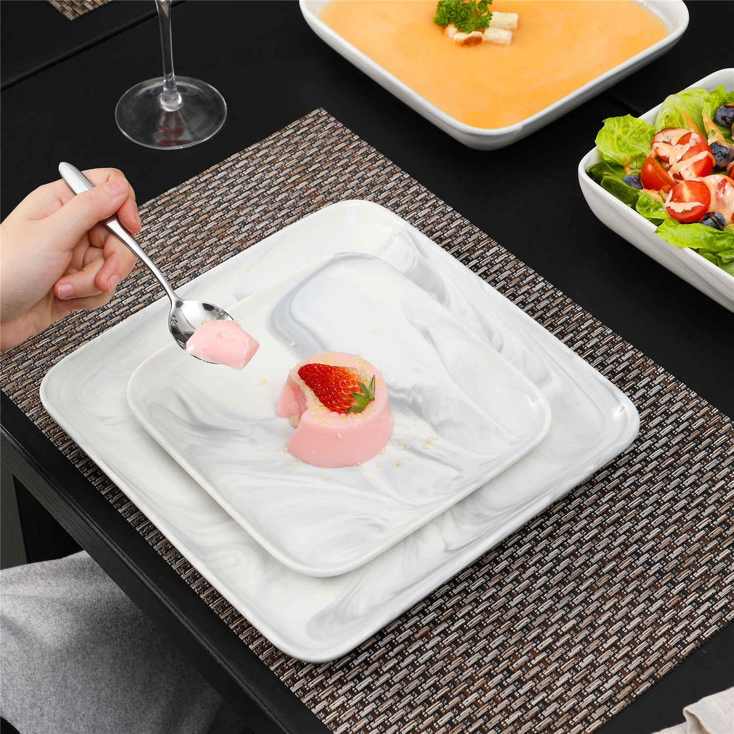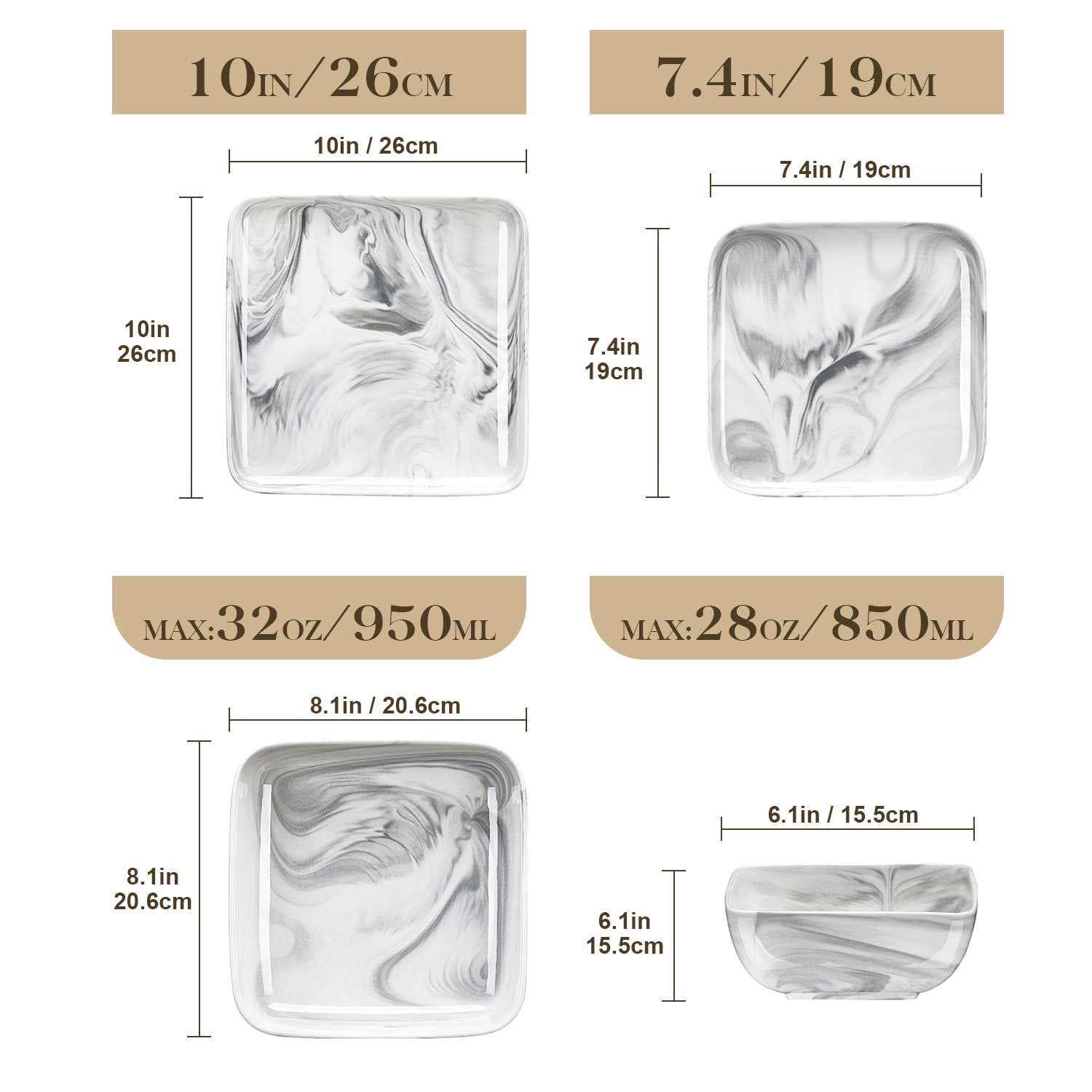 • Fine porcelain square dinnerware set, service for 6, marble grey