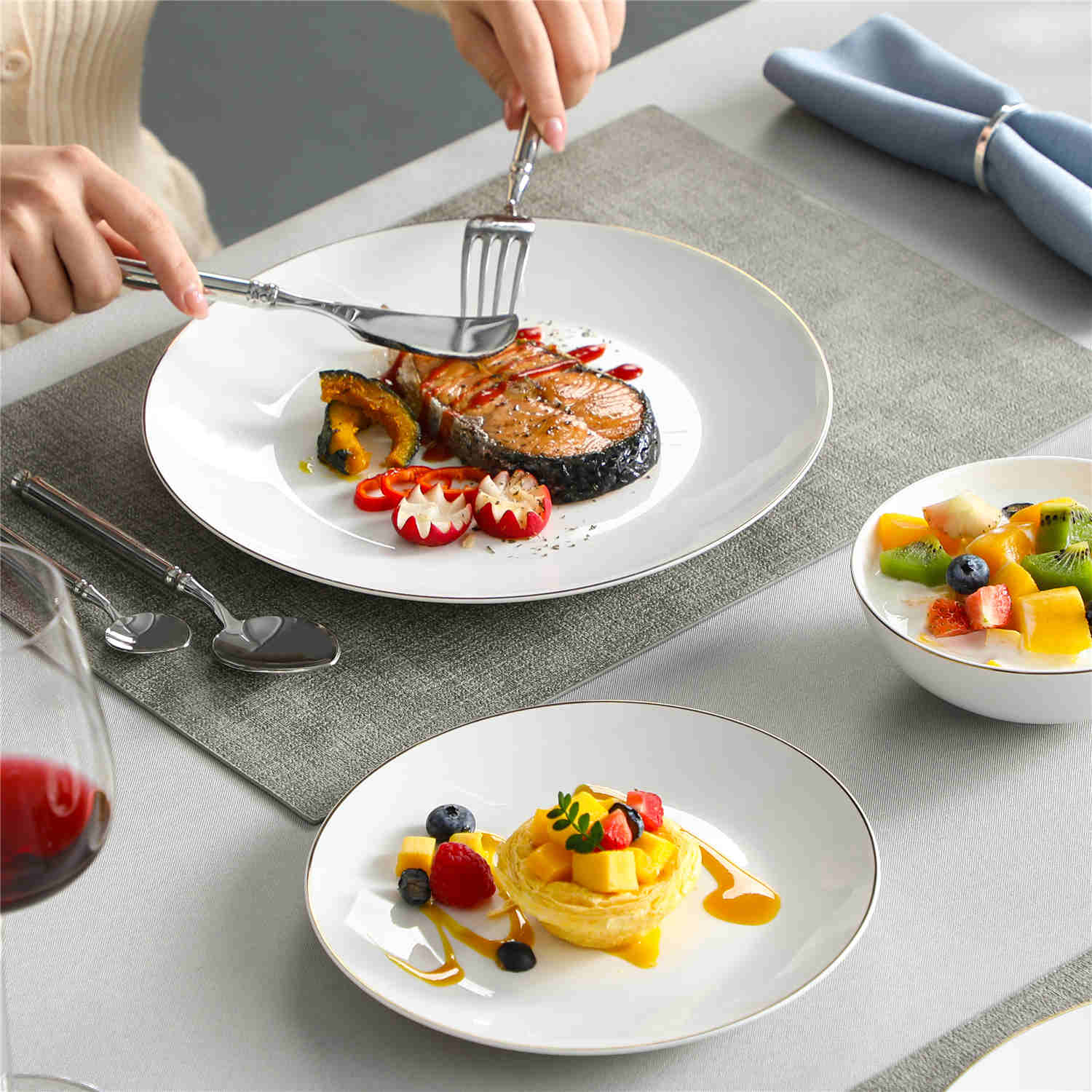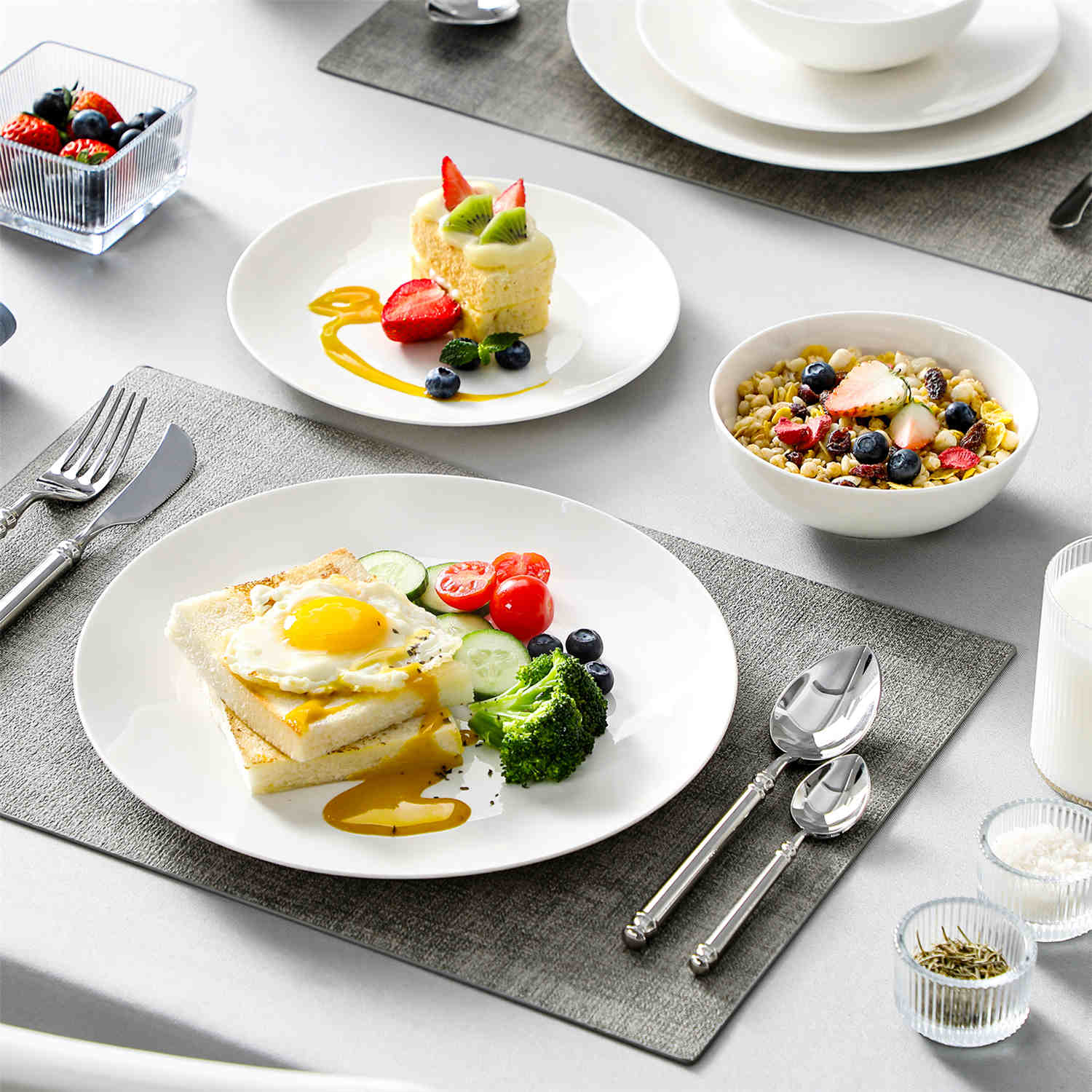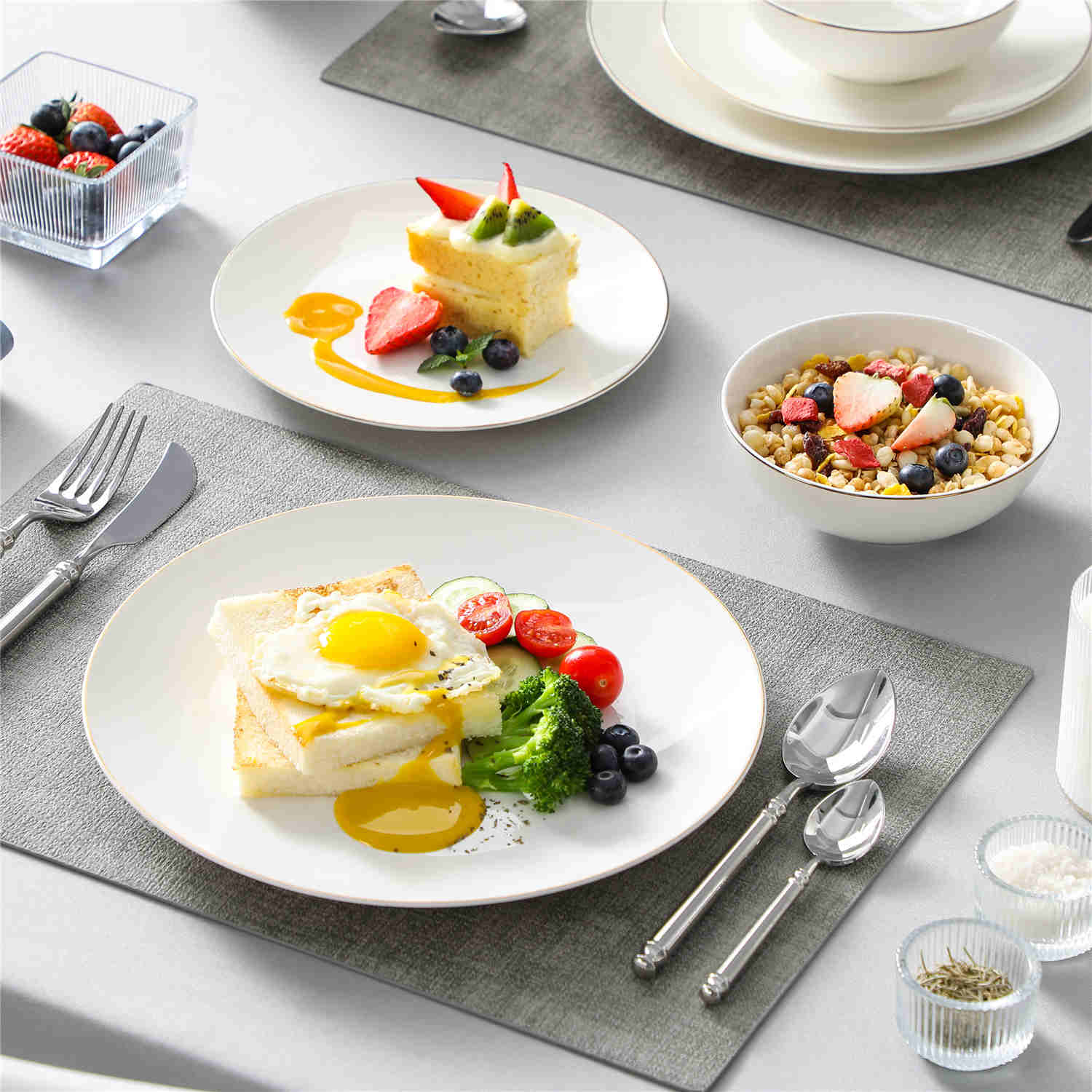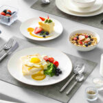 Meticulously crafted from premium bone china, the Jera collection boasts elegant thinness, translucent beauty, and refined texture. Each piece exudes artistic ambiance, elevating your dining experience.