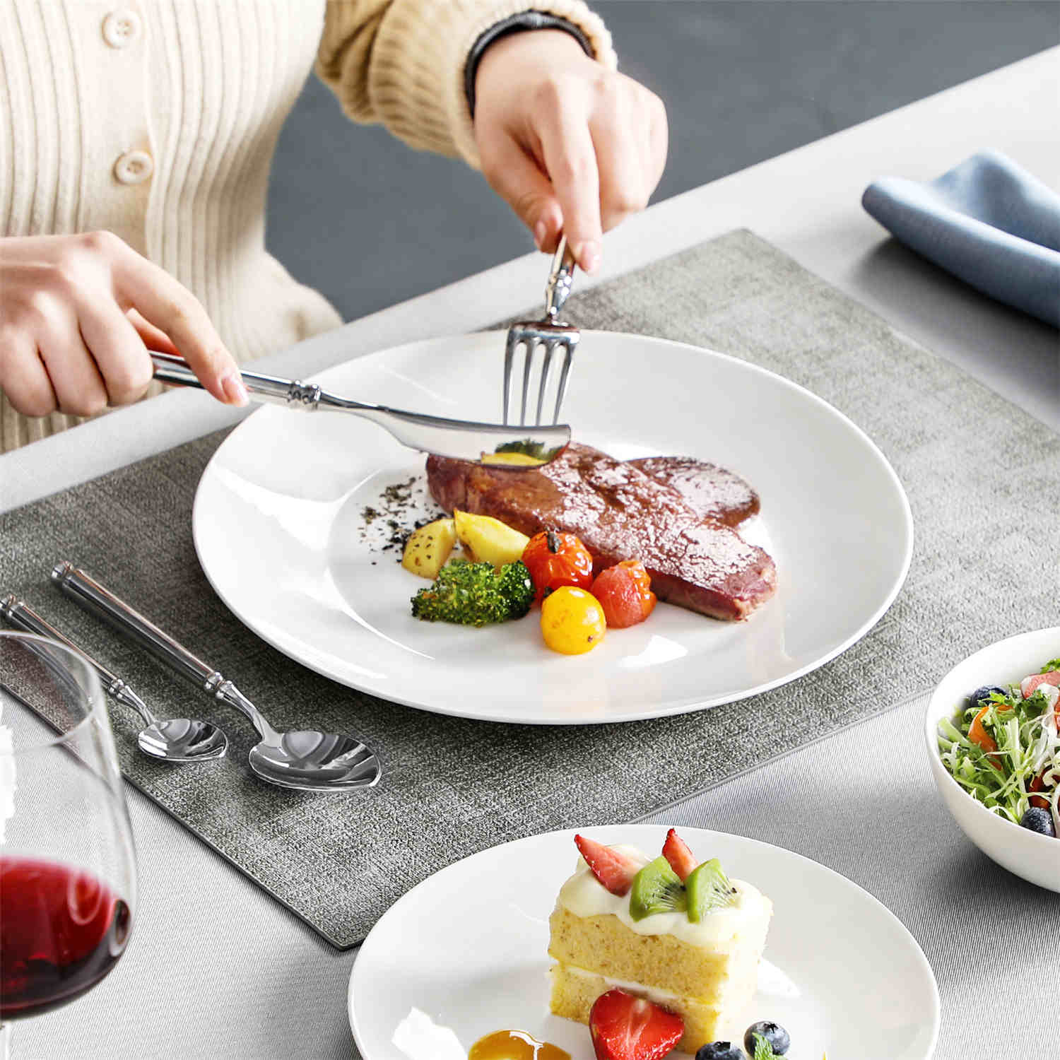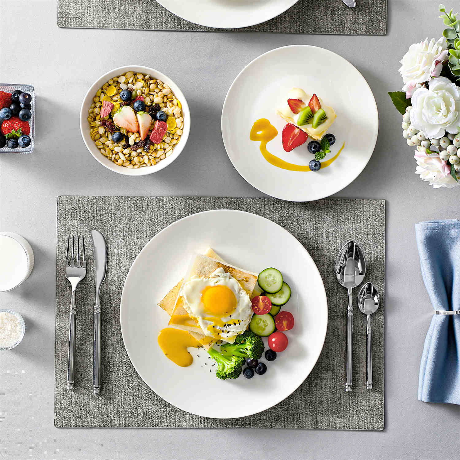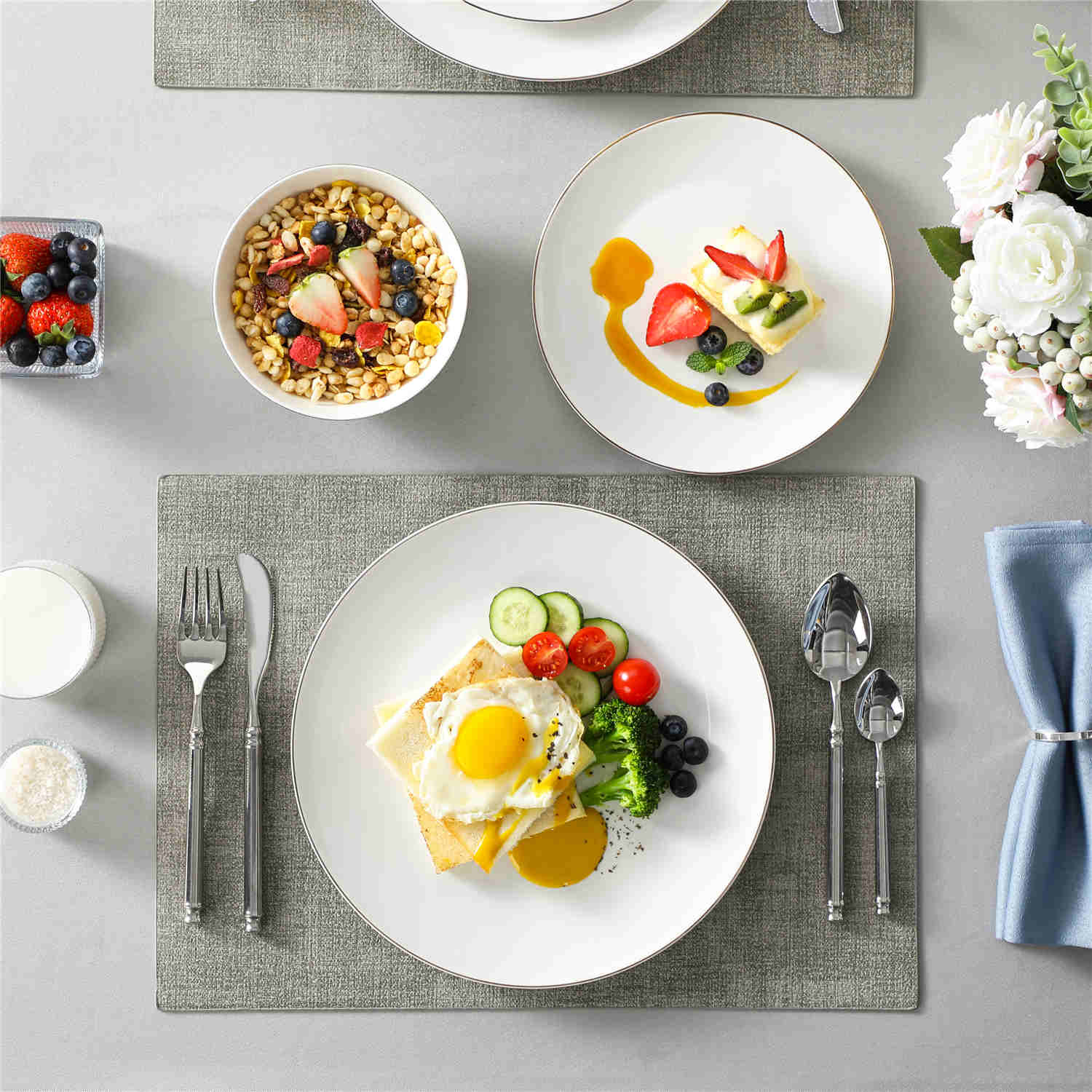 Meticulously crafted from premium bone china, the Jera collection boasts elegant thinness, translucent beauty, and refined texture. Each piece exudes artistic ambiance, elevating your dining experience.