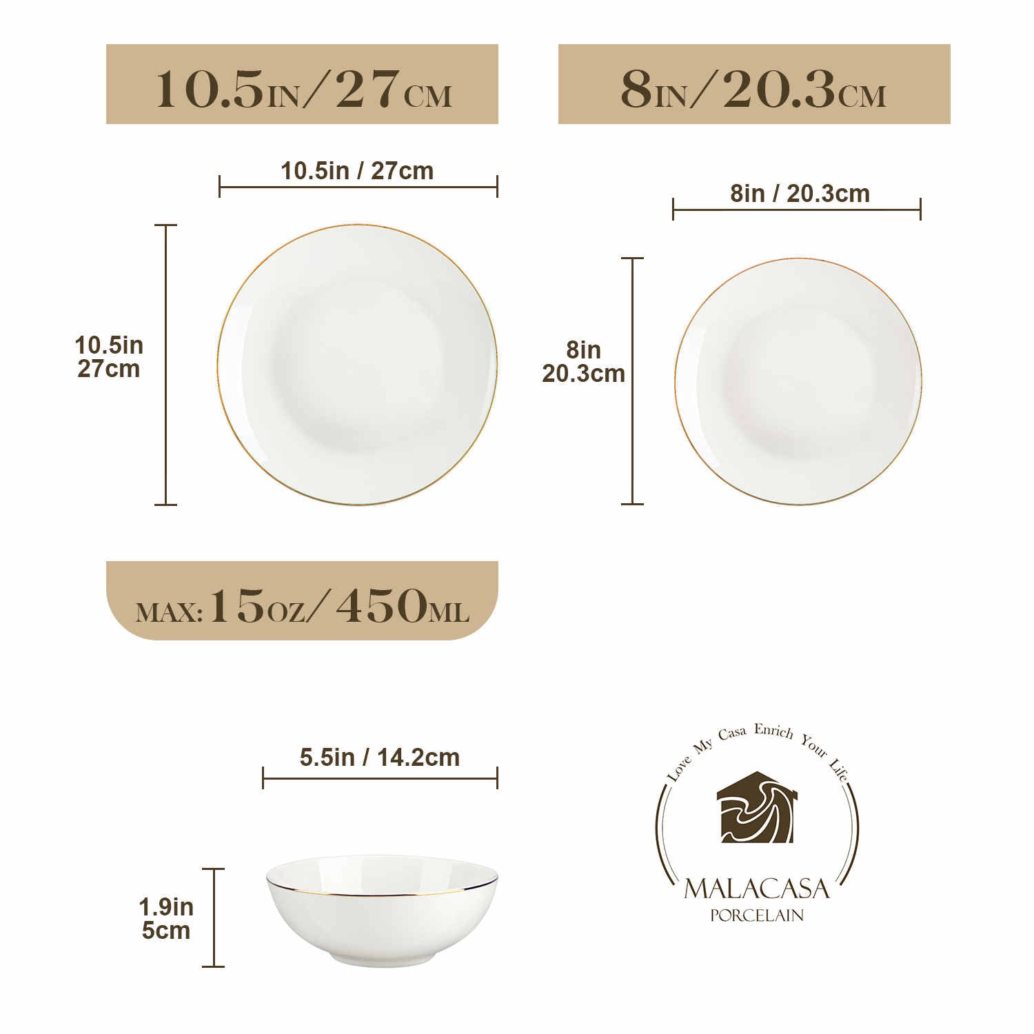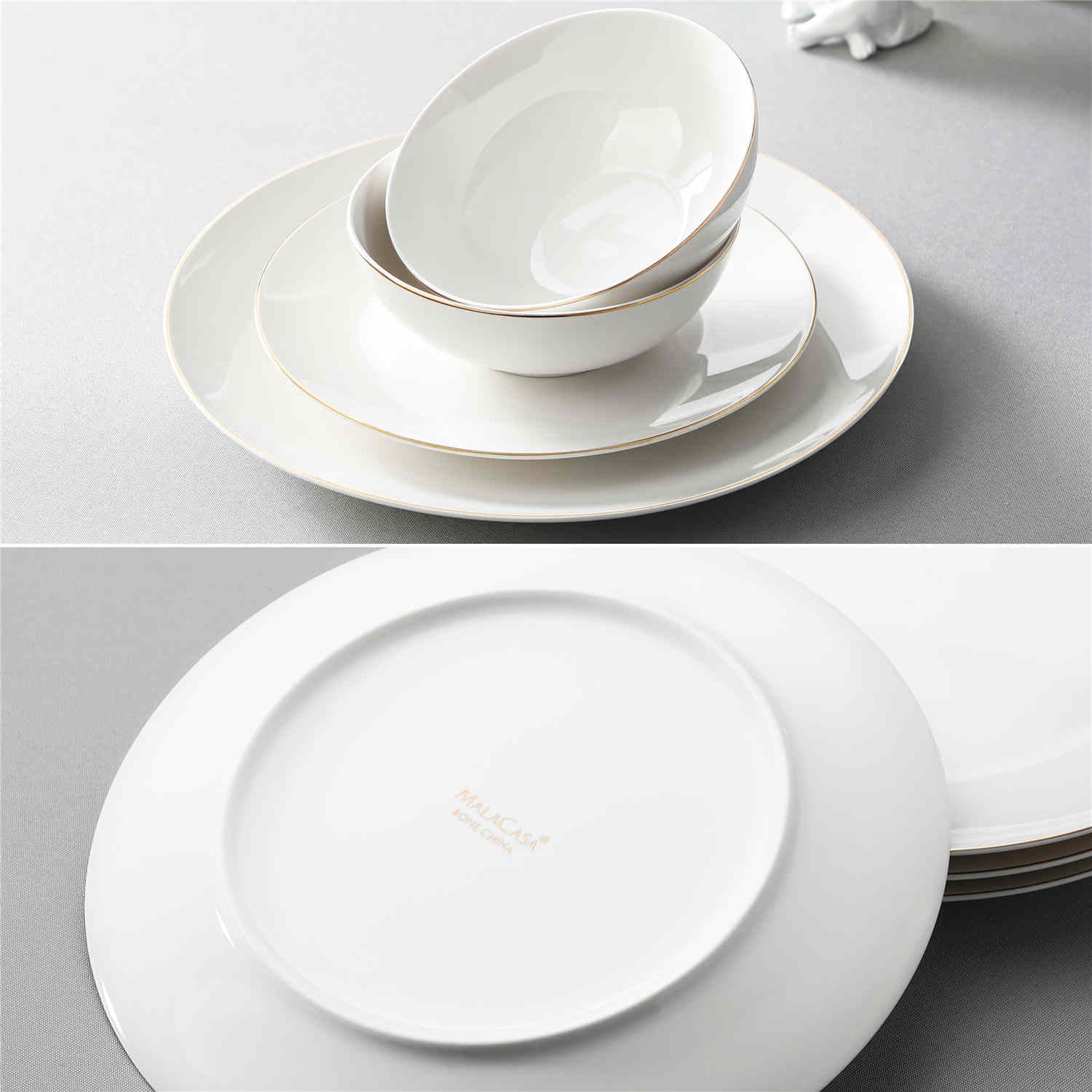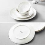 The modern round shape with a distinctive gold trim blends contemporary and classic styles seamlessly. This luxurious design suits all dining occasions perfectly.