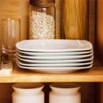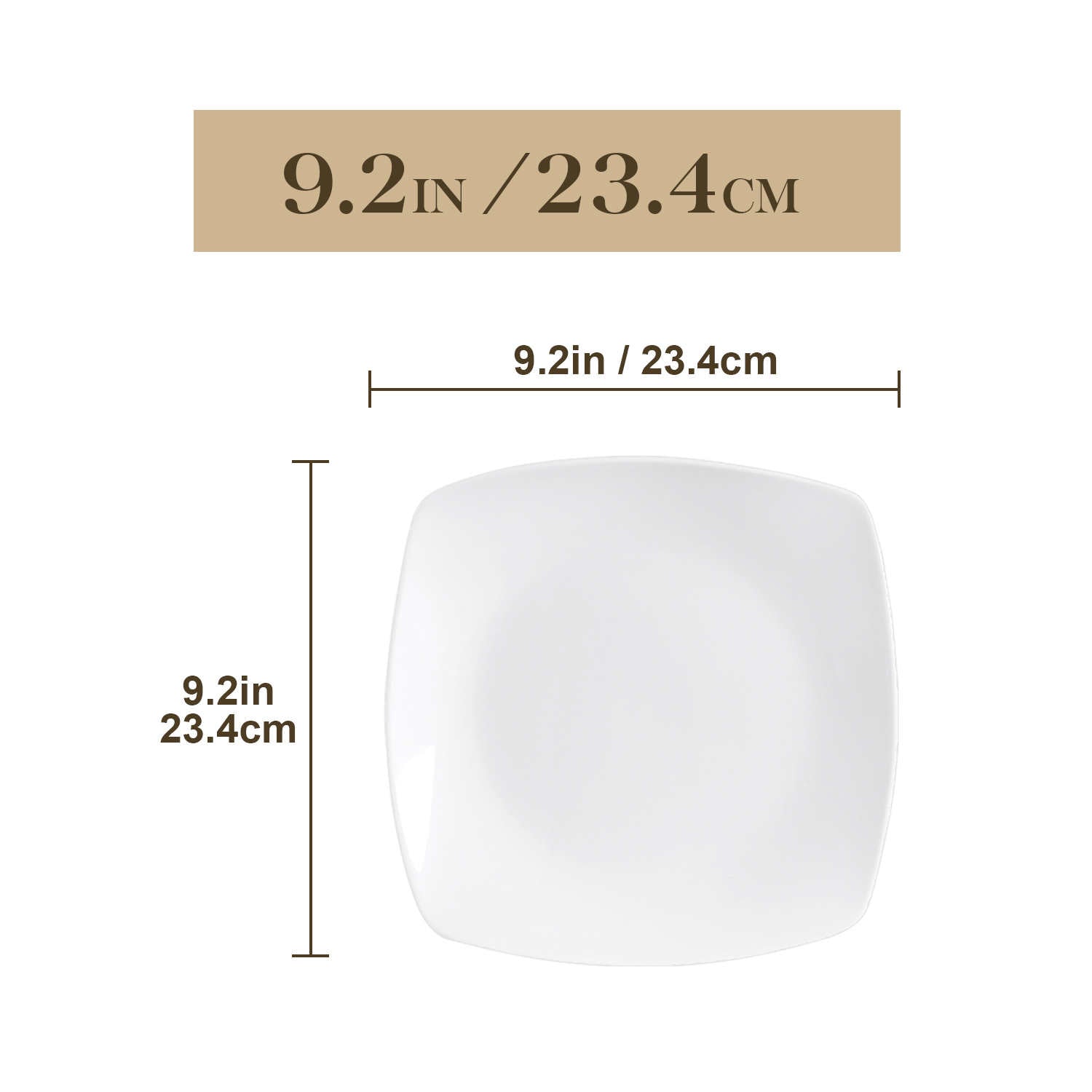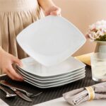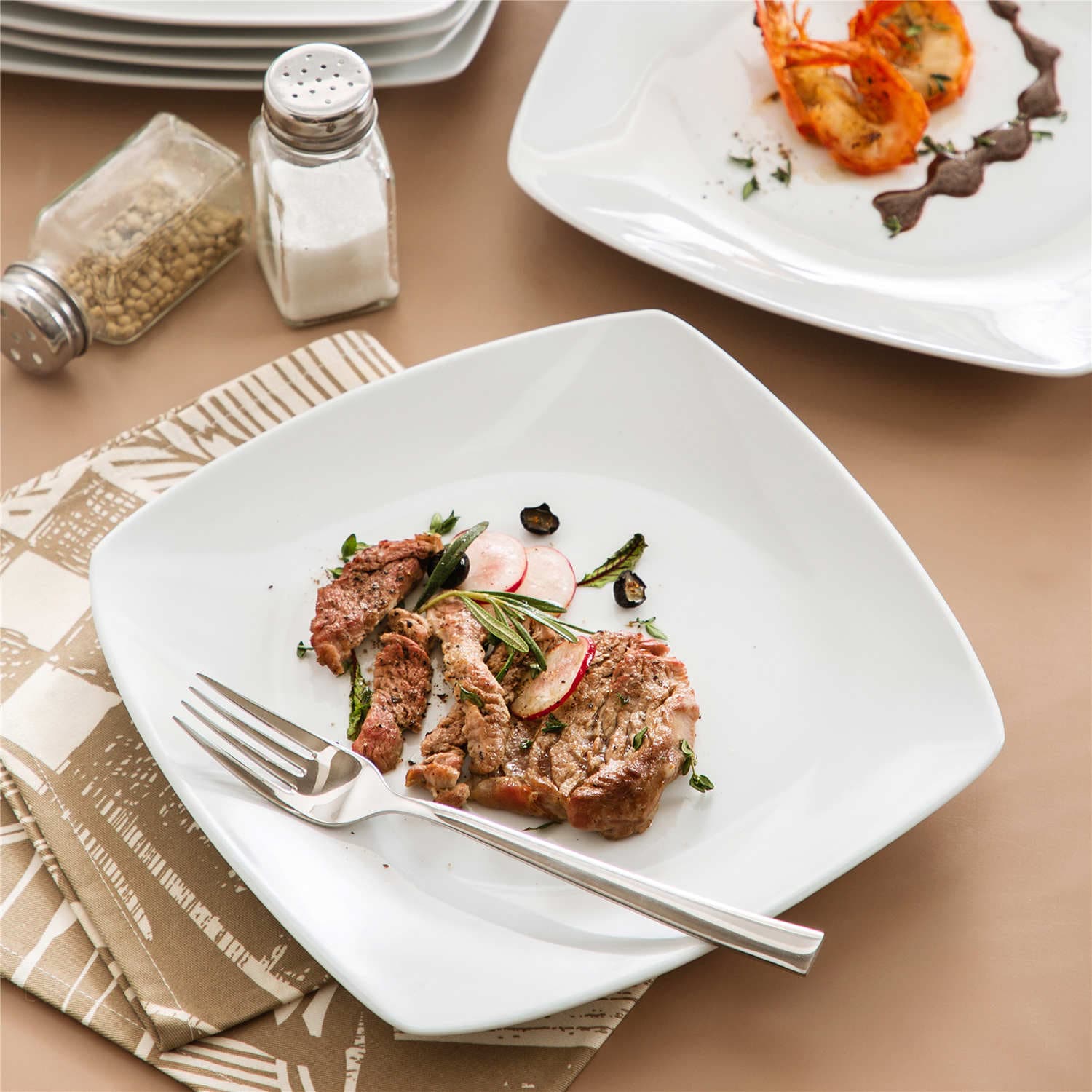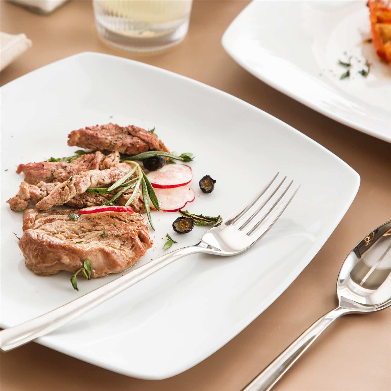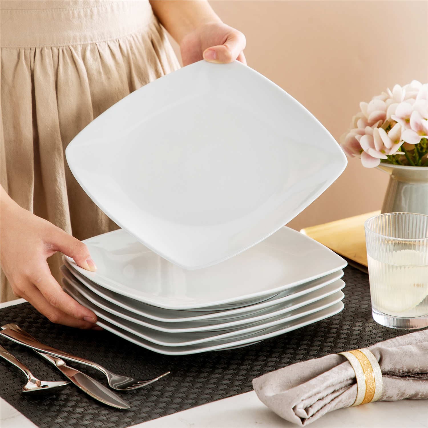- Fine porcelain simple line edges square dinner plates, set of 6, neutral white