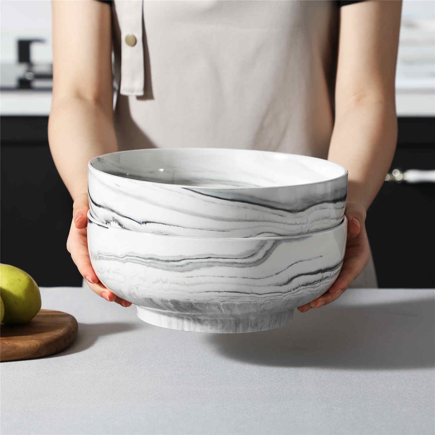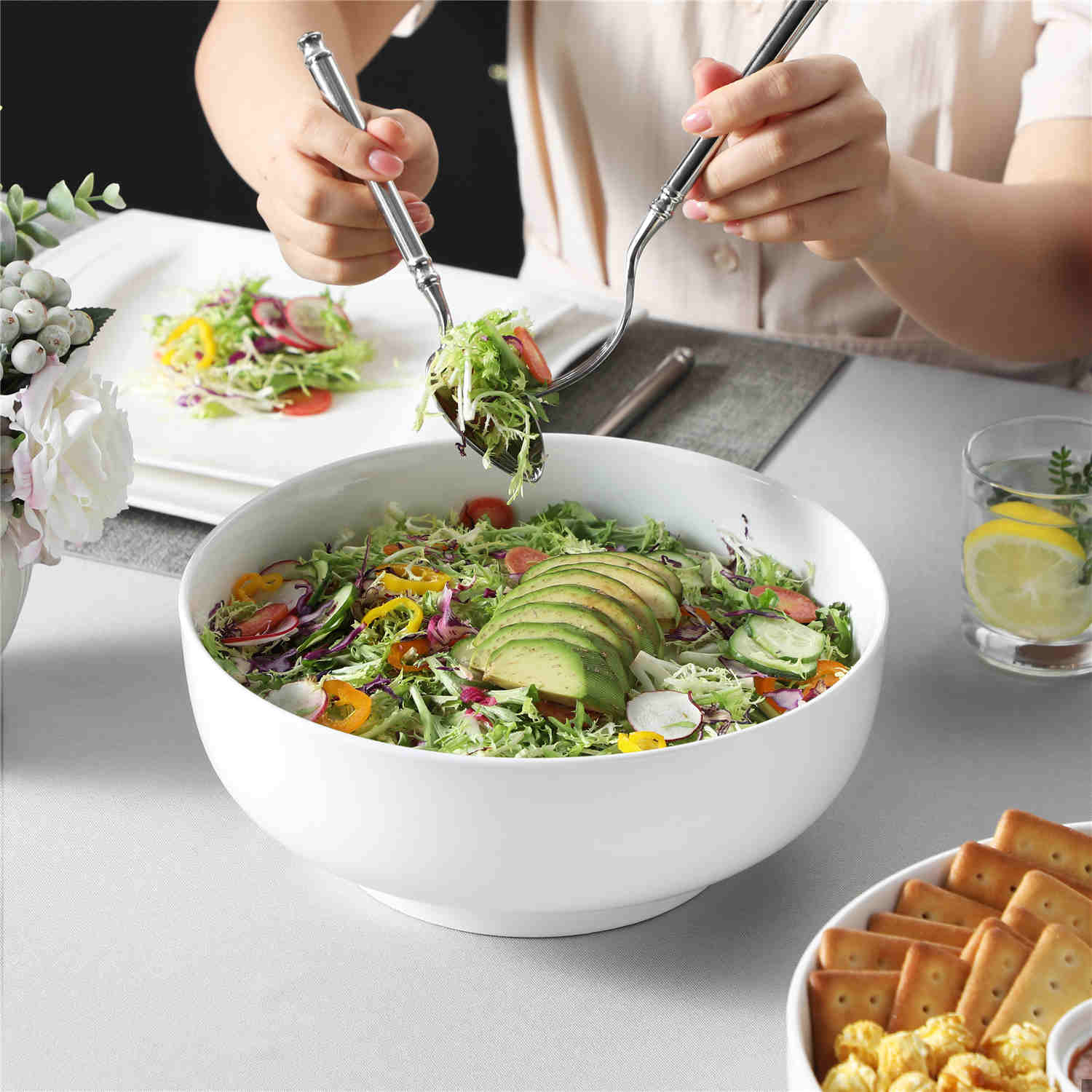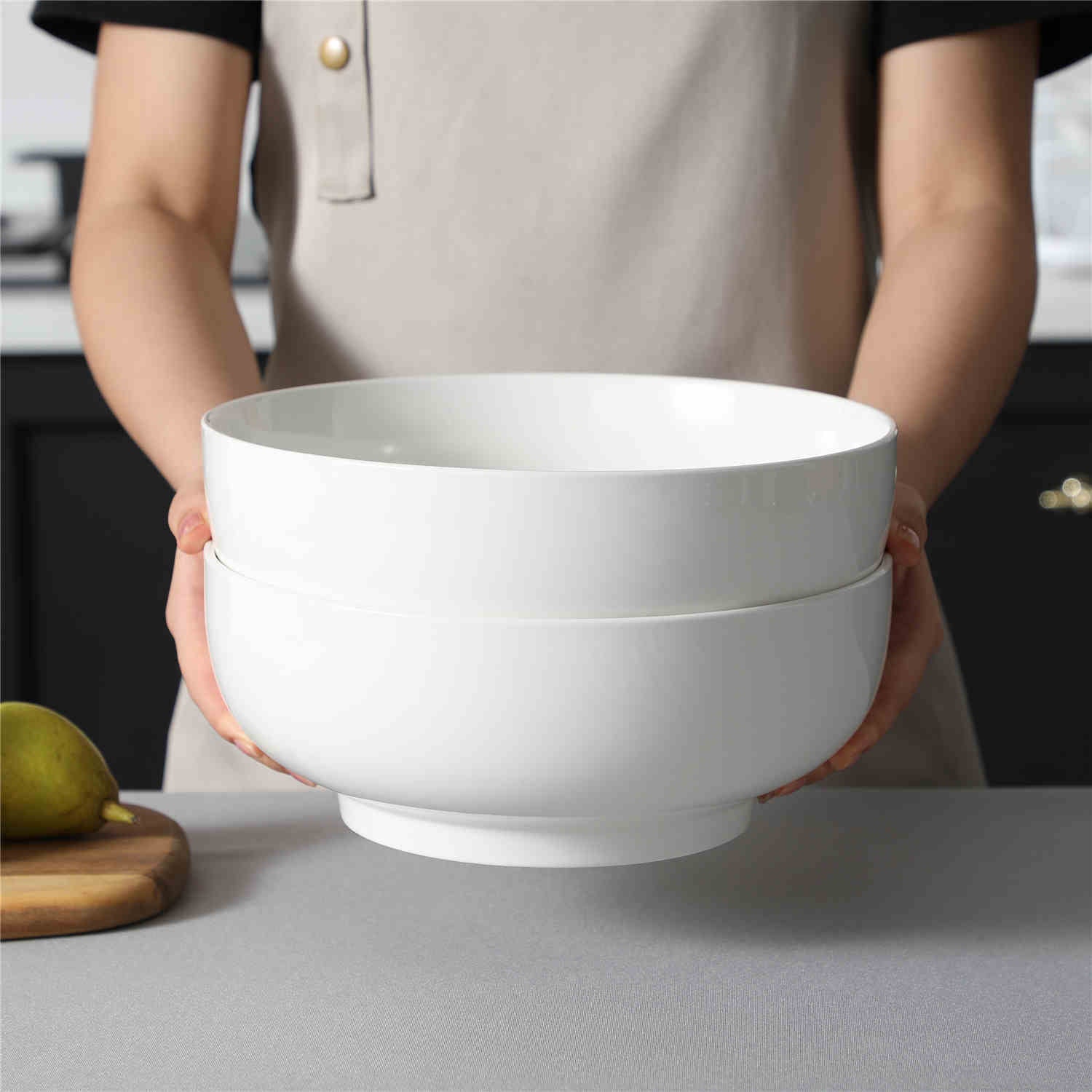Measuring 10″ wide and 3.9″ deep with a 114 oz capacity, these serving bowls are crafted from durable, non-porous porcelain and are microwave, dishwasher, and oven safe. Ideal for family gatherings, potlucks, and holiday feasts, they’re perfect for mixing, serving, and storing. The timeless design pairs effortlessly with the Regular collection, bringing a refined touch to any table.