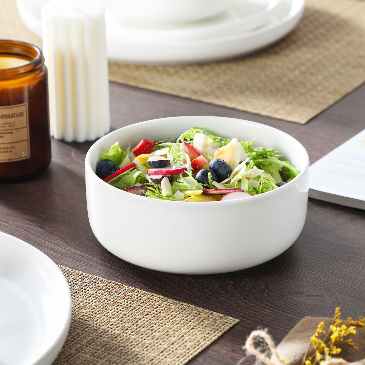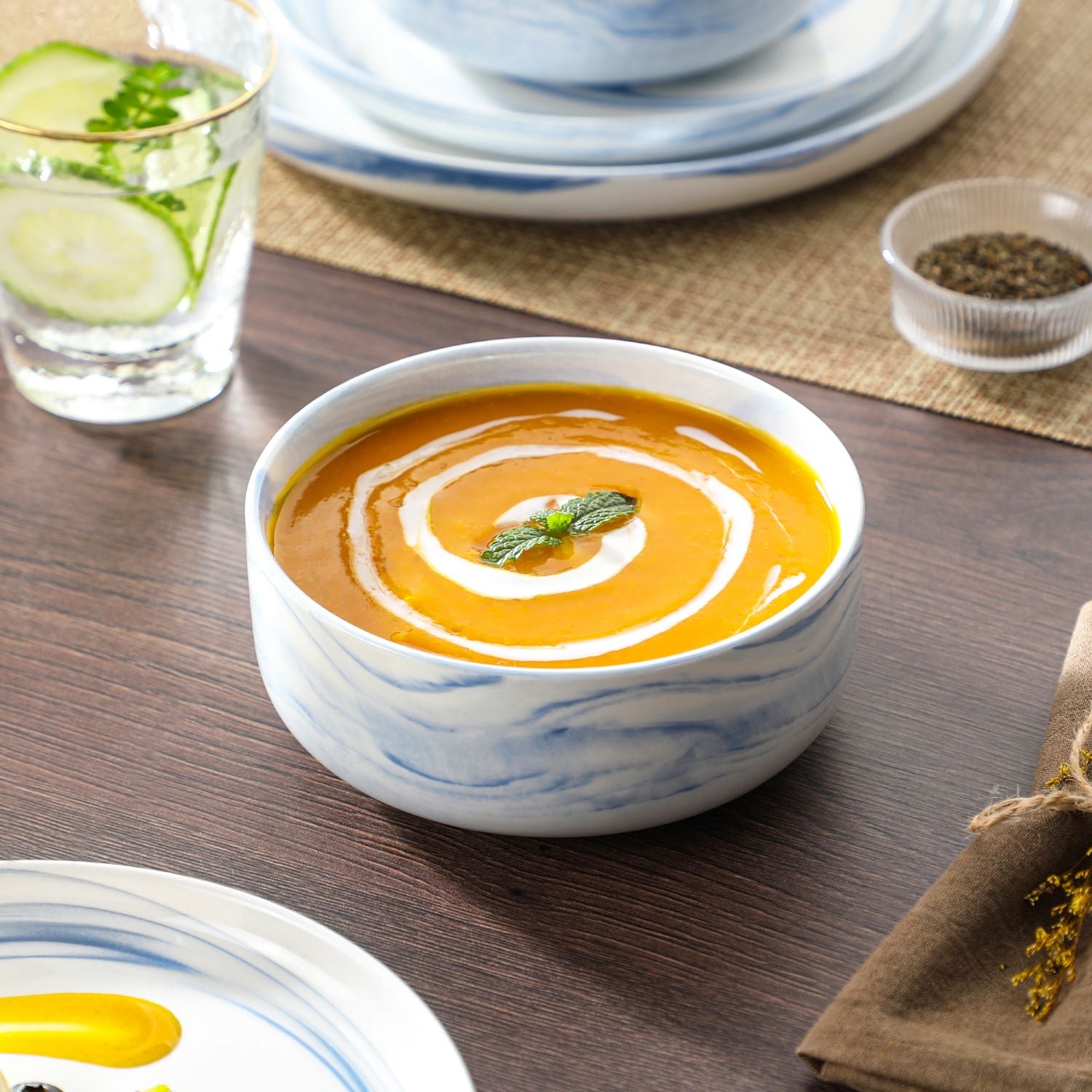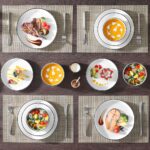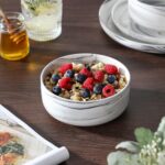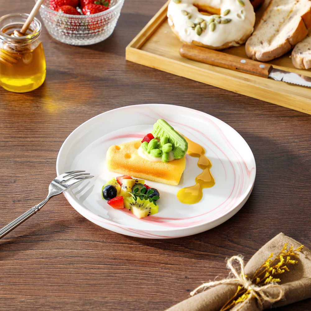 The Luna 18-Piece Set blends elegance and practicality, inspired by the moon’s serene beauty. Available in ivory white, ivory with black trim, or marble designs in pink, blue, and gray, this set serves six with dinner plates, salad plates, and cereal bowls. The lipped-edge design adds modern refinement, while the stackable, space-saving form suits contemporary homes. Made from durable, non-porous porcelain, it resists odors and is microwave, oven, and dishwasher safe, bringing timeless charm to every meal.