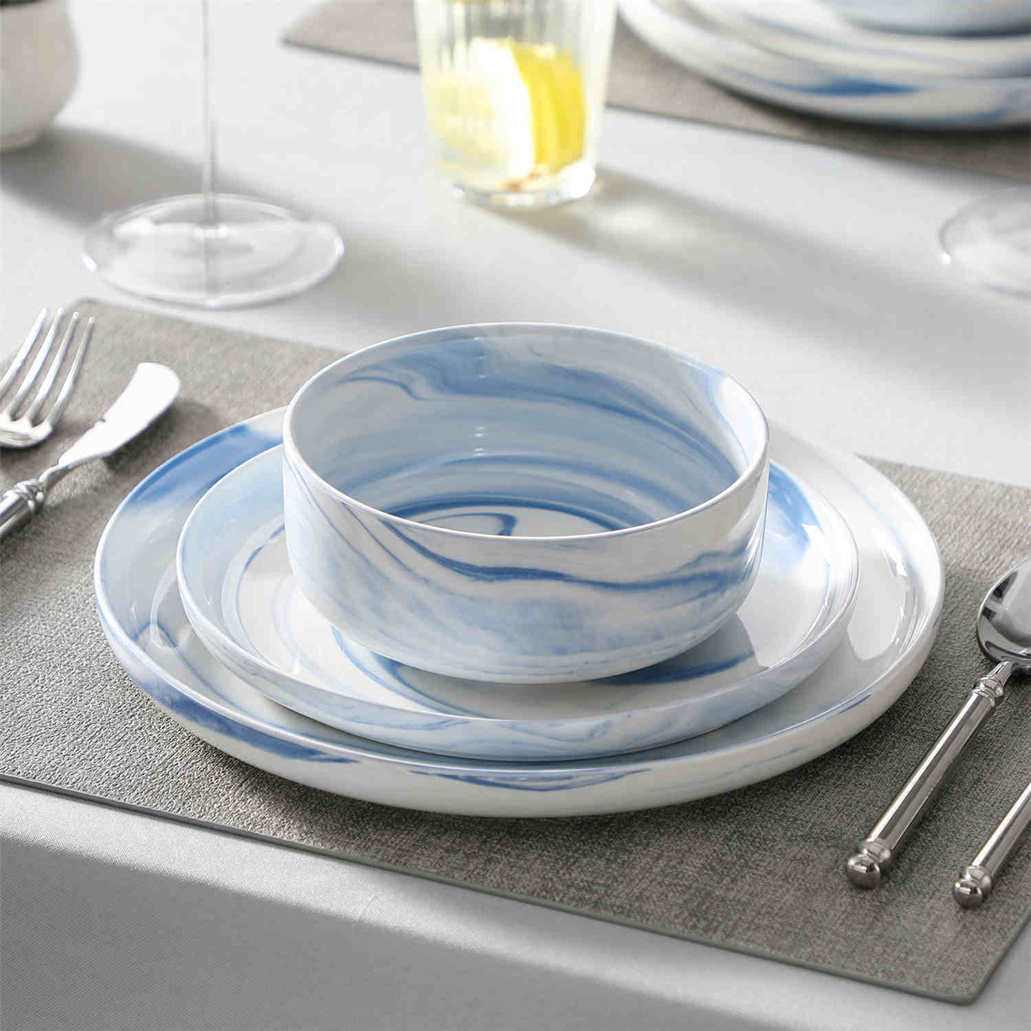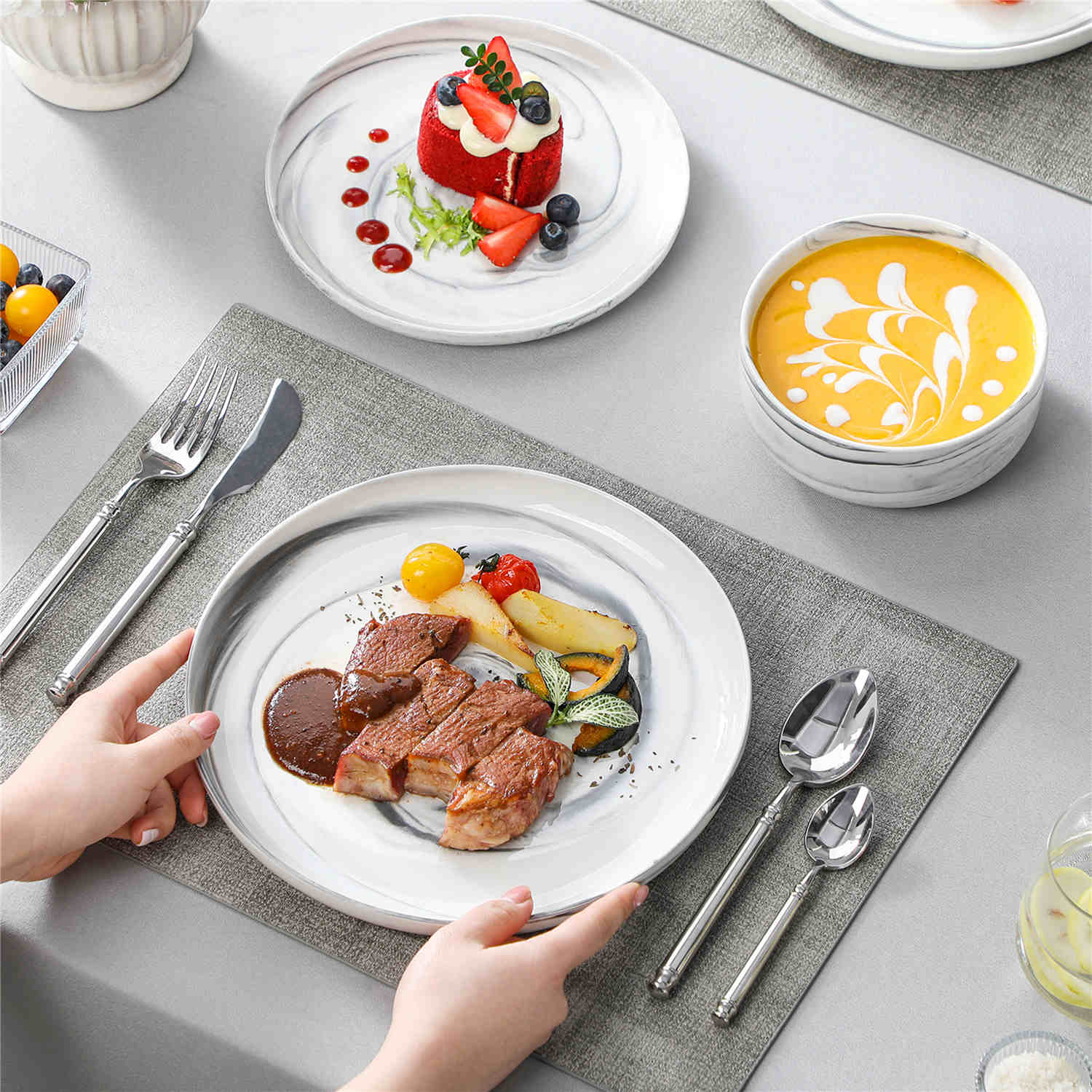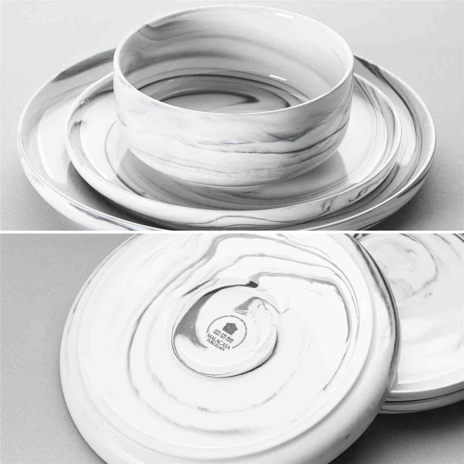 Home Porcelain Mldyrzyh Luna Marble Grey 18 Piece Dinnerware Set