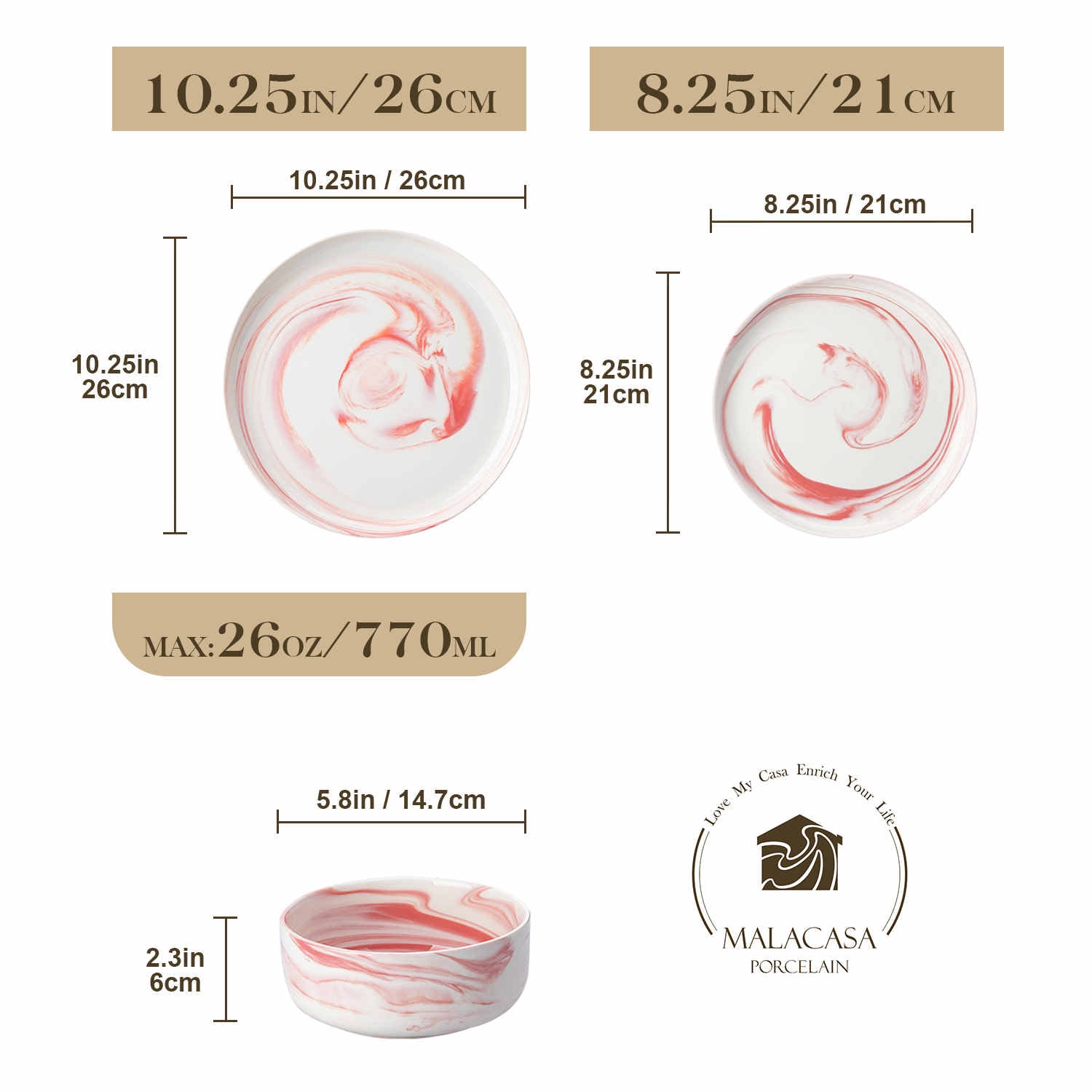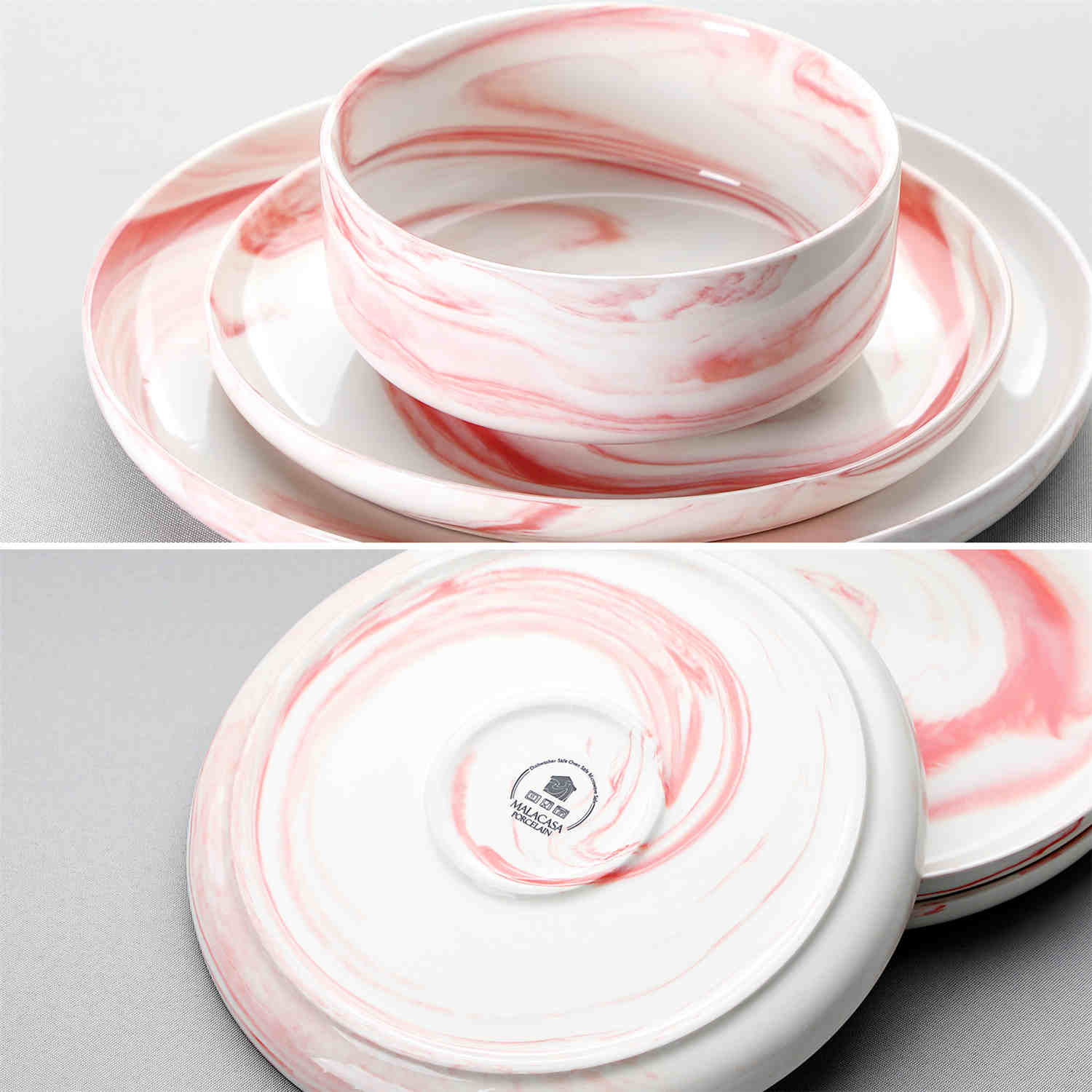 Mldyrzyh Luna Marble Pink 24 Piece Dinnerware Set for 8