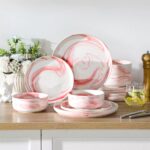 Mldyrzyh Luna Marble Pink 24 Piece Dinnerware Set for 8