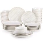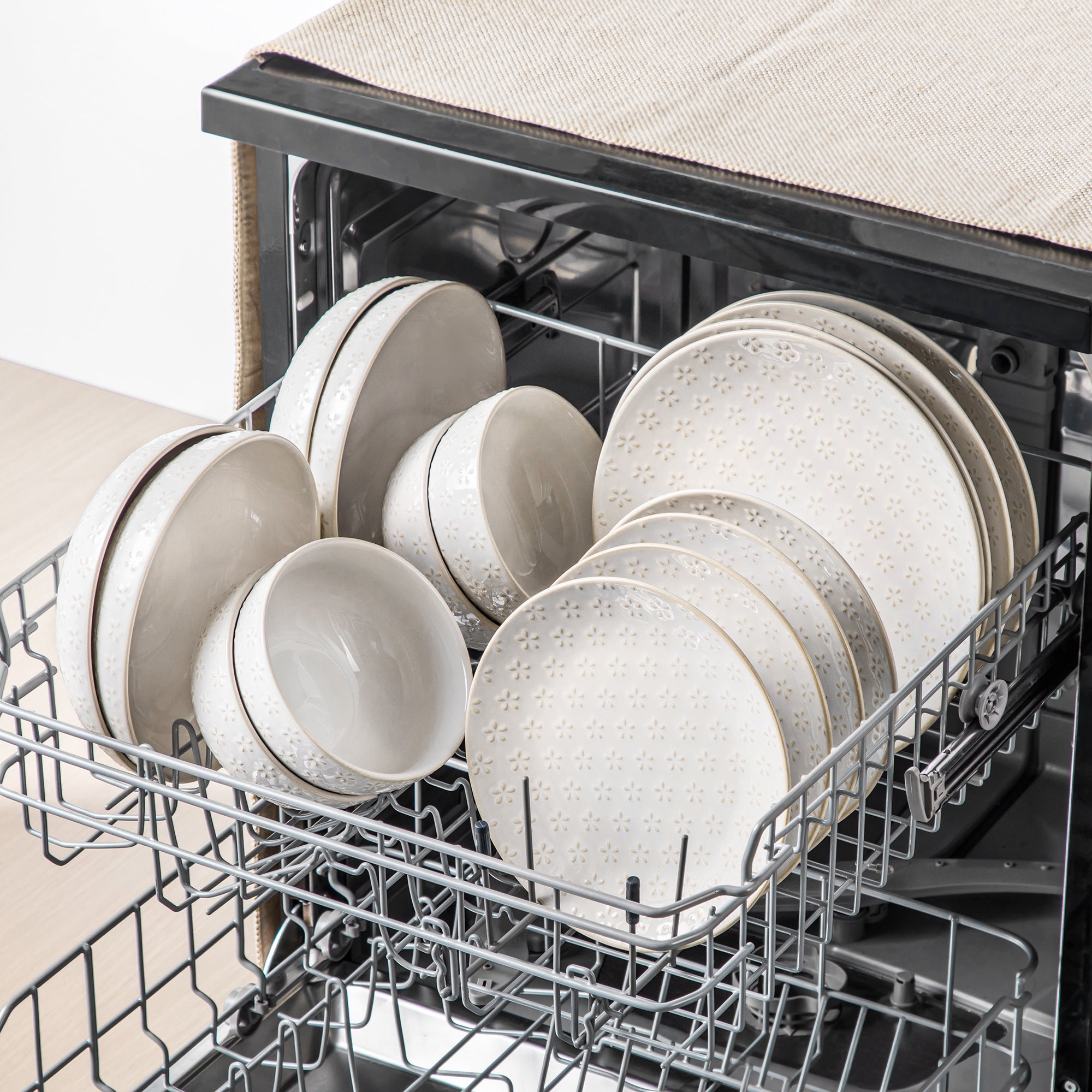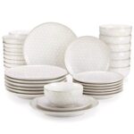 This Lydia dinnerware set in soft antique white features two beautifully embossed patterns—a delicate daisy motif and a classic hexagonal design. Finished with a reactive glaze, each piece has its own unique character, blending subtle texture with a handcrafted feel. Built for modern living, it’s microwave, oven, and dishwasher safe—effortless to use and easy to clean. Whether it’s a casual weeknight dinner or a special gathering with loved ones, Lydia adds a quiet sophistication to any meal.