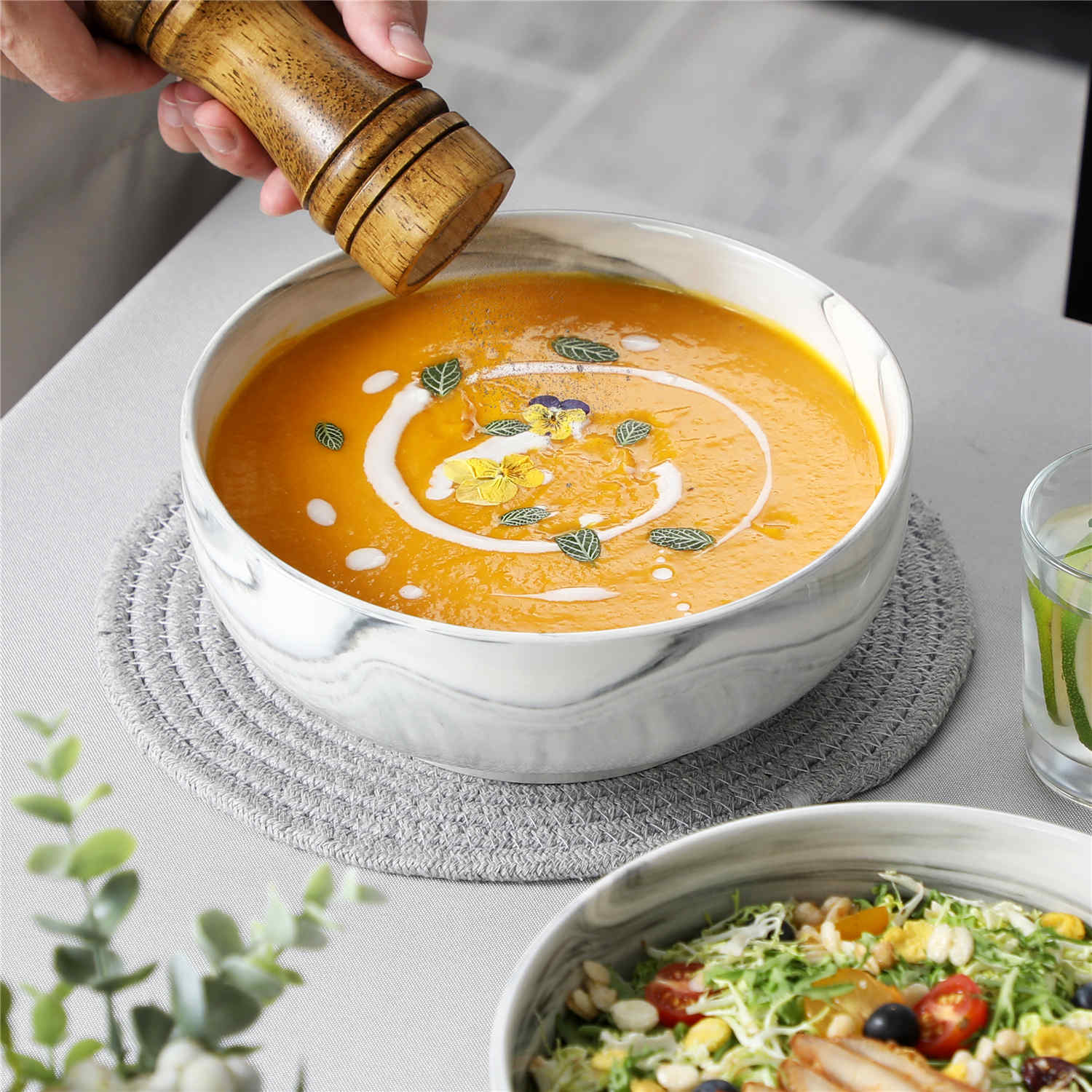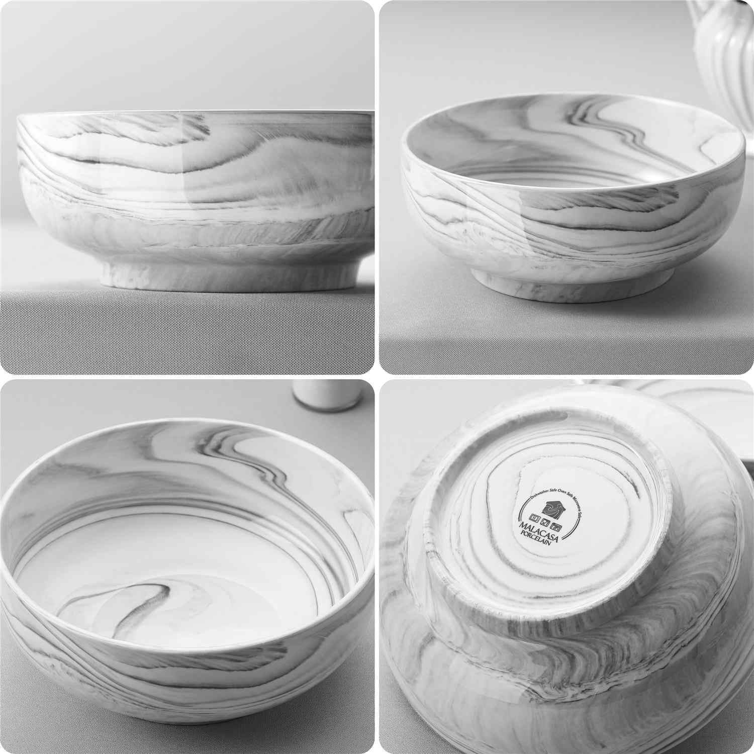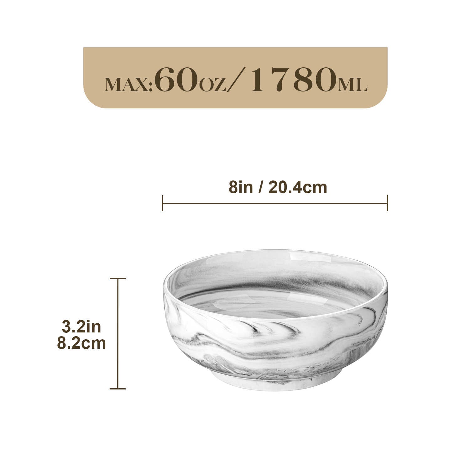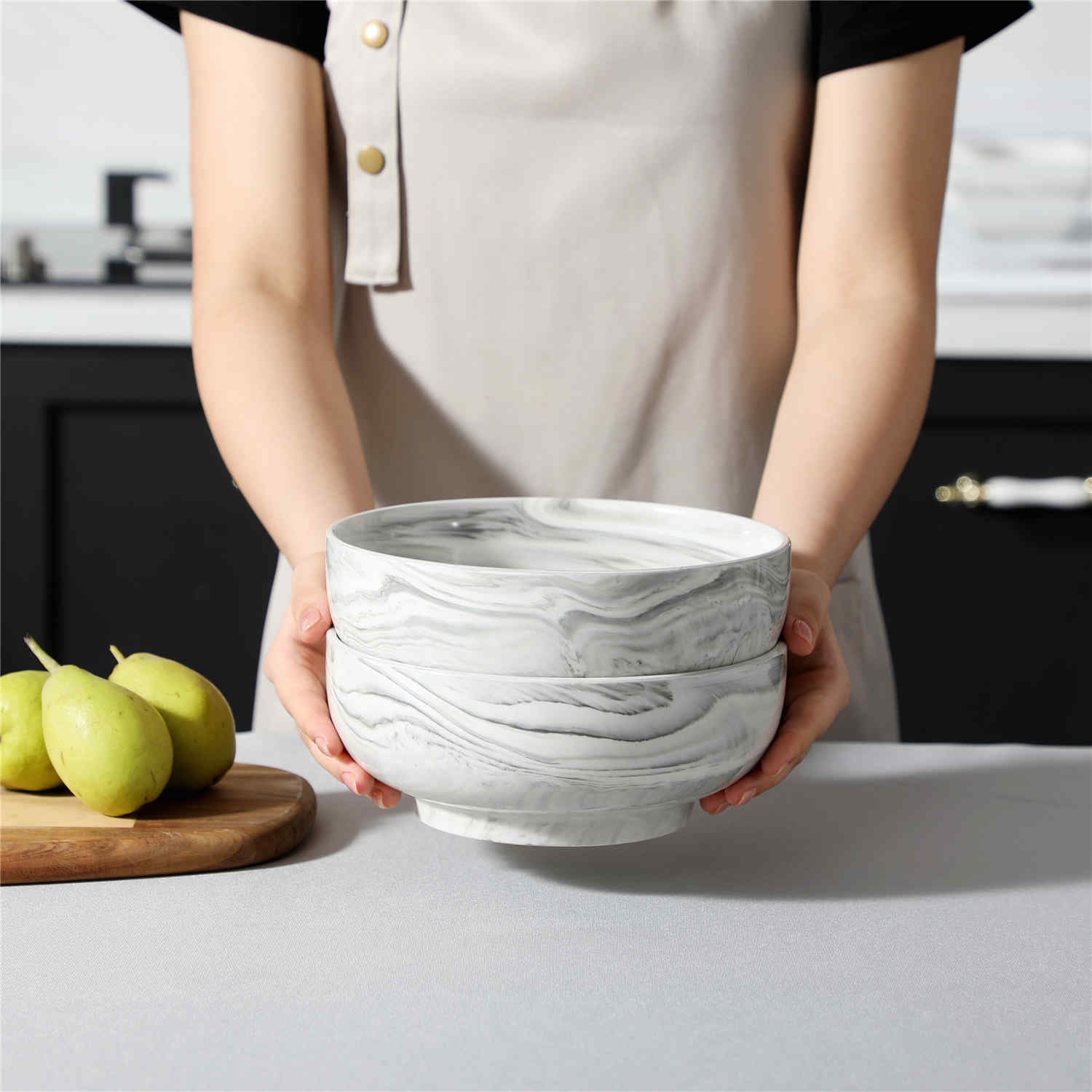- Fine porcelain 60oz (1780ml) bowls, set of 2, marble grey