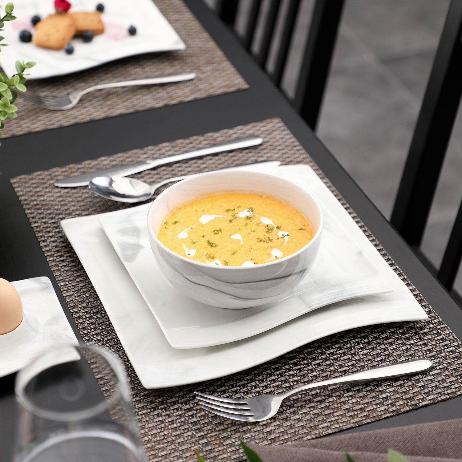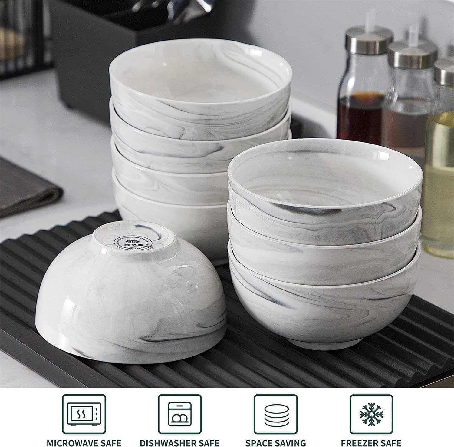 Home Porcelain Mldyrzyh Marble Grey Soup Bowls Set of 4