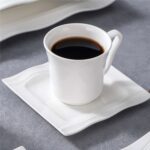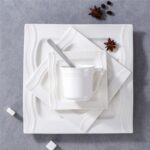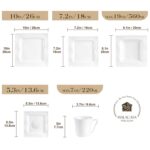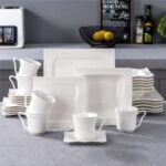 - Fine porcelain silky scallop wavy edges square dinnerware set, service for 6, ivory white