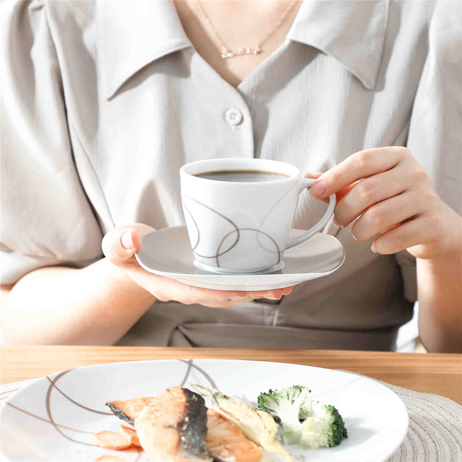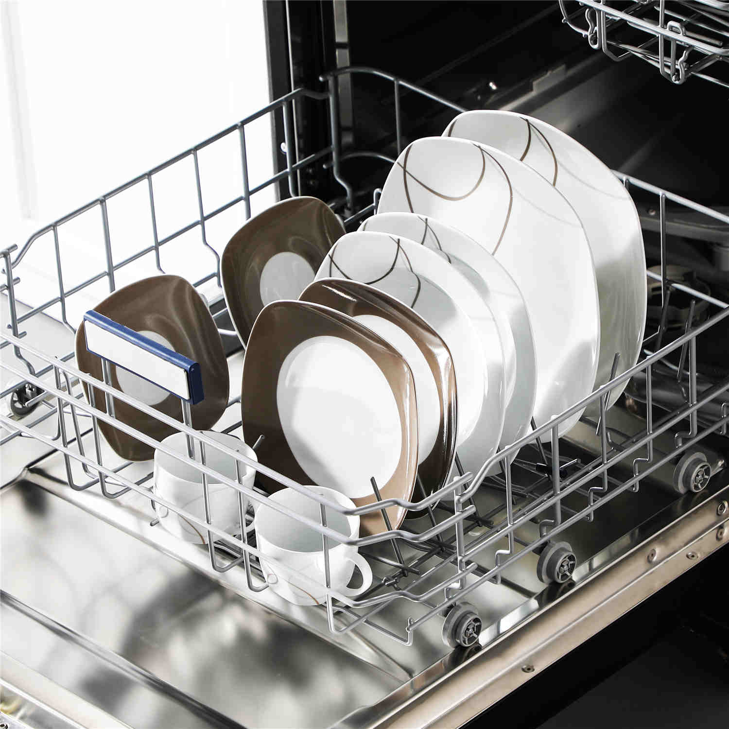 • Fine porcelain square dinnerware set, service for 6, brown line pattern