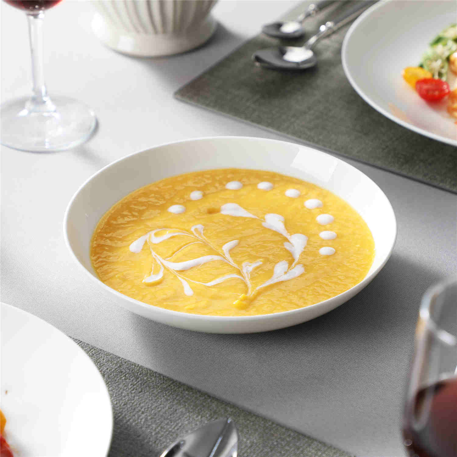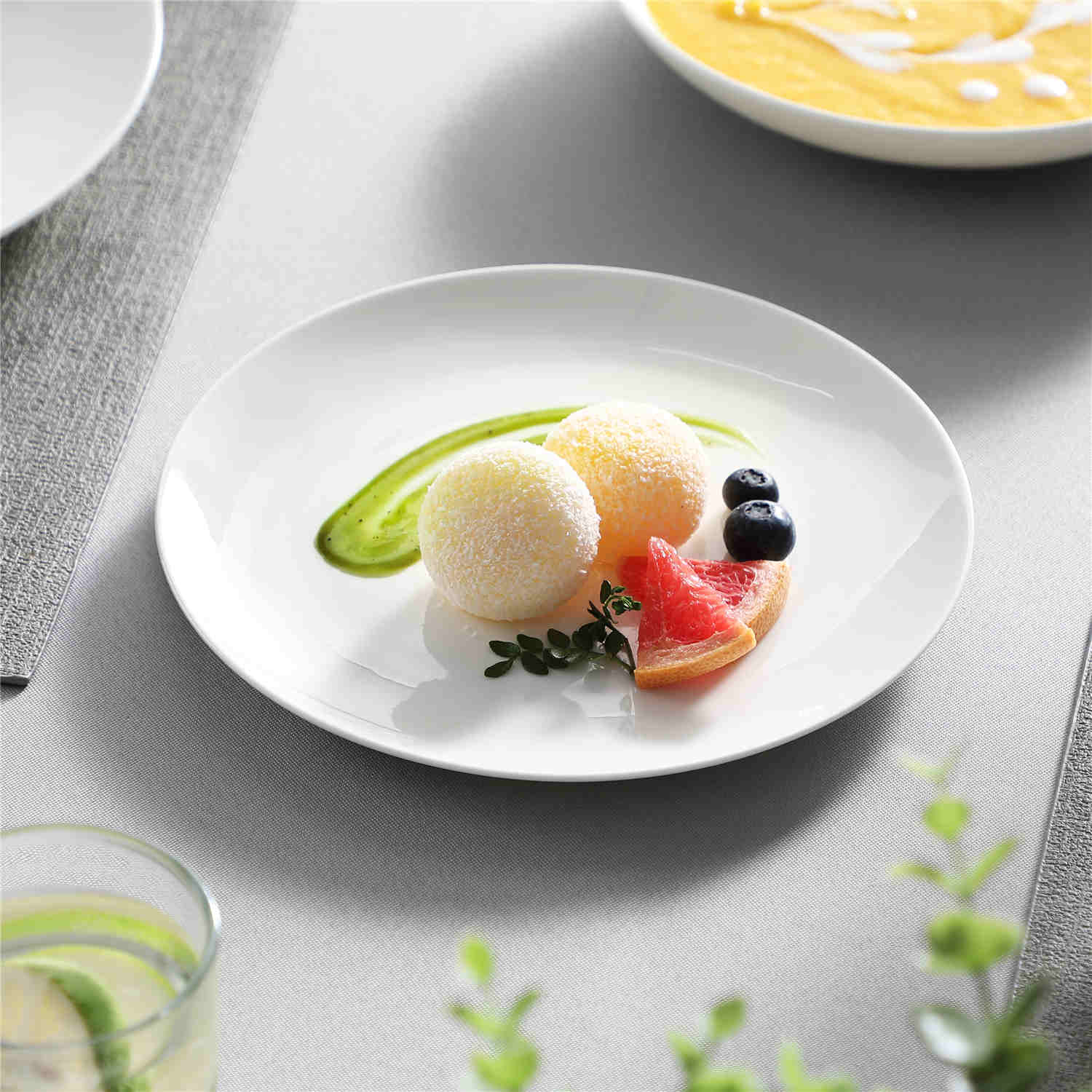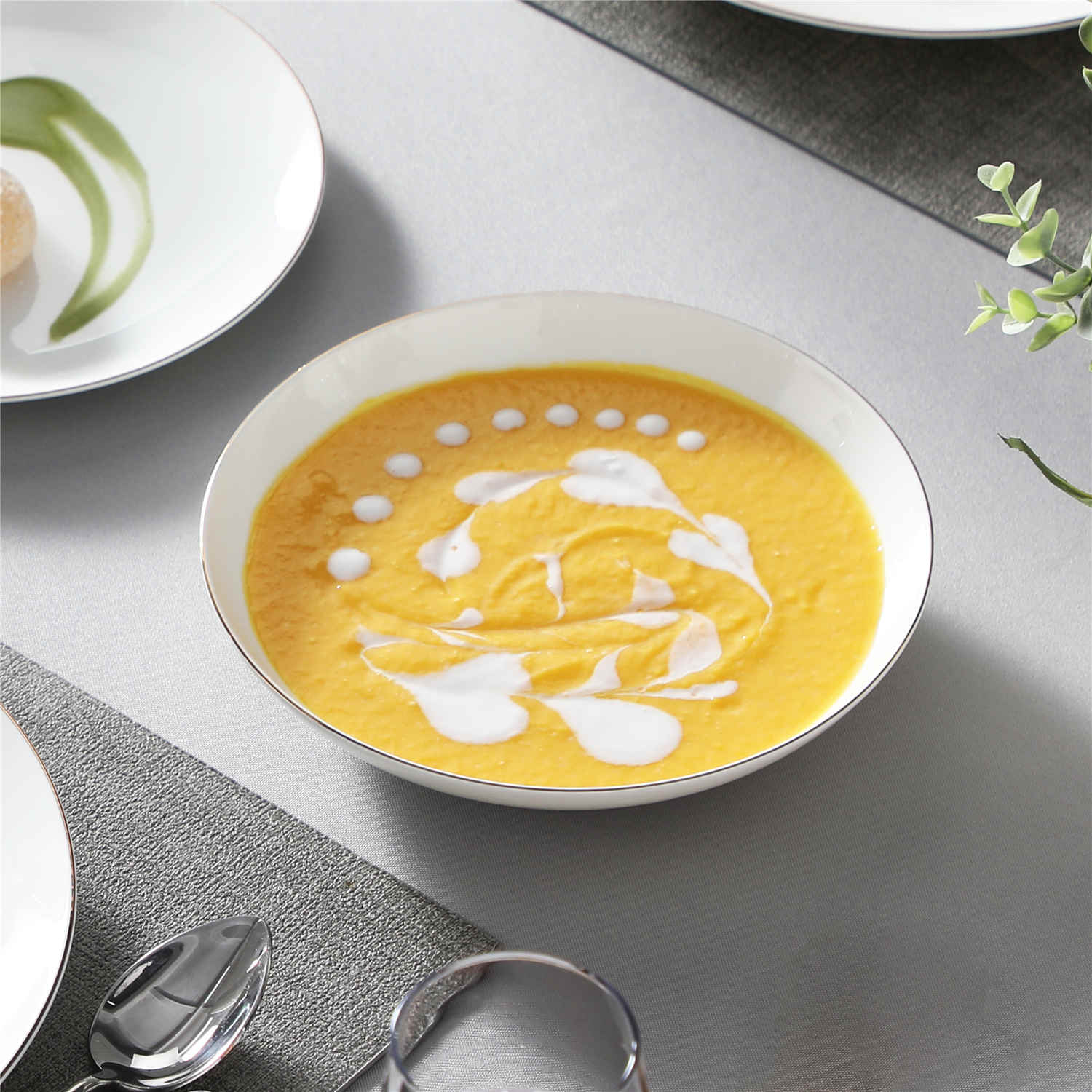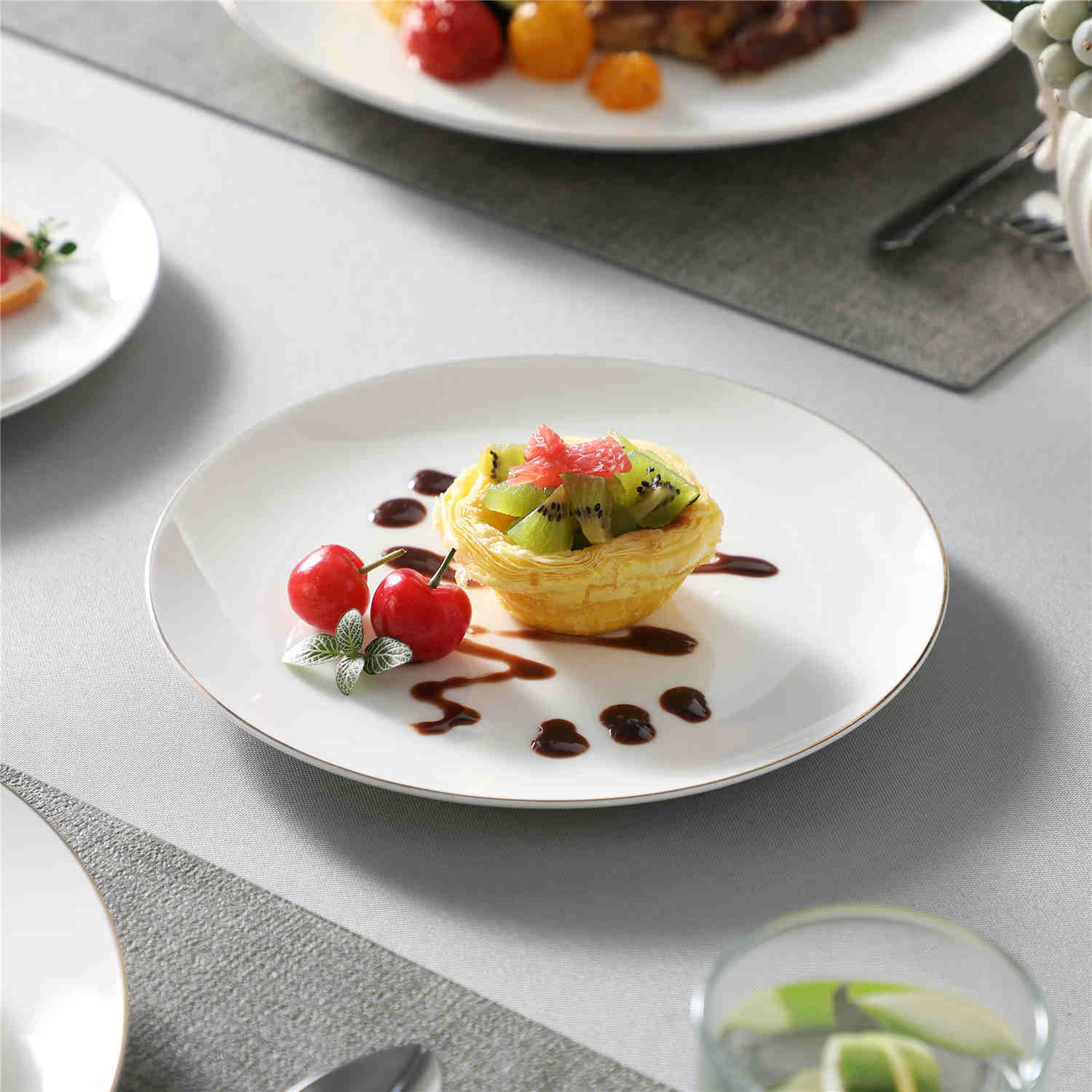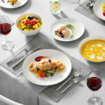 - Fine bone china round dinnerware set, service for 4