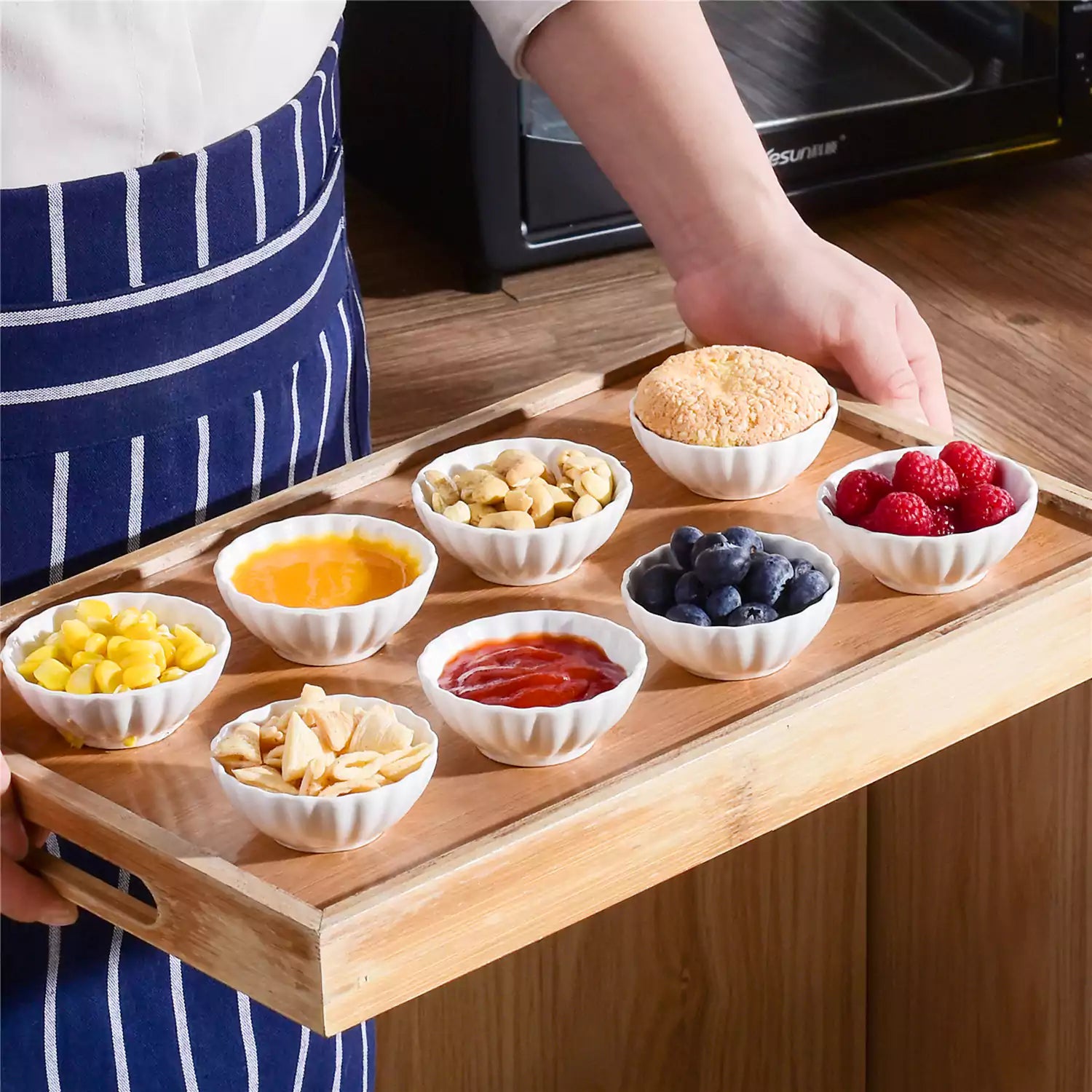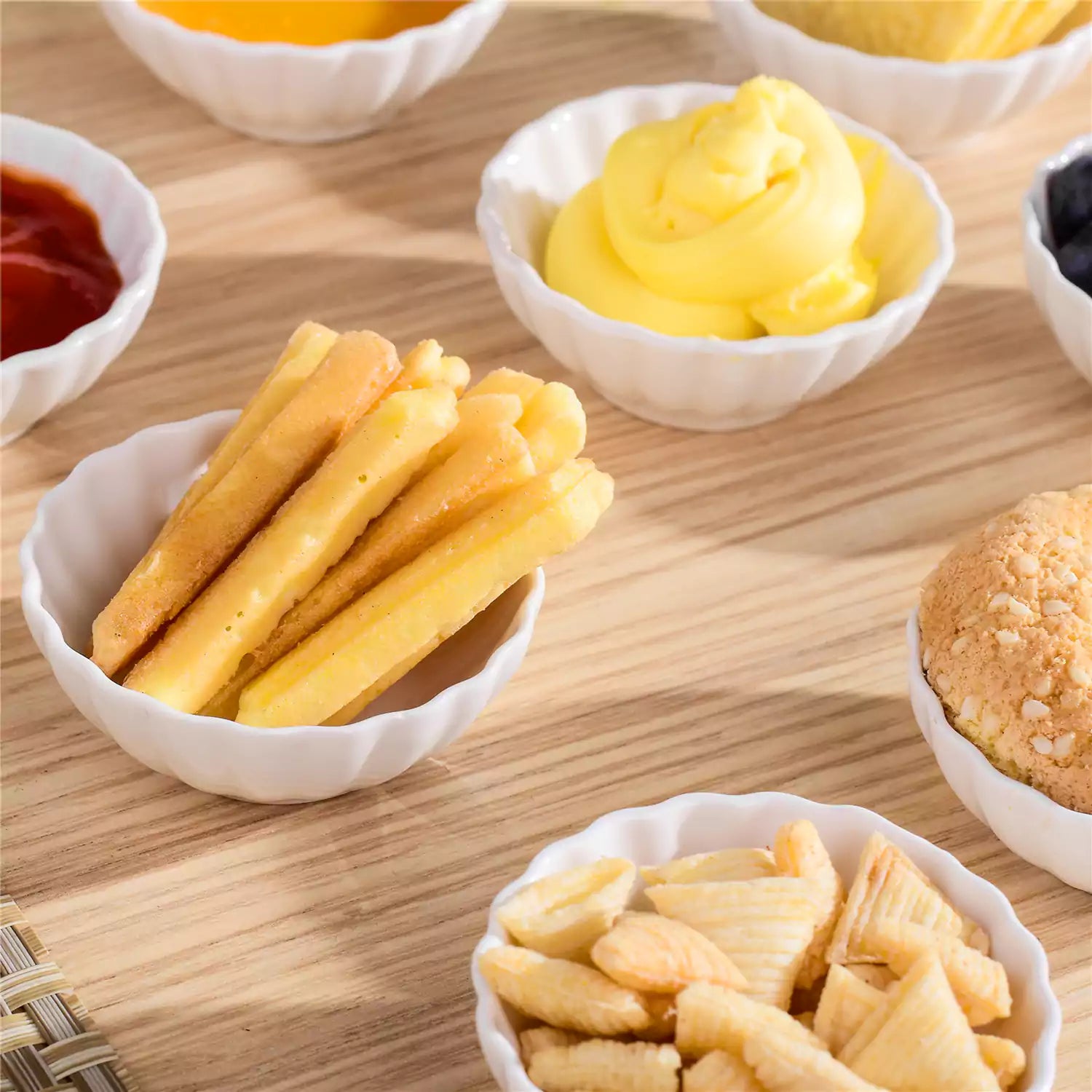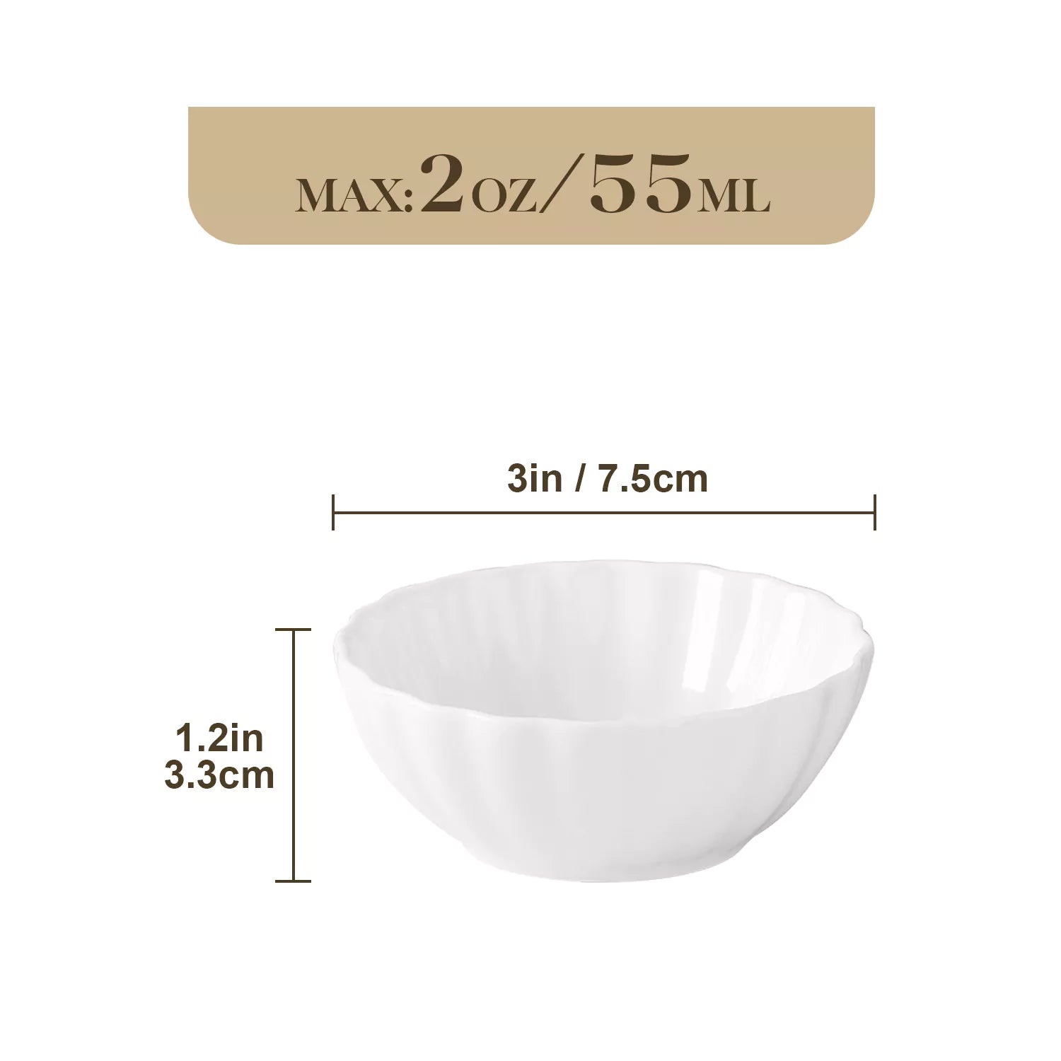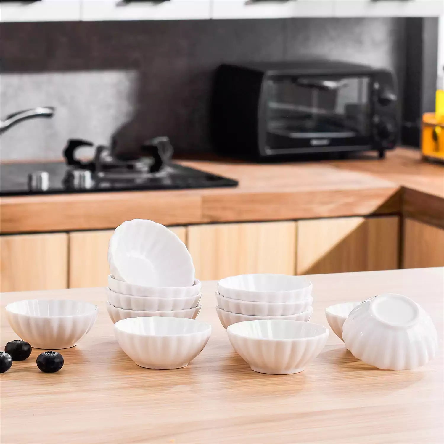 Delicate ivory-white porcelain ramekins—12 pieces, 2 oz each—lead-, cadmium-, and BPA-free. Chip- and scratch-resistant, they’re ideal for mini soufflés, dipping sauces, desserts, and elegant table styling
