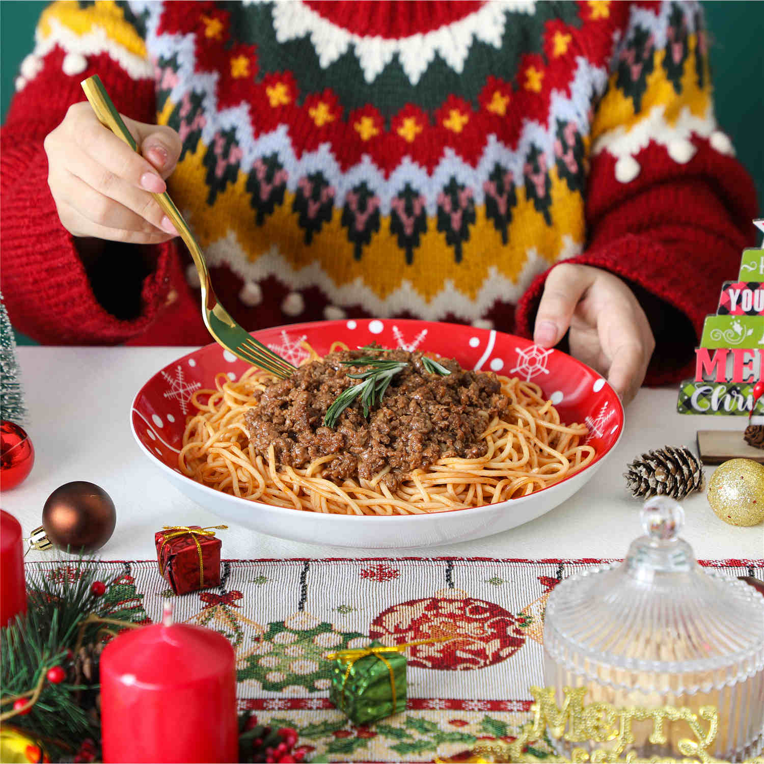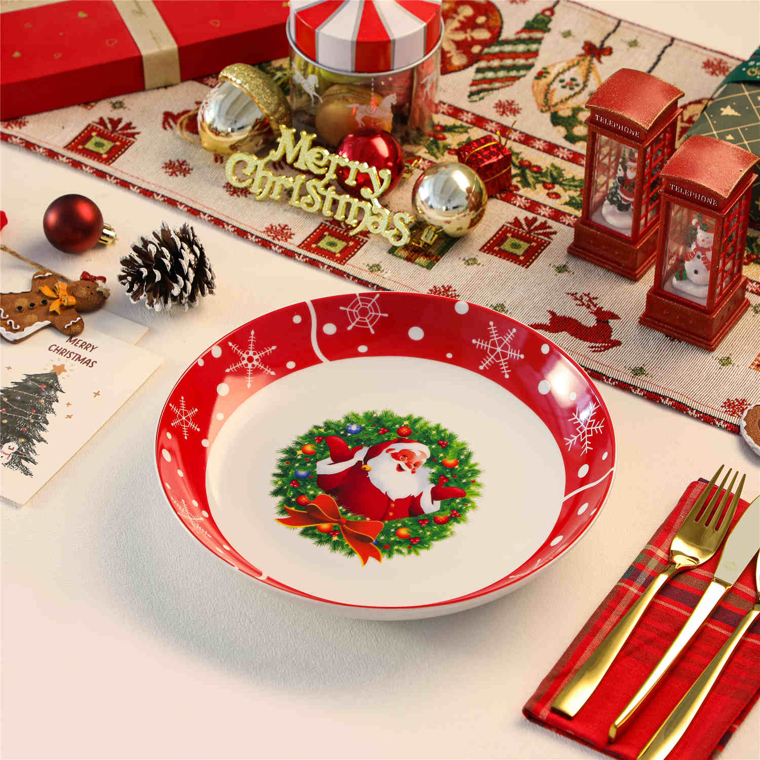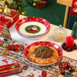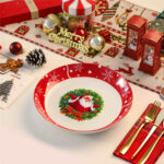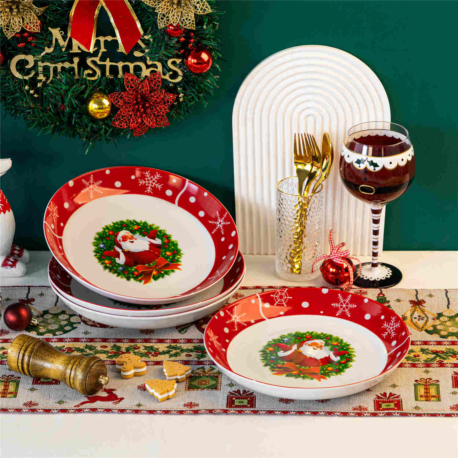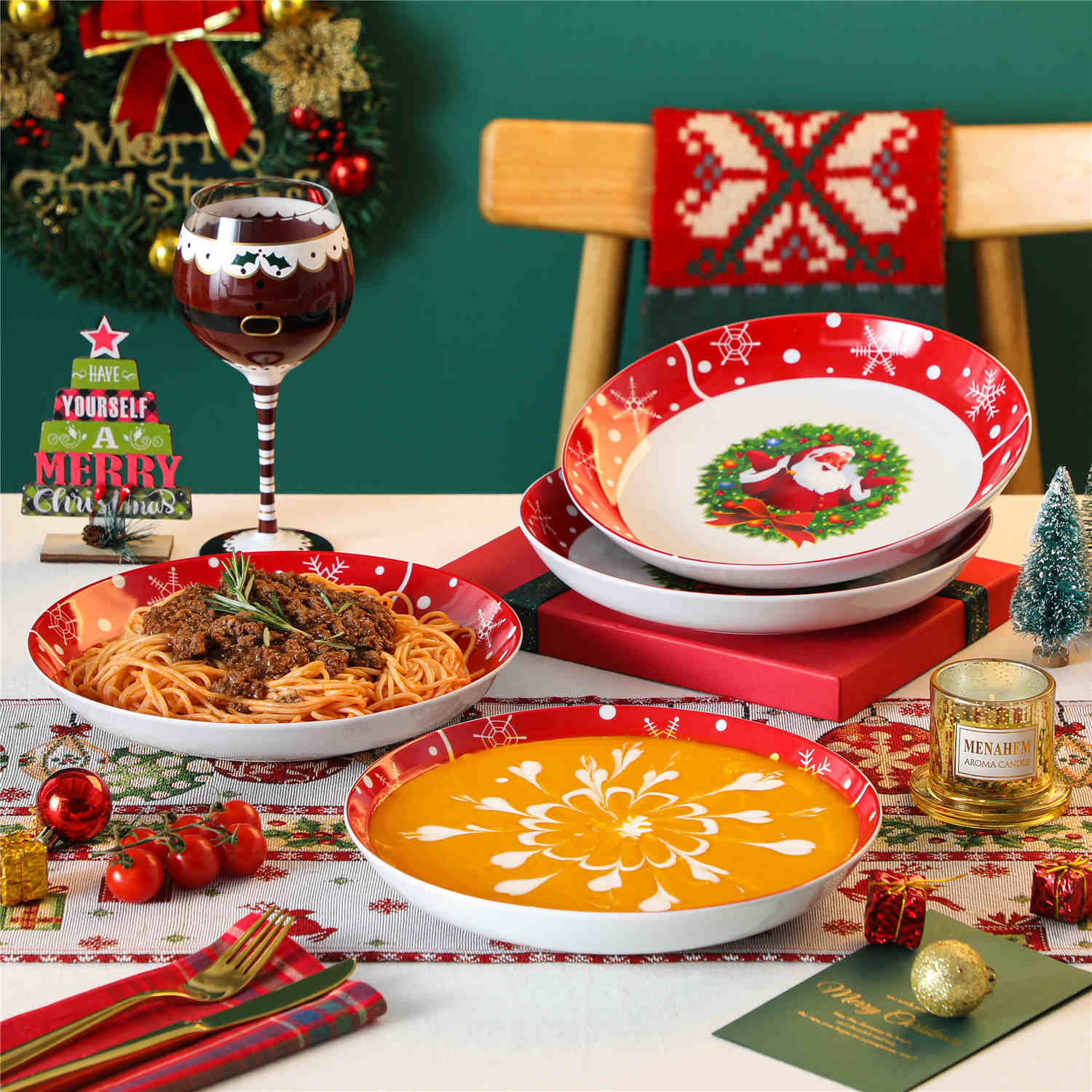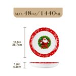 These 10.5-inch Santa Claus Pasta Bowls hold 48 oz, perfect for serving holiday favorites like baked ziti, spaghetti, and fettuccine. Decorated with a cheerful Santa and festive wreath, these durable porcelain bowls bring holiday spirit to your table. Dishwasher, microwave, and oven safe, they offer convenience and charm, turning every meal into a festive celebration.