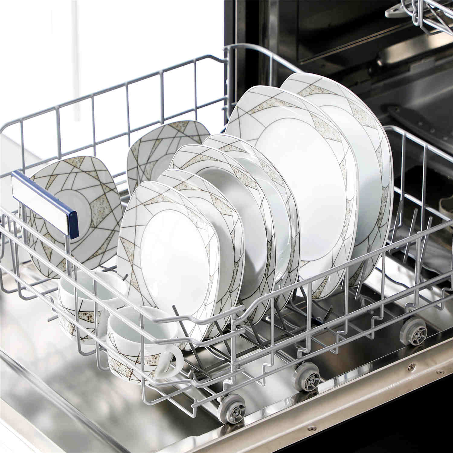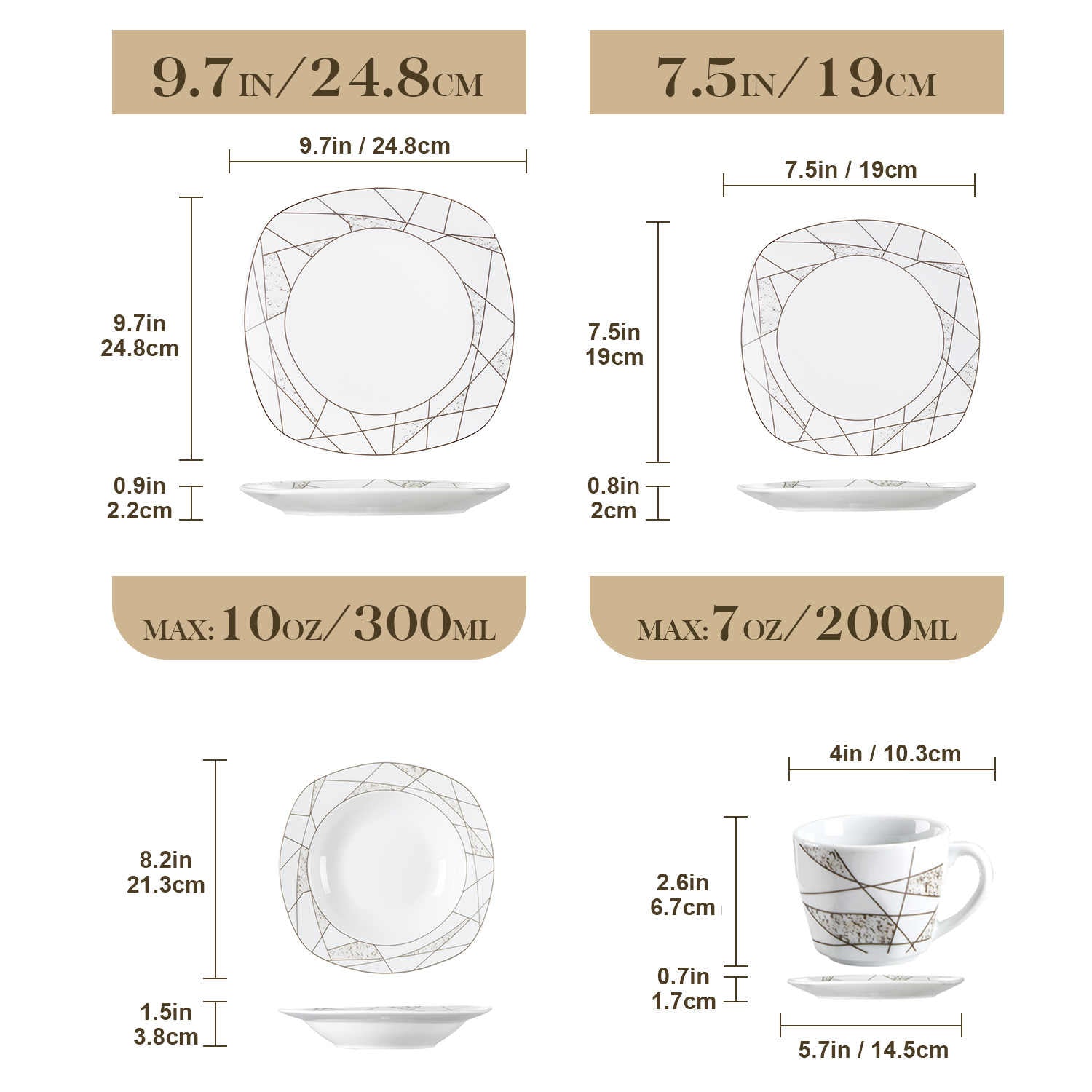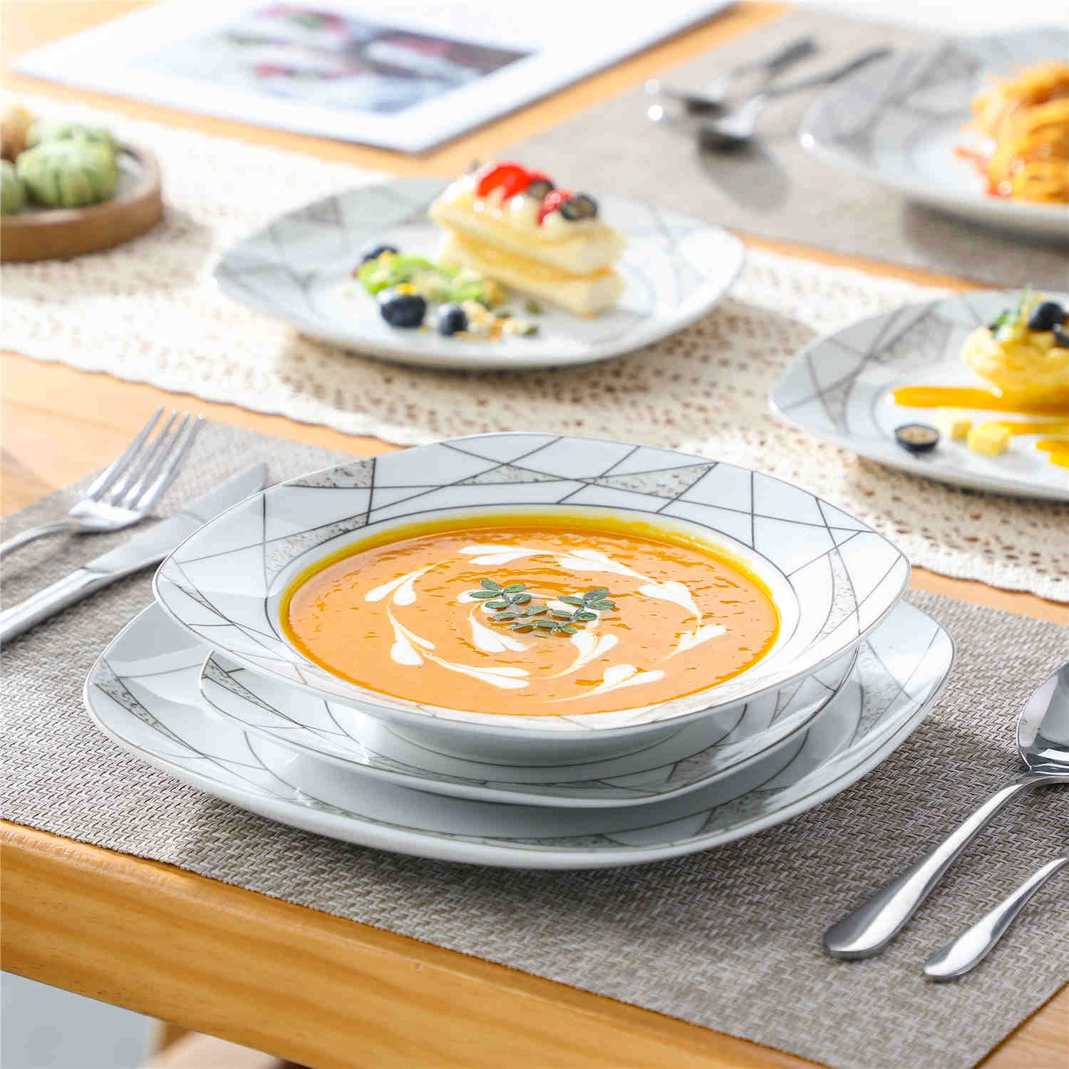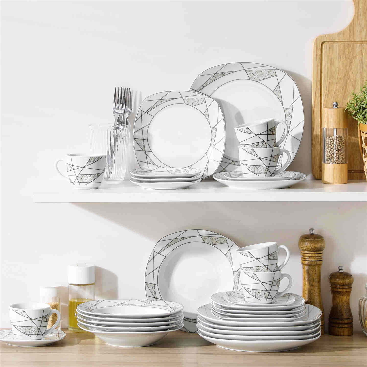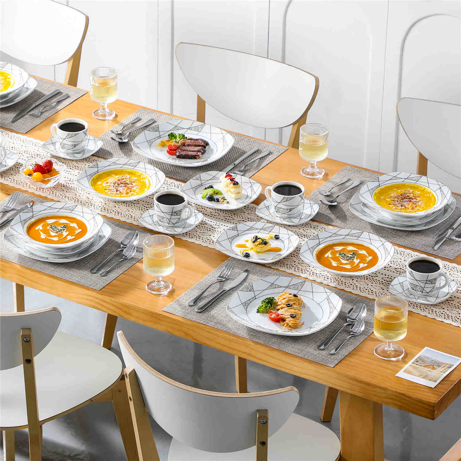 • Fine porcelain square dinnerware set, service for 6, irregular pattern