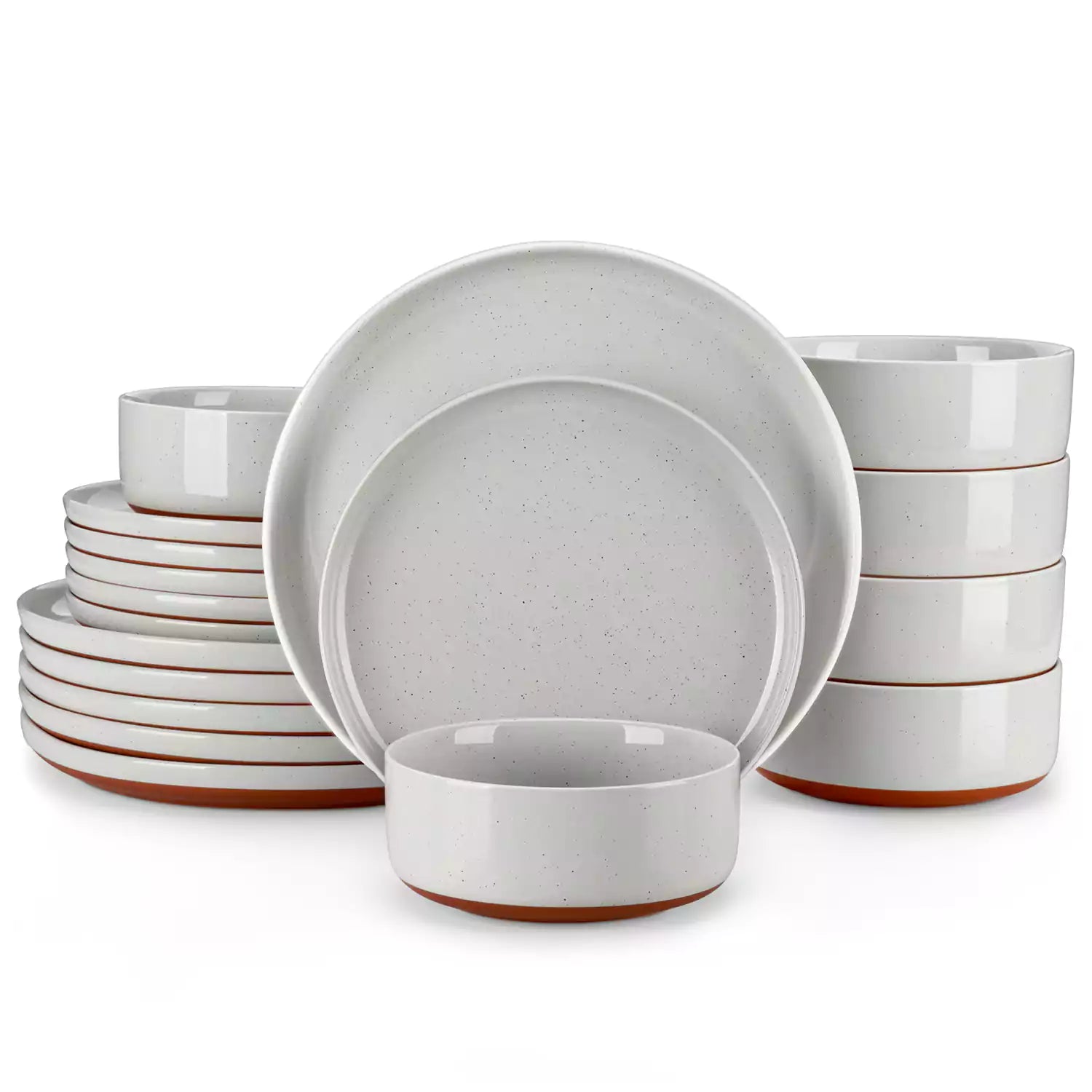 The 18-piece Tara Dinnerware Set brings a harmonious blend of rustic charm and modern design to your table. Each piece features a refined lipped edge, a speckled glaze, and a matte clay-colored base that reflects artisanal craftsmanship. Available in four versatile hues—ivory white, blush pink, cool gray, and earthy brown—this stoneware set includes dinner plates, salad plates, and cereal bowls for six. Enhanced with Glidecoat technology, the set is resistant to scratches, grease, and heat. Microwave, oven, and dishwasher safe, Tara offers timeless style and lasting durability for everyday meals and special occasions.