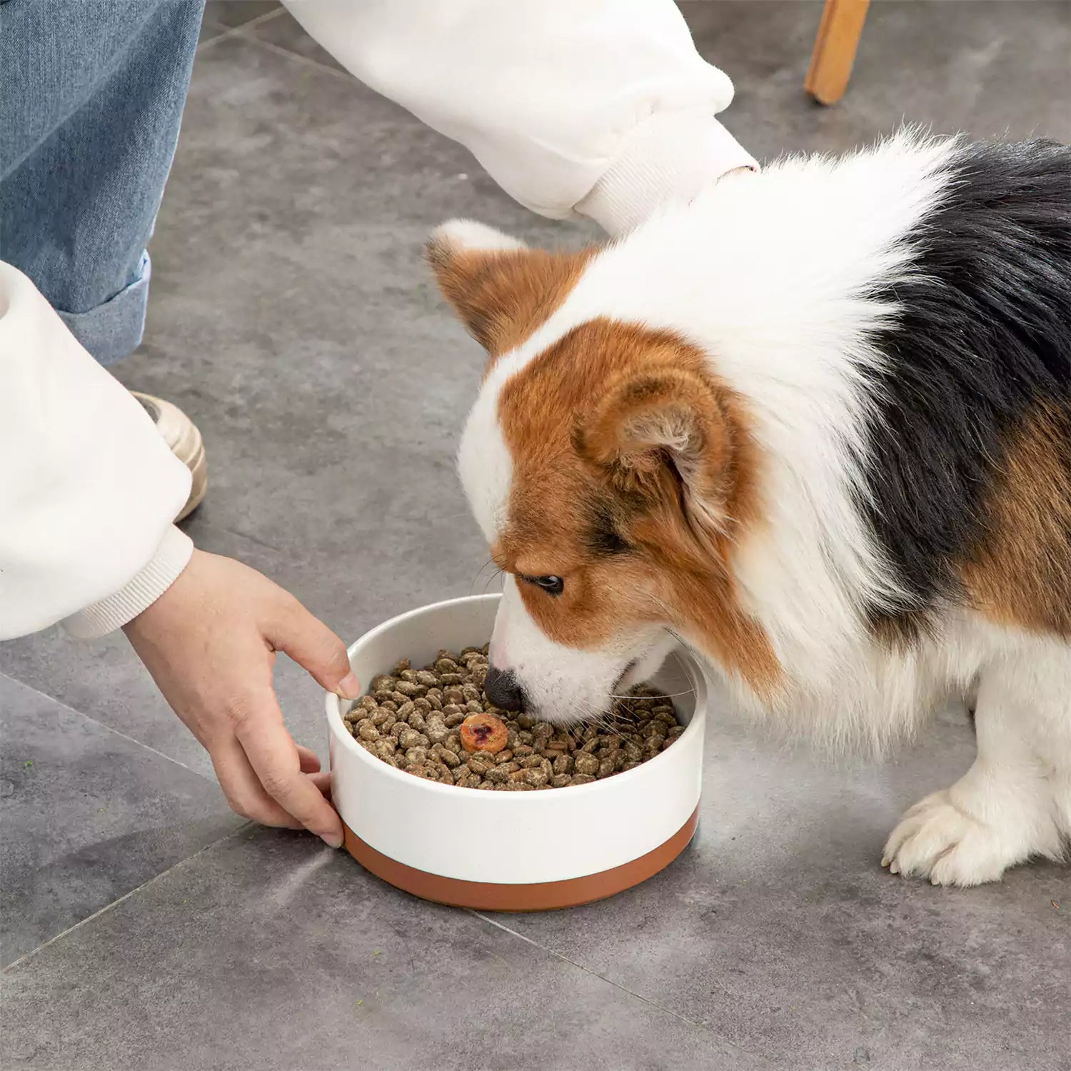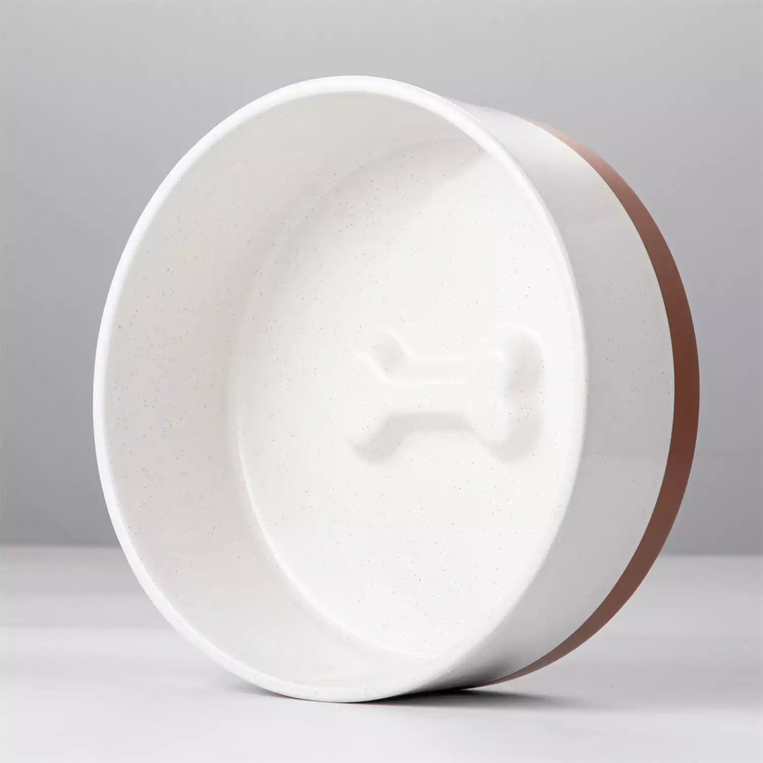 Versatile-sized Tara Dog Bowls, available in 5.5″, 6.75″, and 8″ options, are designed to suit dogs of all sizes—from small breeds like Chihuahuas to larger companions such as Golden Retrievers. The wide, weighted base ensures stability, preventing tipping and minimizing spills, while the thickened walls offer a secure feeding experience and reduce mess. A playful bone-shaped cut-out at the base enhances airflow, keeping the bowl clean and dry. Crafted from durable stoneware with a speckled glaze and matte clay finish, these bowls are microwave- and dishwasher-safe, ensuring effortless cleanup and long-lasting durability. Kindly note: The listed price is for a single bowl.