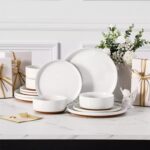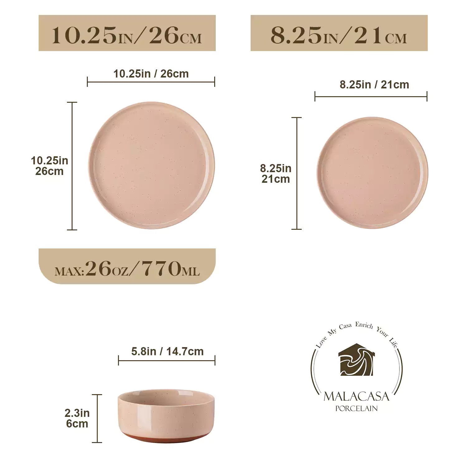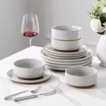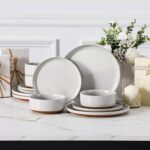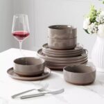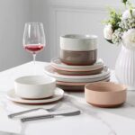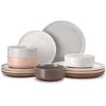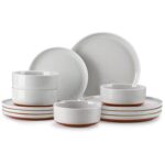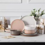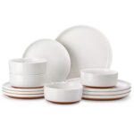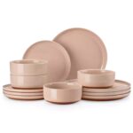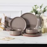 Blending rustic charm with modern simplicity, this 12-piece stoneware dinnerware set is perfect for everyday meals and special occasions. Designed for four, it includes dinner plates, salad plates, and cereal bowls—each with a refined lipped edge, speckled glaze, and a matte clay-colored base for added texture. Available in ivory white, blush pink, cool gray, earthy brown, and a vibrant multicolor option, it adds personality to any table. Enhanced with Glidecoat technology, it resists scratches, grease, and heat. Microwave, oven, and dishwasher safe.