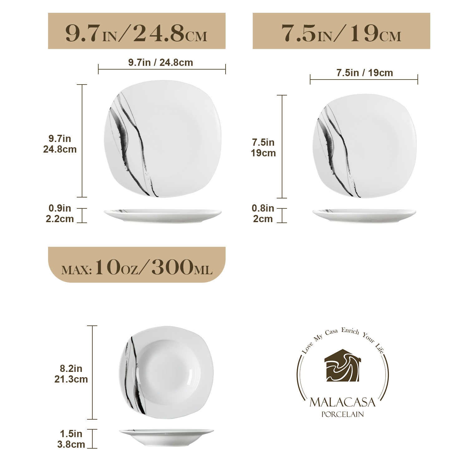 • Fine porcelain square dinnerware set, service for 6, ink and line pattern