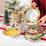 This whimsical 16-piece dinnerware set for four features charming gnome designs that bring warmth and festivity to your table. The set includes dinner plates, salad plates, and cereal bowls, all crafted from durable porcelain and safe for microwave and dishwasher use. Perfect for family feasts, festive brunches, and holiday celebrations, this enchanting set adds a touch of magic and charm to any gathering.